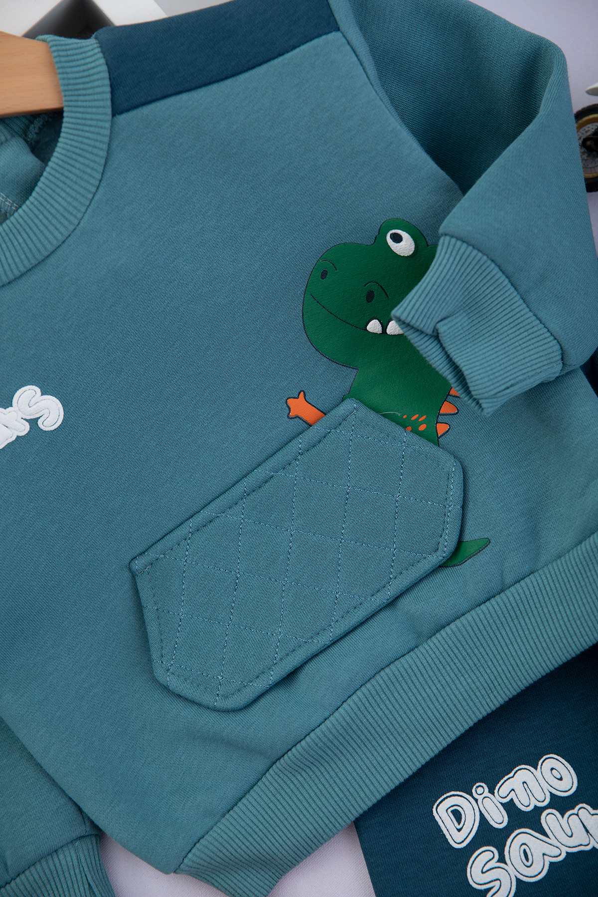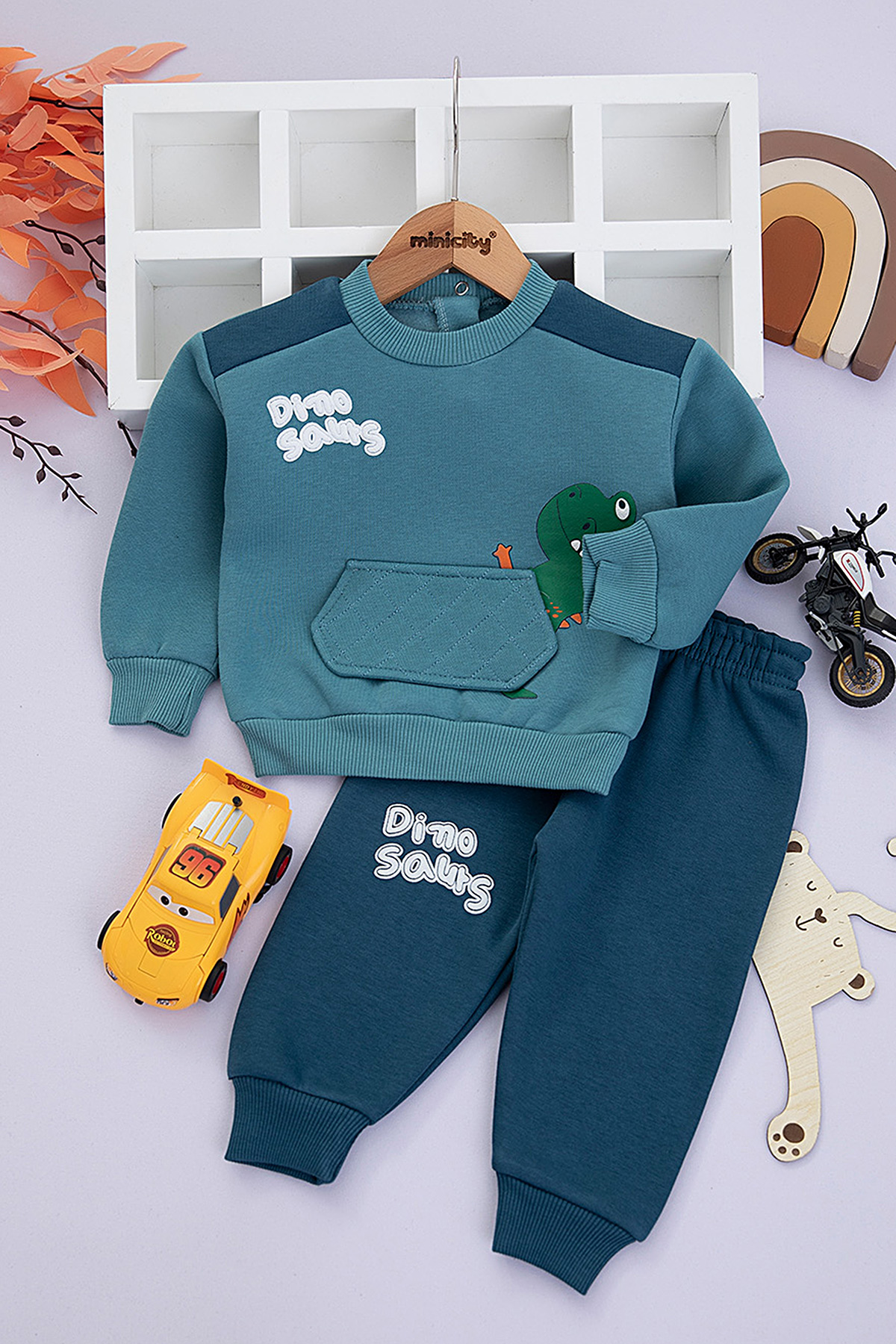 Erkek Bebek Dinazor Baskılı Üçip Takım - 24721 (9-24 Ay)