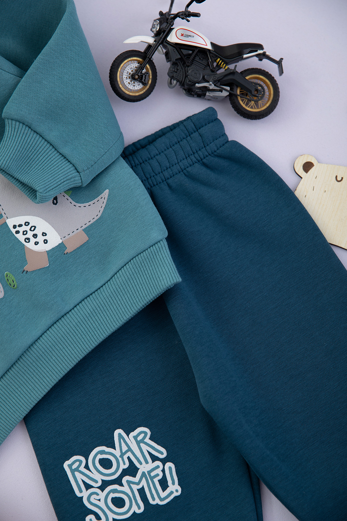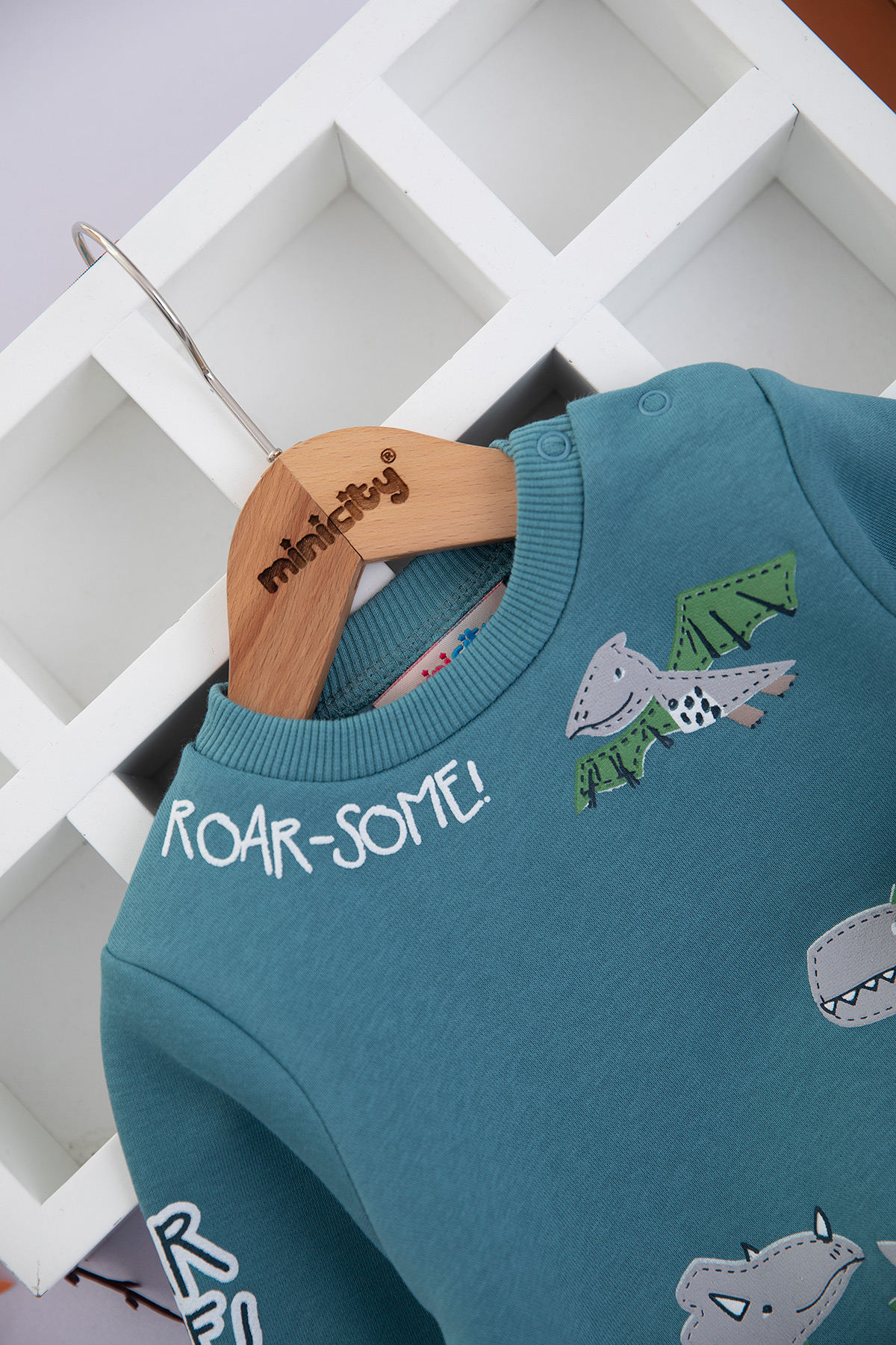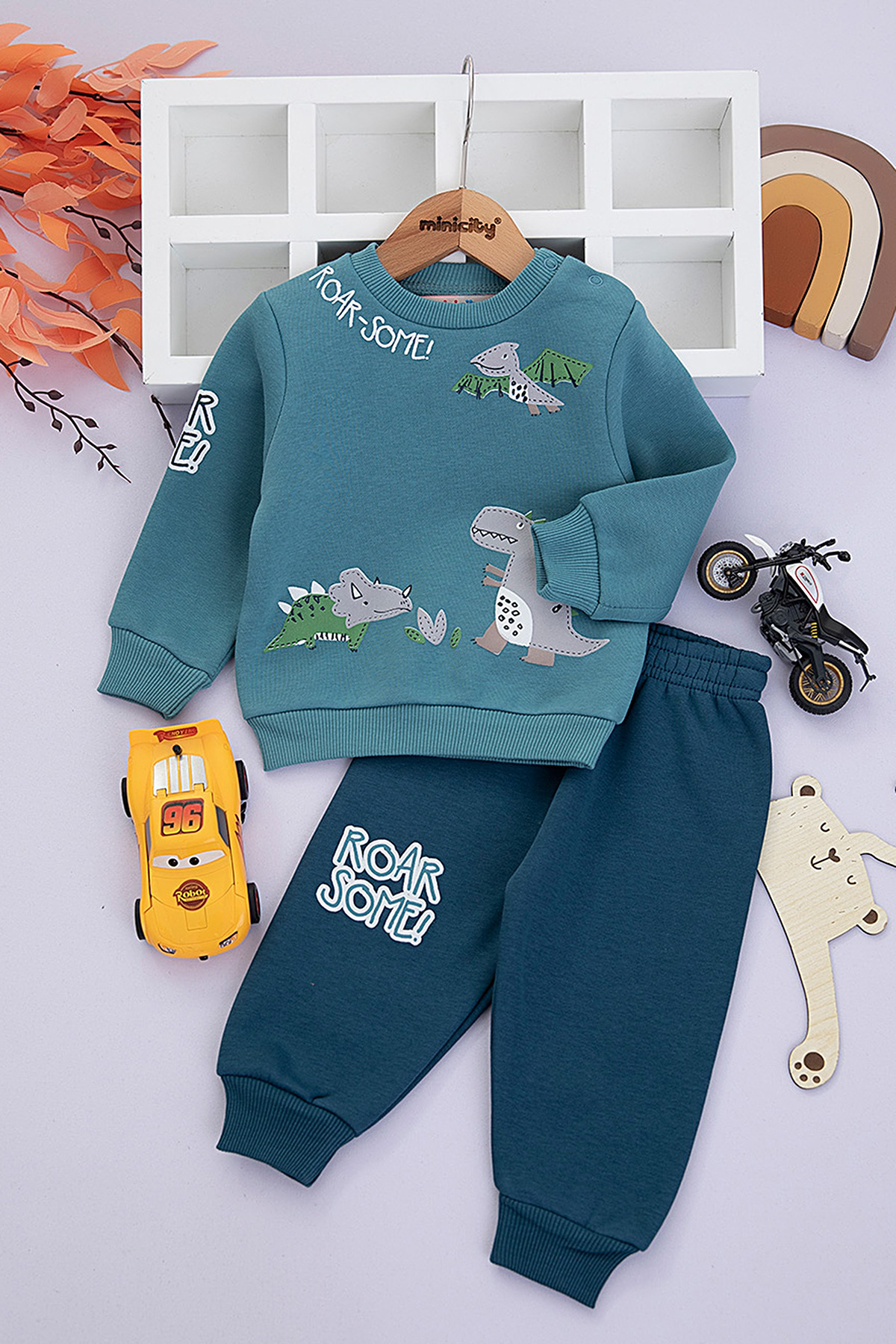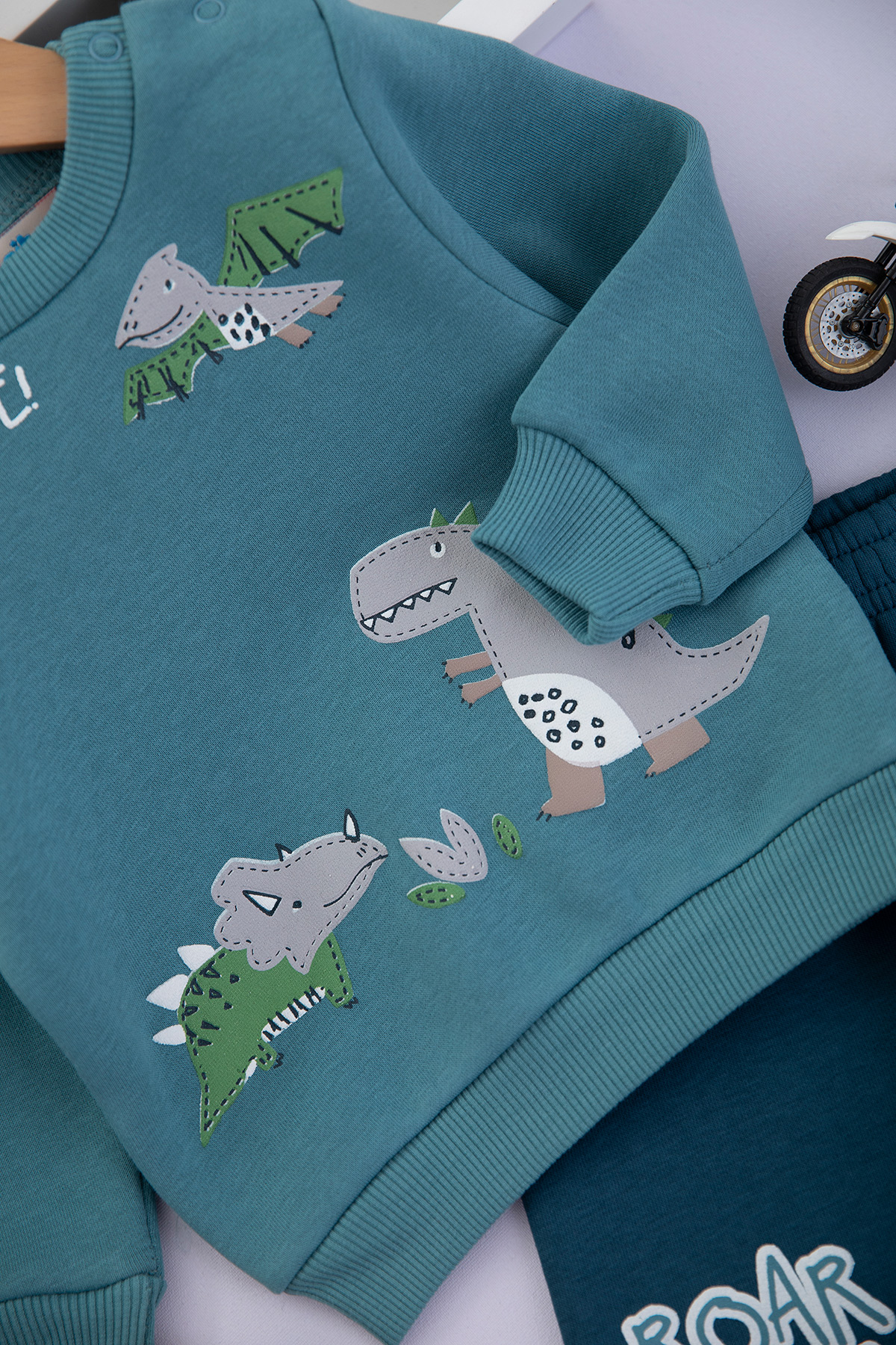 Erkek Bebek Dinazor Baskılı Üçip Takım - 24748 (9-24 Ay)
