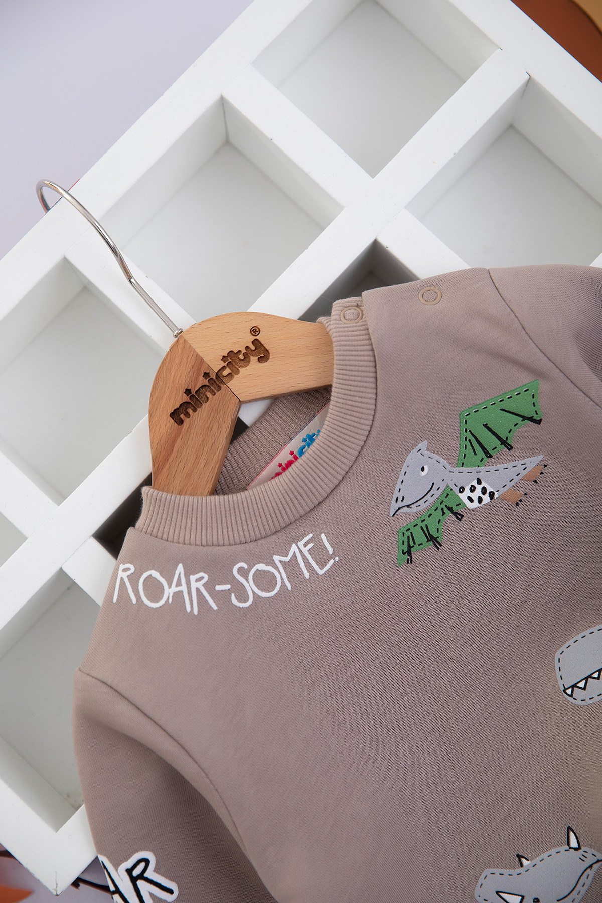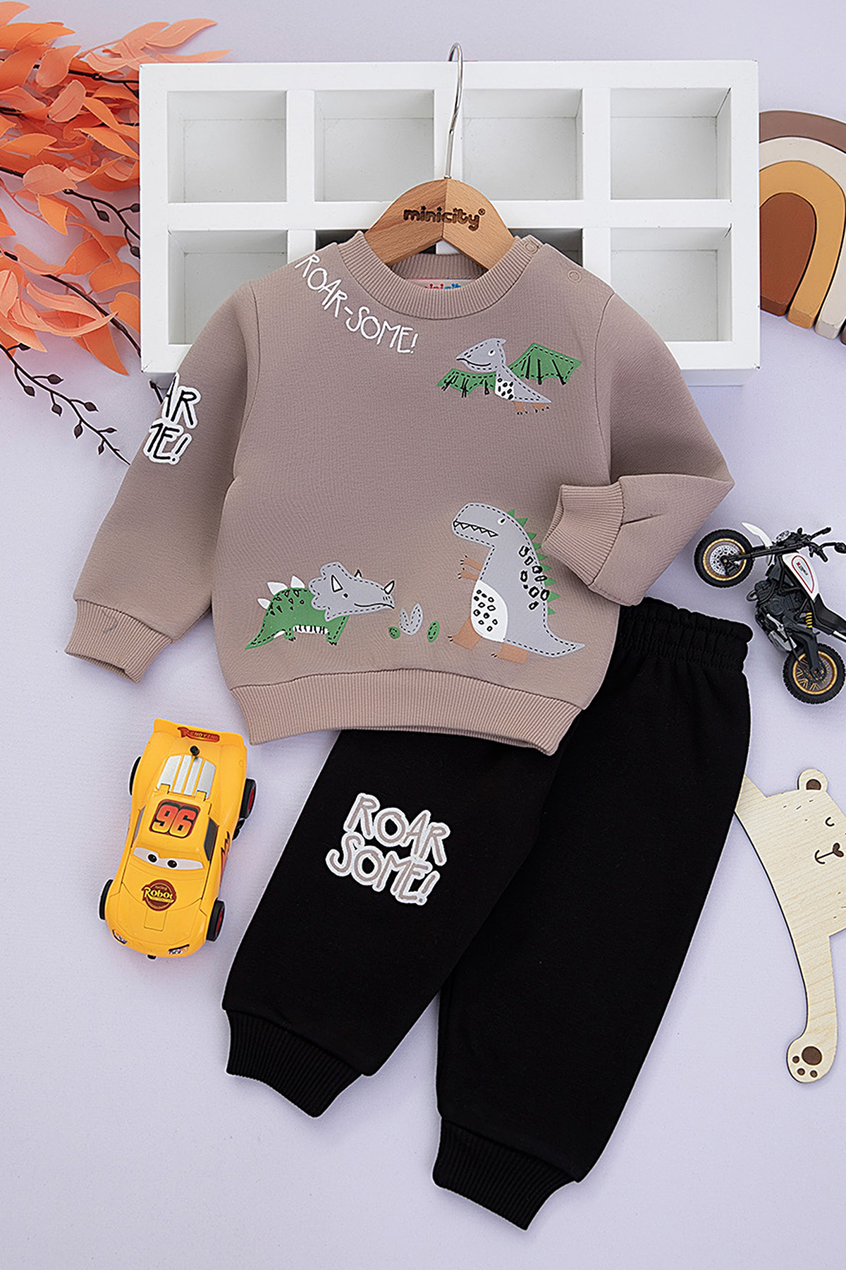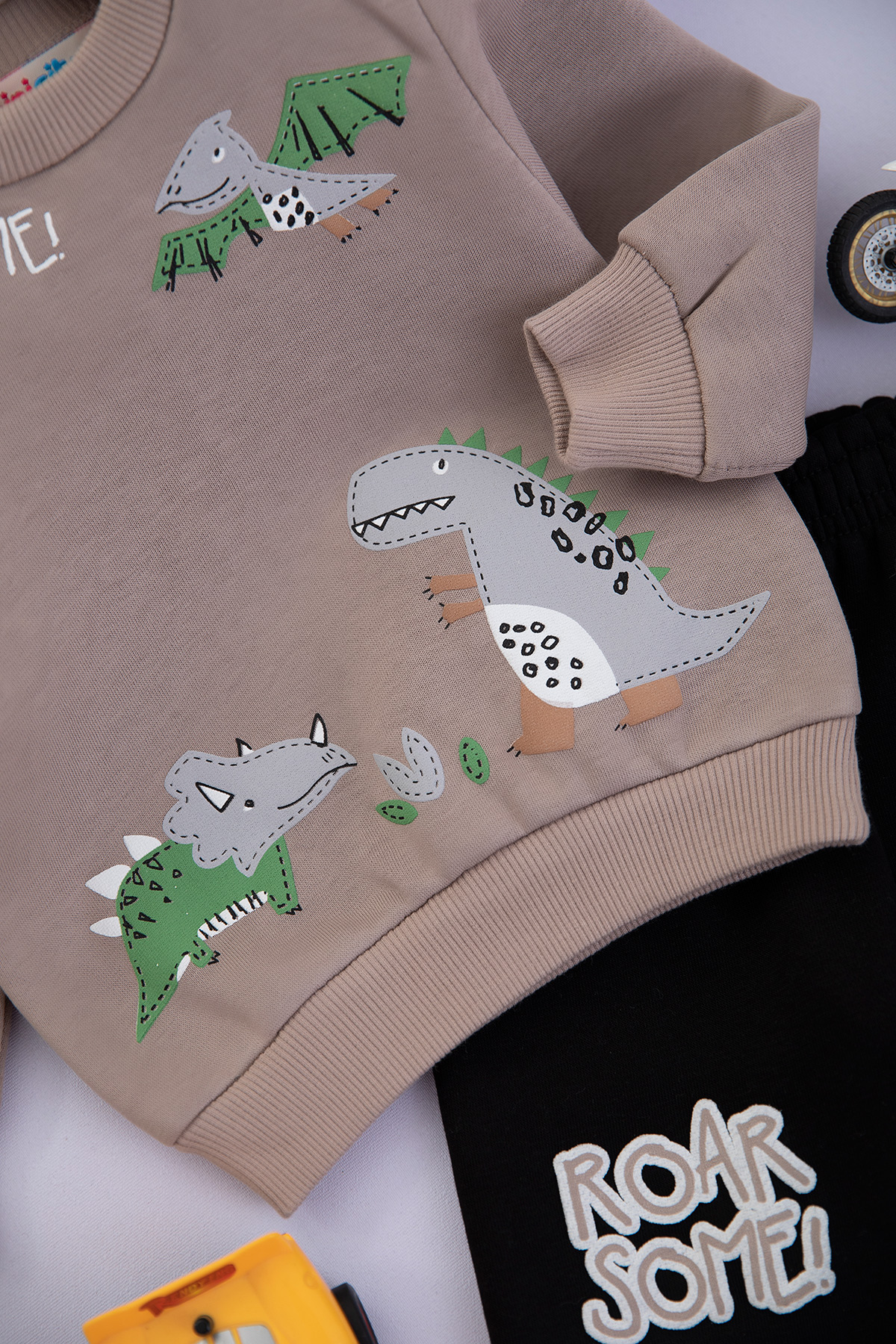 Erkek Bebek Dinazor Baskılı Üçip Takım - 24748 (9-24 Ay)