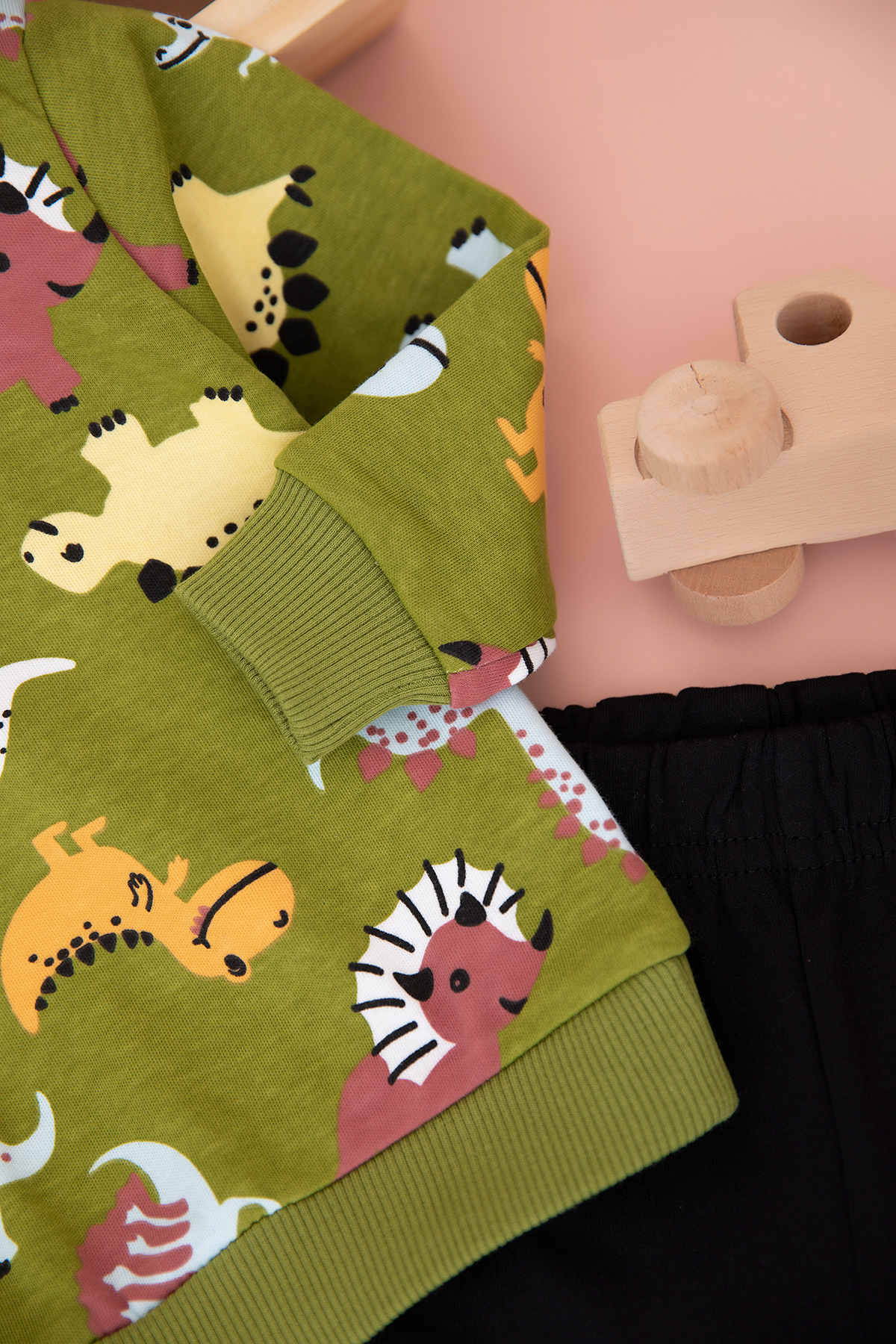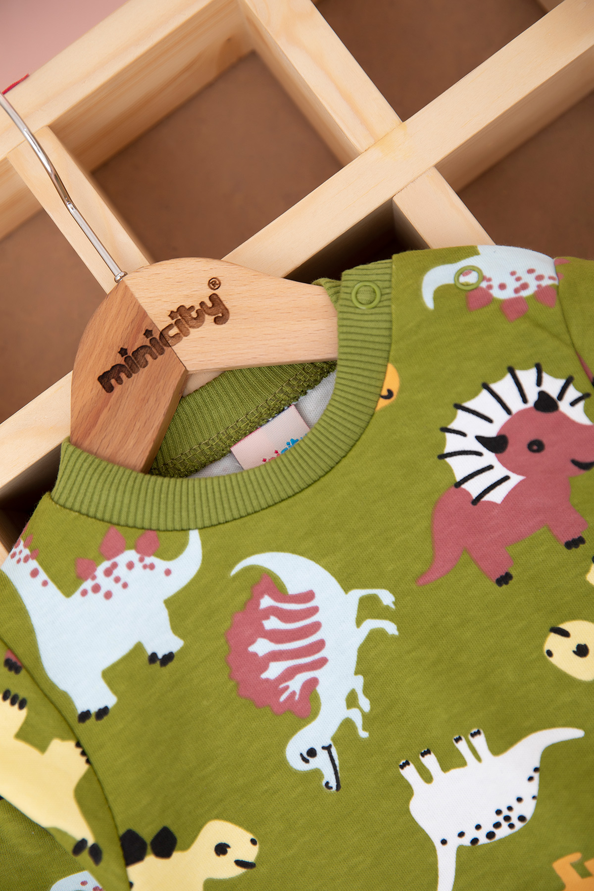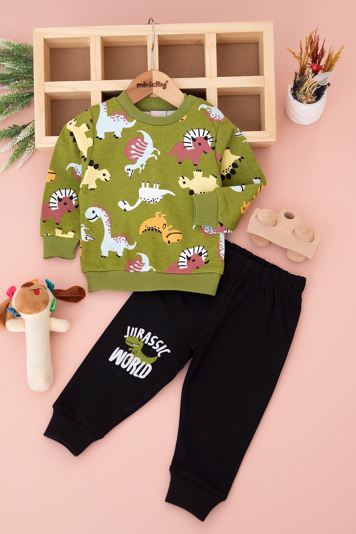 Erkek Bebek Dinazor Desenli İnterlok Takım - 23468 (9-24 Ay)