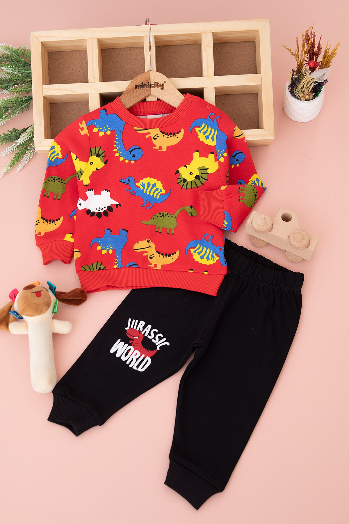 Erkek Bebek Dinazor Desenli İnterlok Takım - 23468 (9-24 Ay)