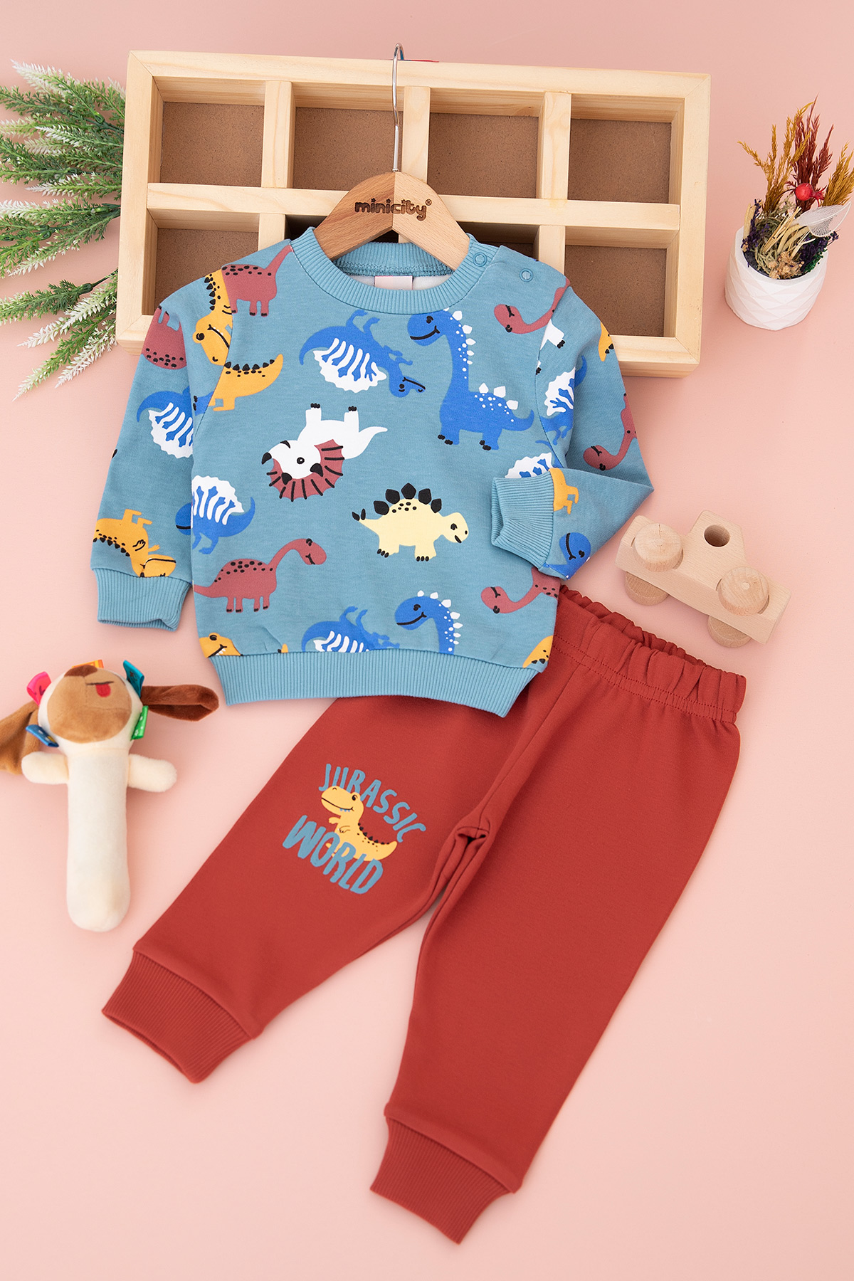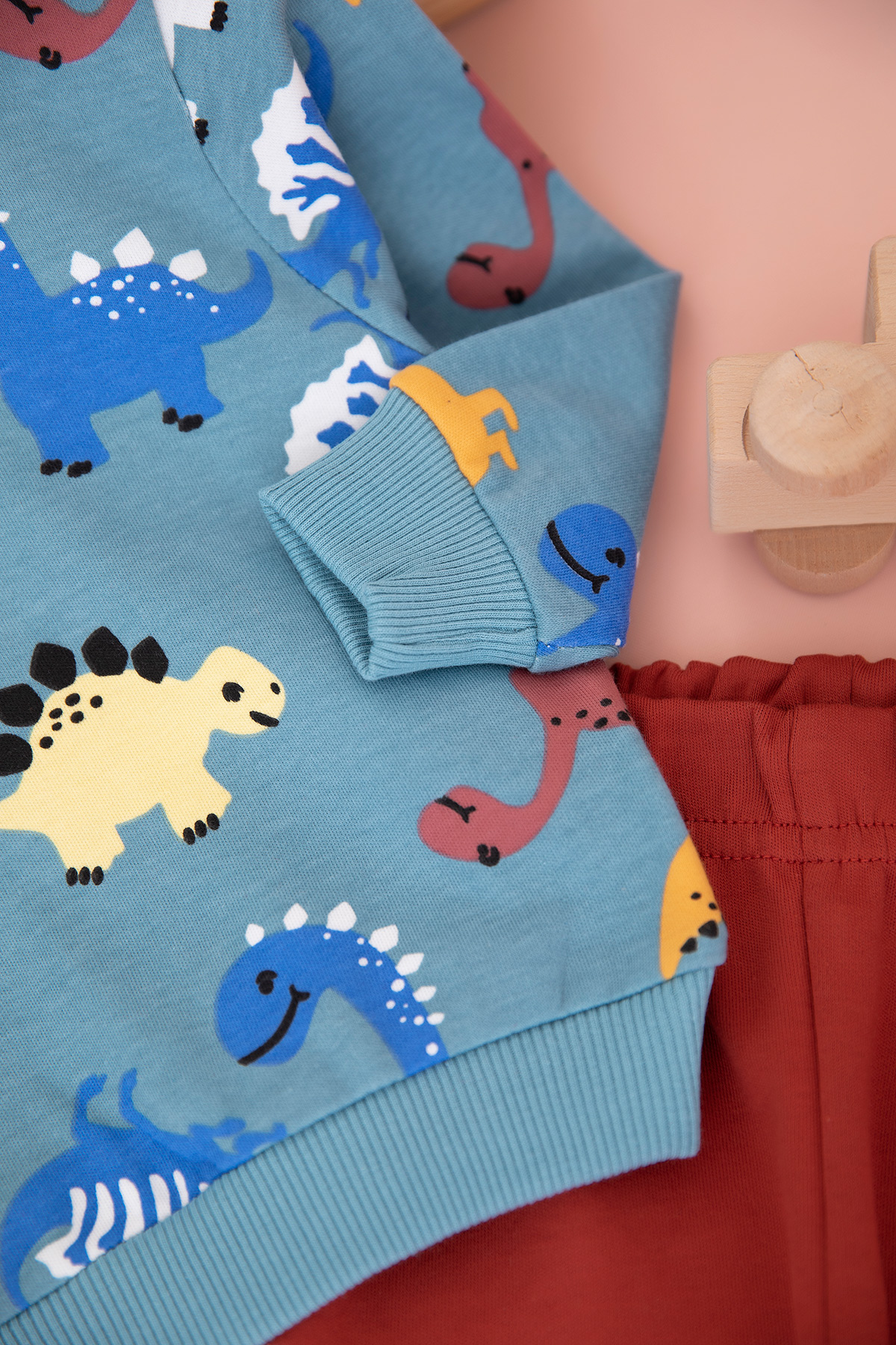 Erkek Bebek Dinazor Desenli İnterlok Takım - 23468 (9-24 Ay)