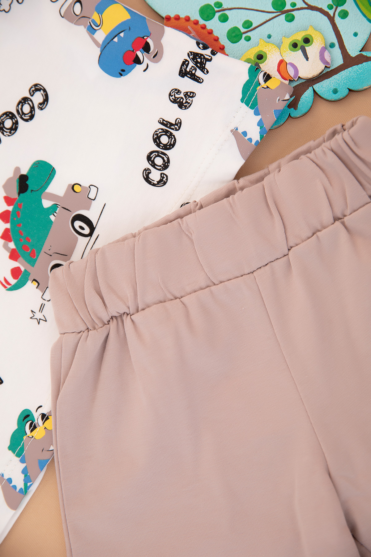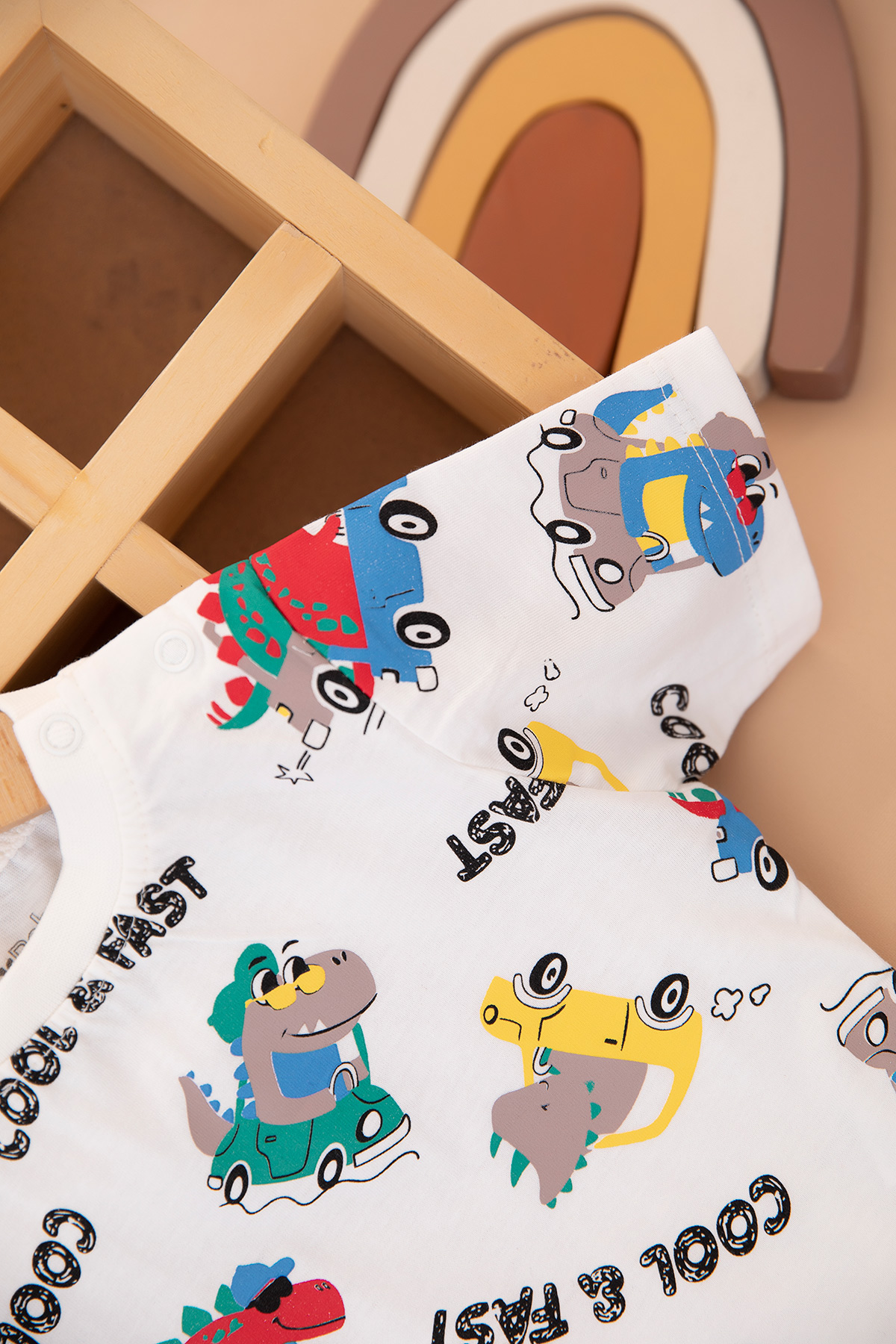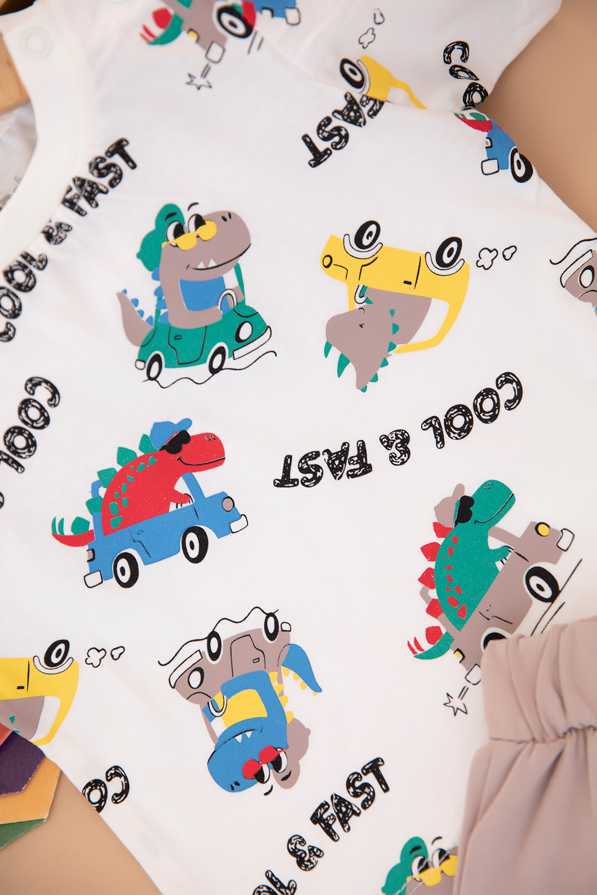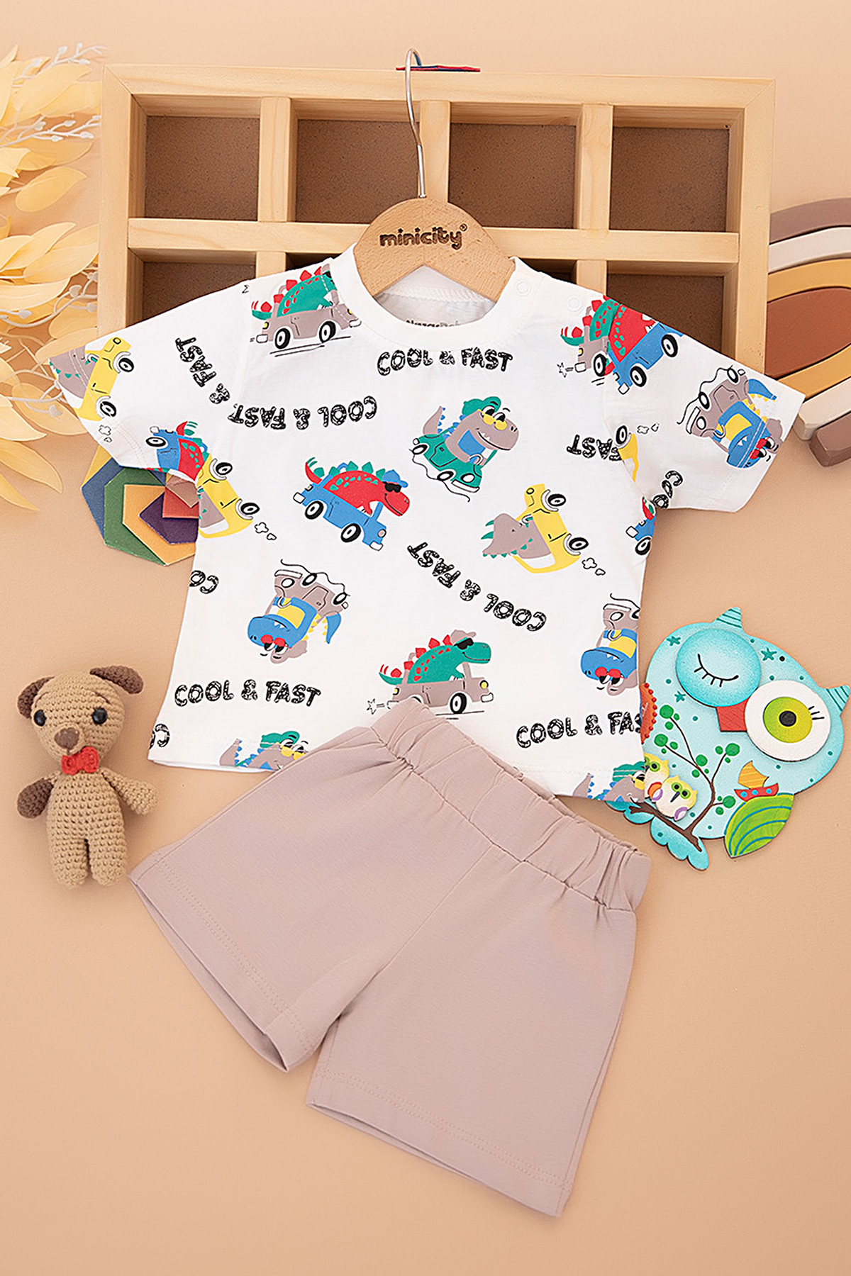 Erkek Bebek Dino Araba Baskılı Şortlu Takım - 25381 (9-24 Ay)