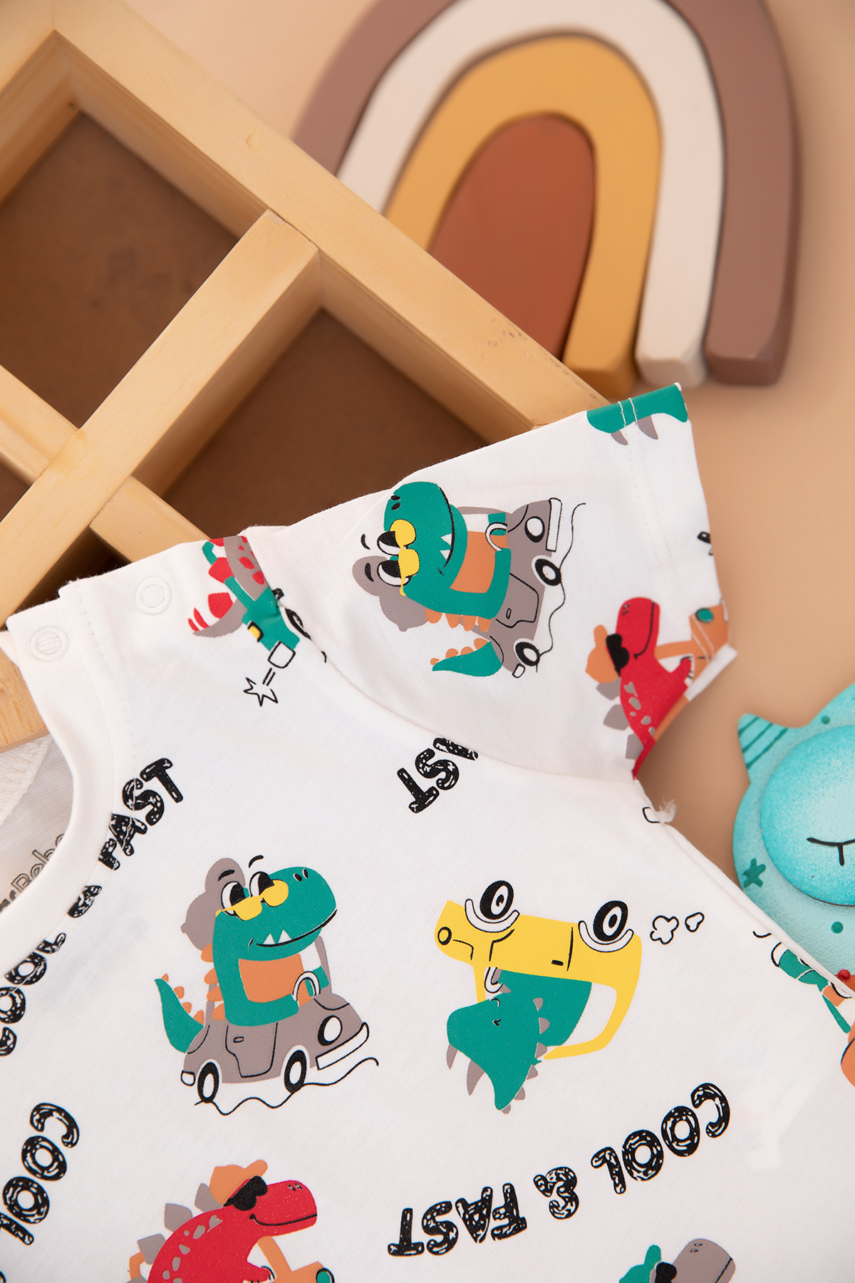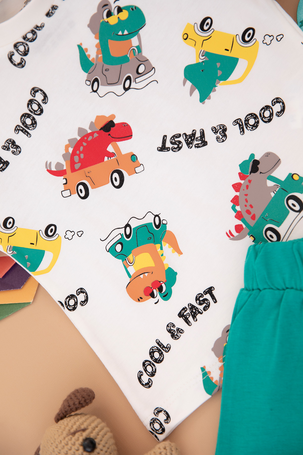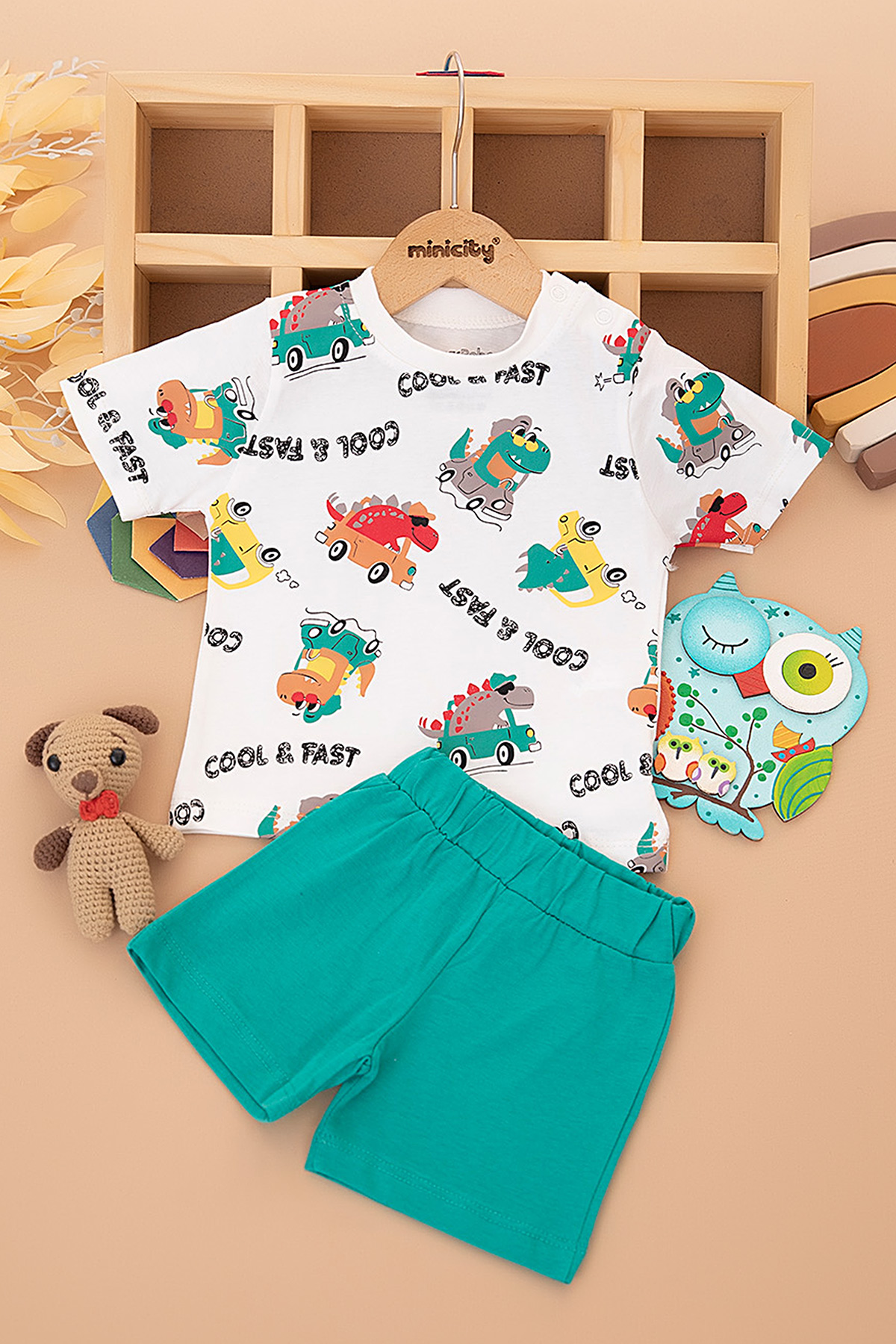 Erkek Bebek Dino Araba Baskılı Şortlu Takım - 25381 (9-24 Ay)