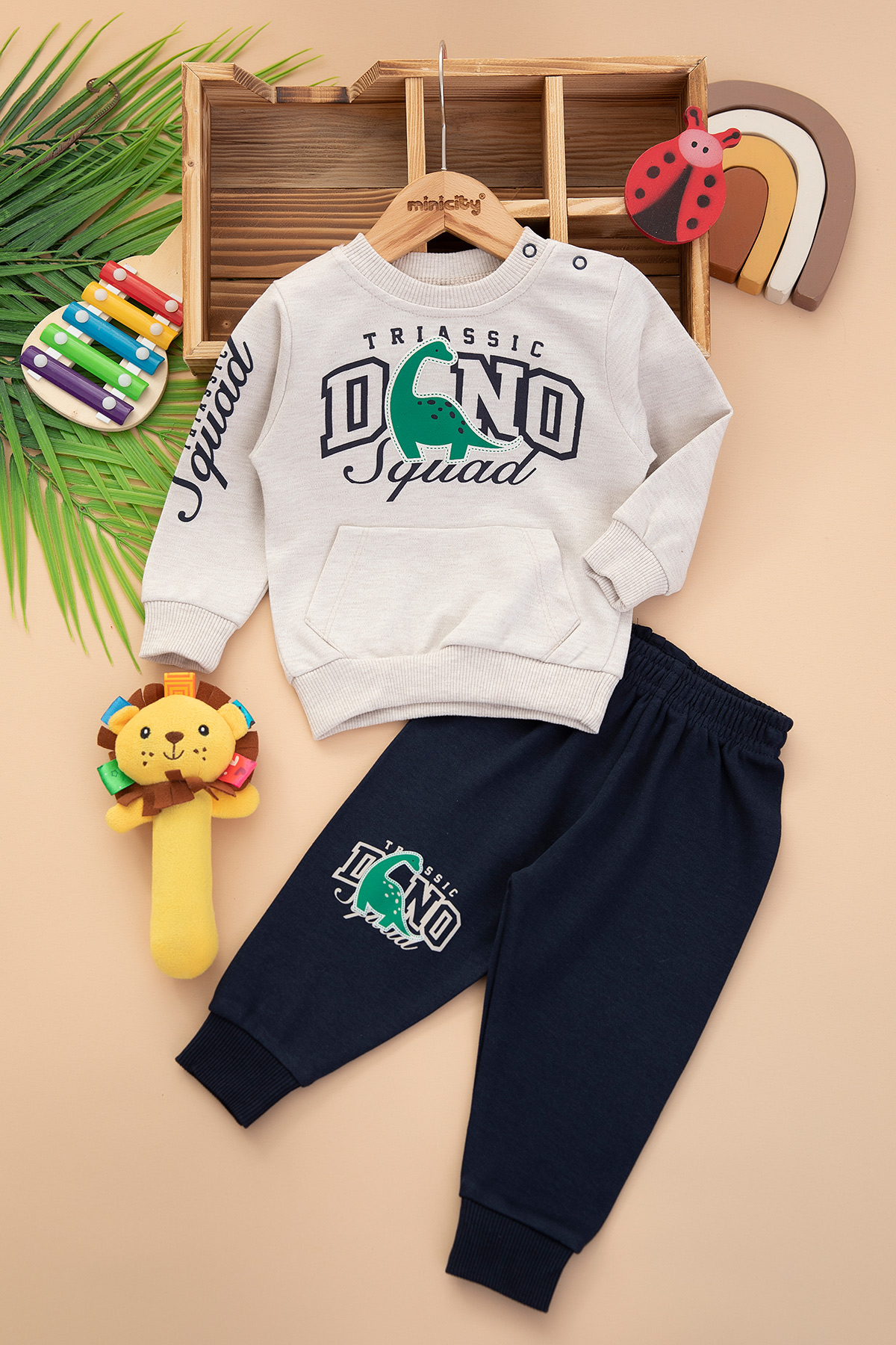 Erkek Bebek Dino Baskılı Takım - 25686 (9-24 Ay)