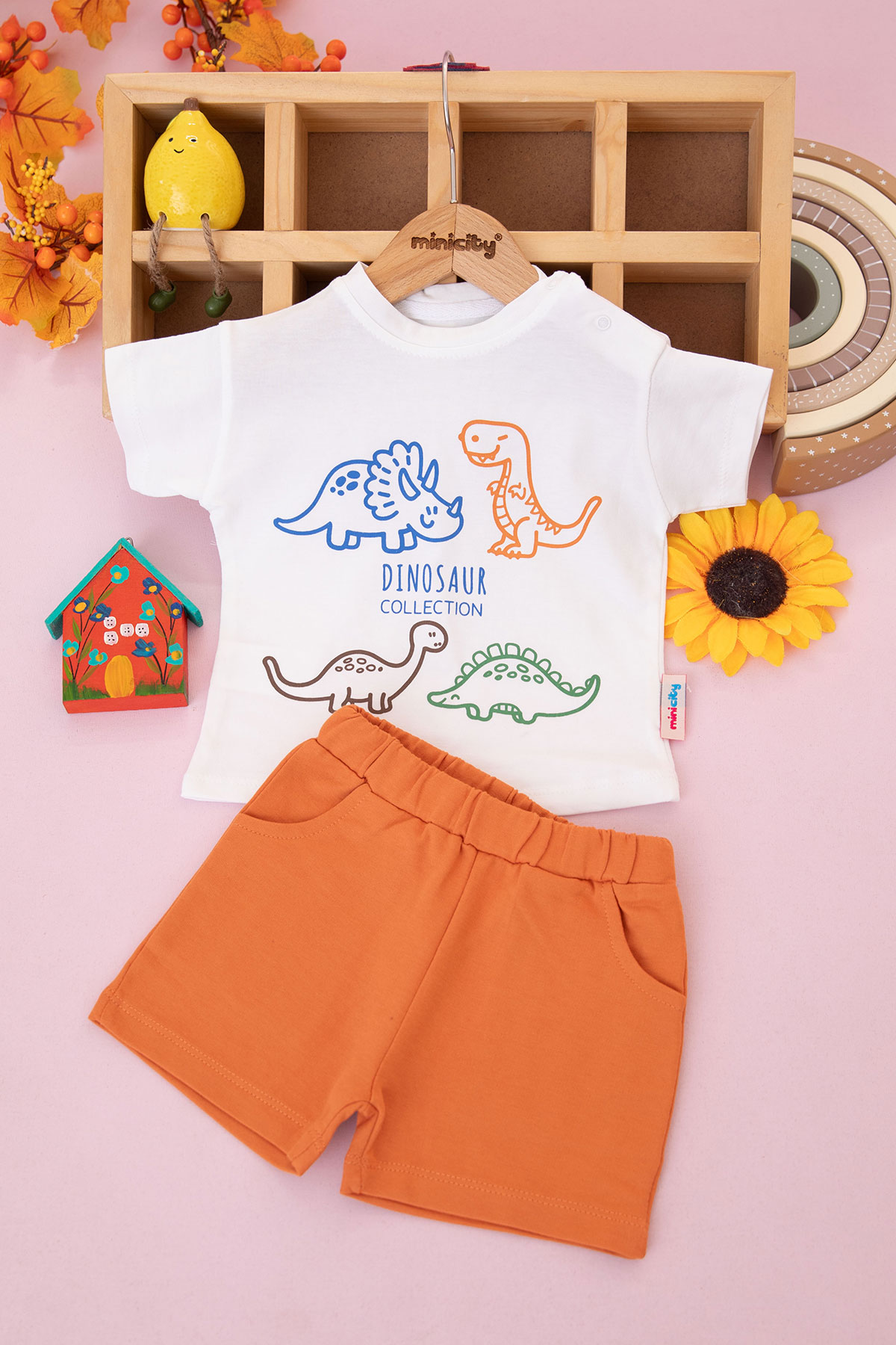 Erkek Bebek Dinozor Baskılı Şortlu Takım - 4000 (6-24 Ay)