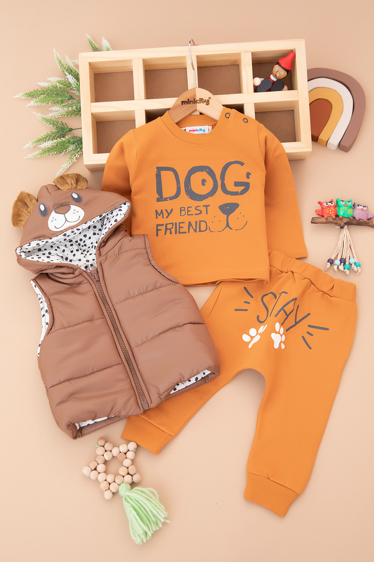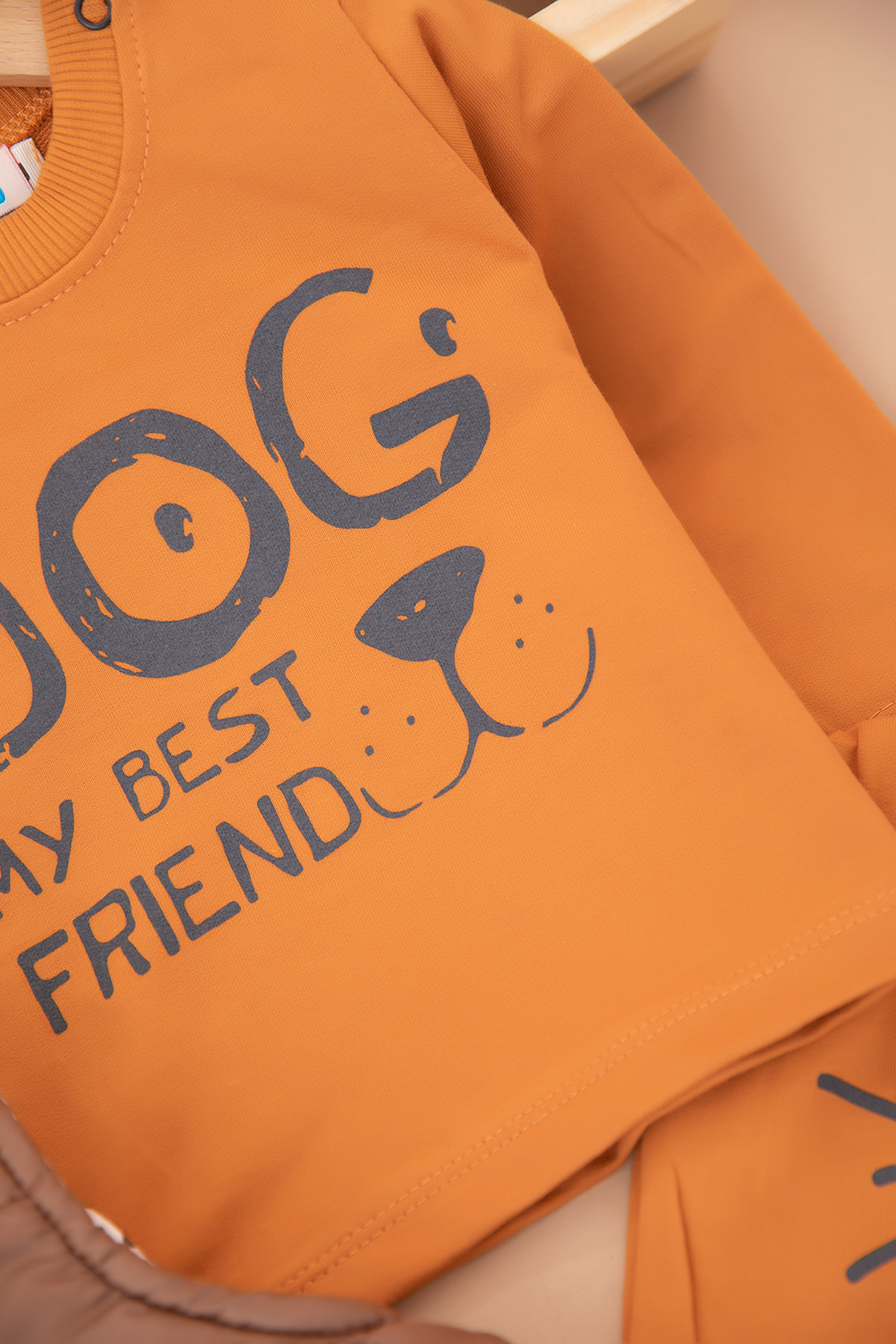 Erkek Bebek Dog Baskılı Yelekli Takım - 5065 (9-18 Ay)