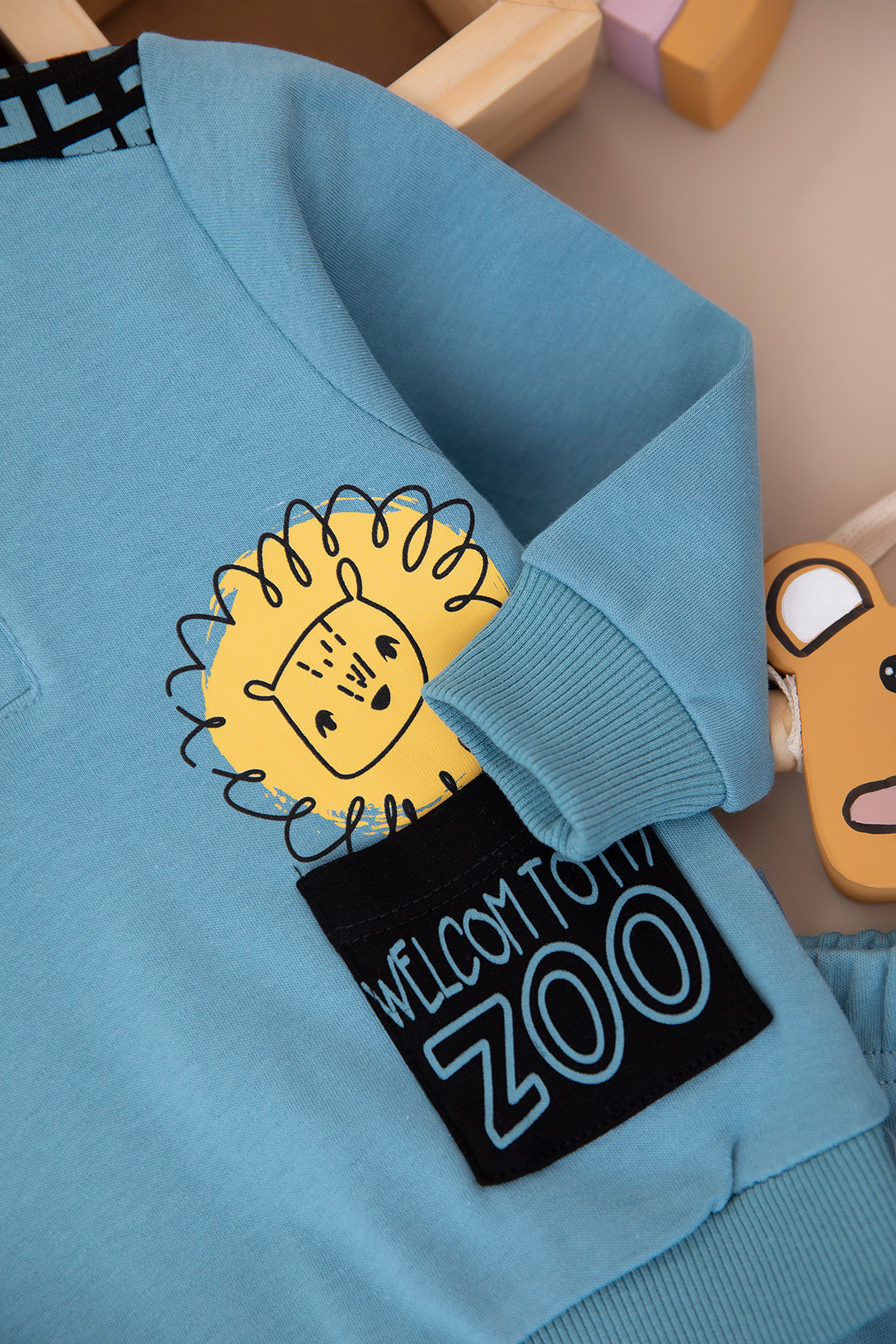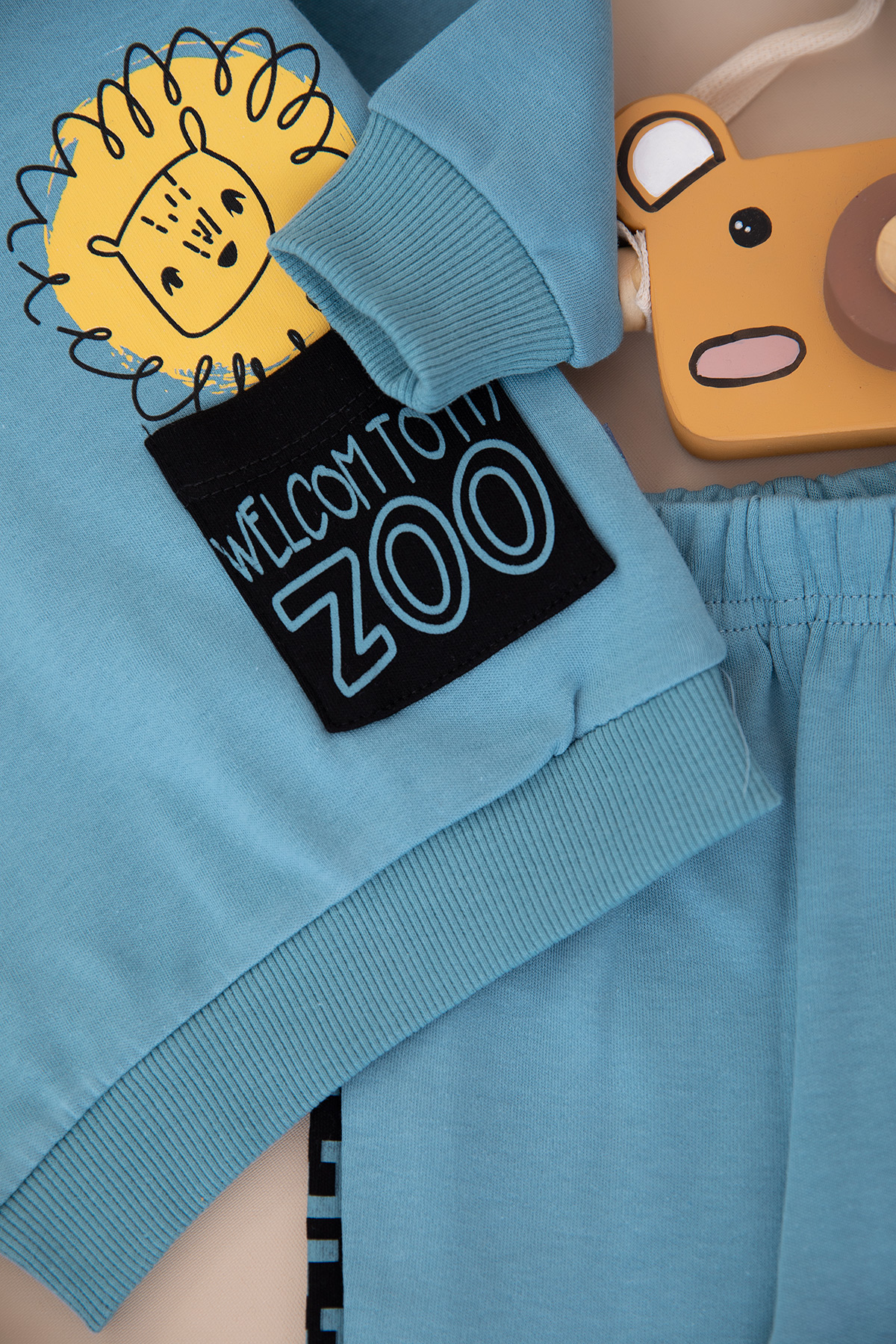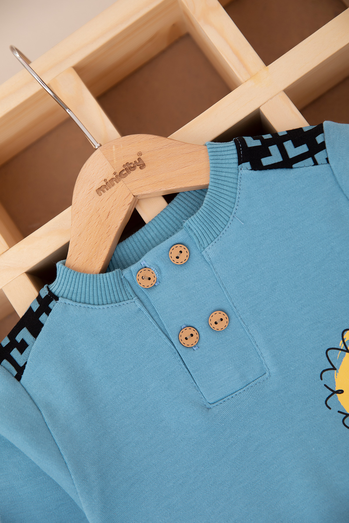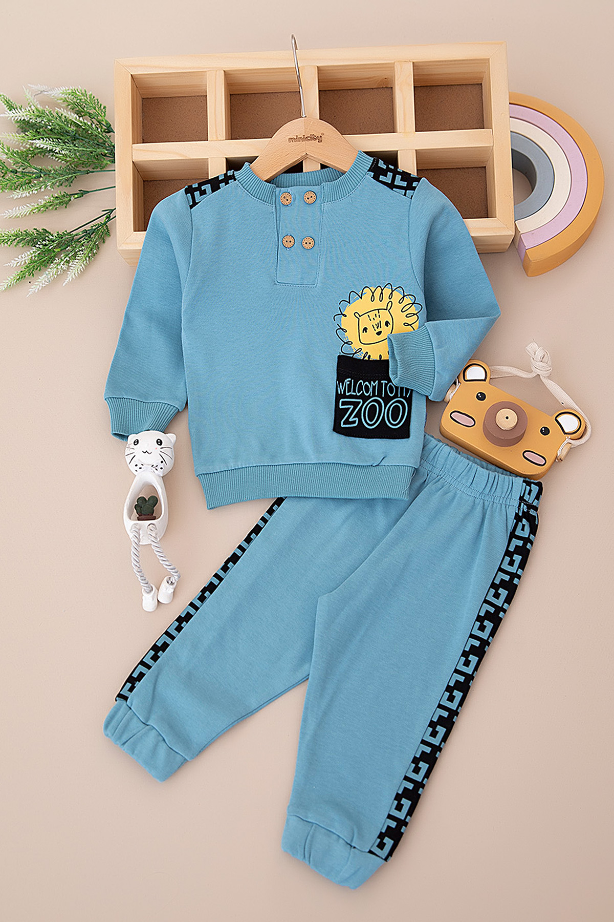 Erkek Bebek Düğmeli Aslan Baskılı Takım - 24076 (9-24 Ay)
