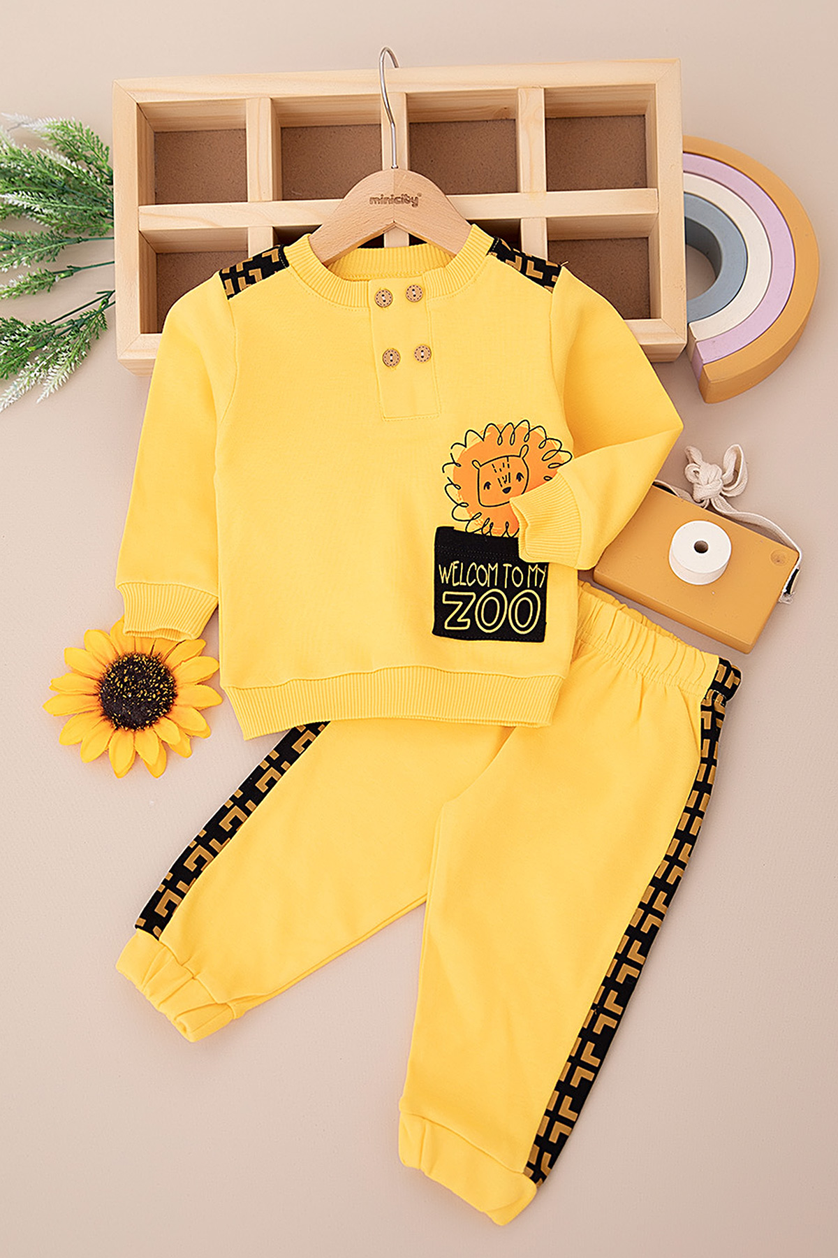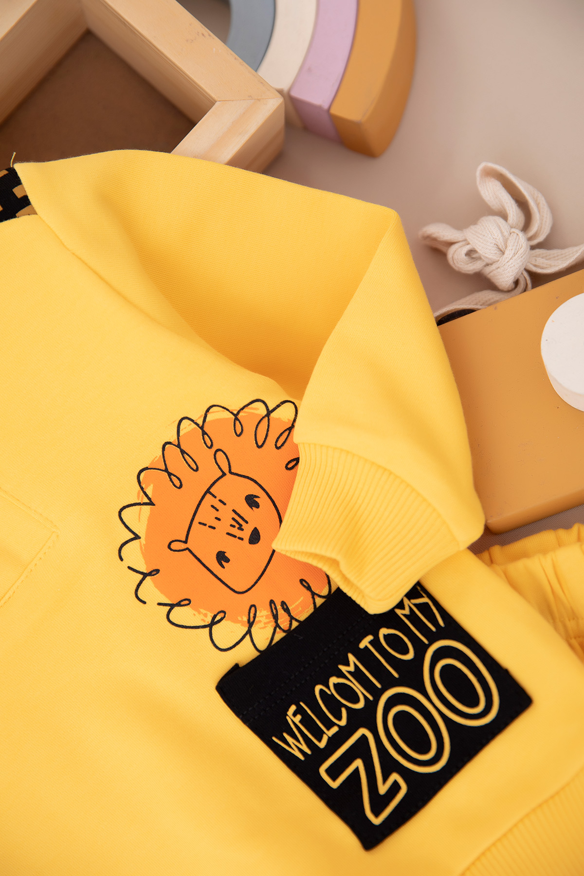 Erkek Bebek Düğmeli Aslan Baskılı Takım - 24076 (9-24 Ay)