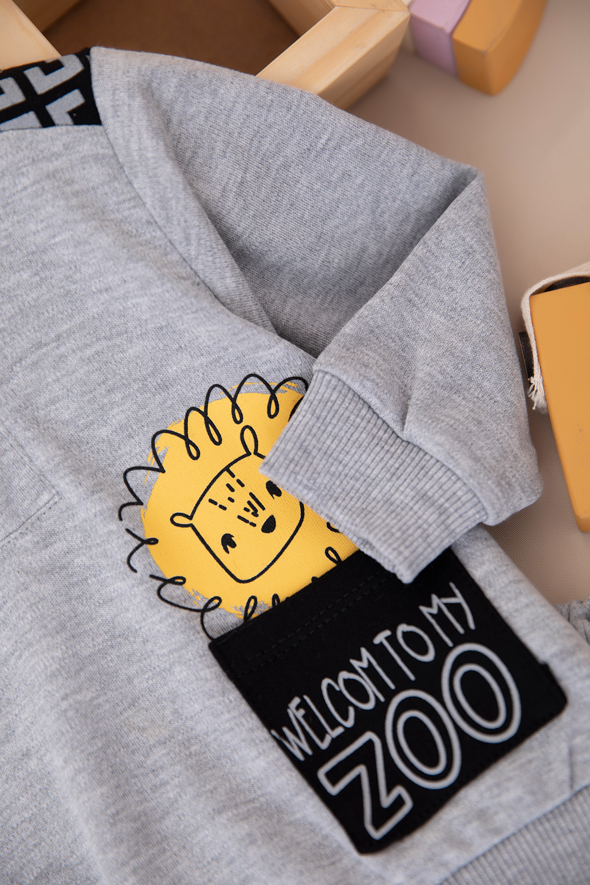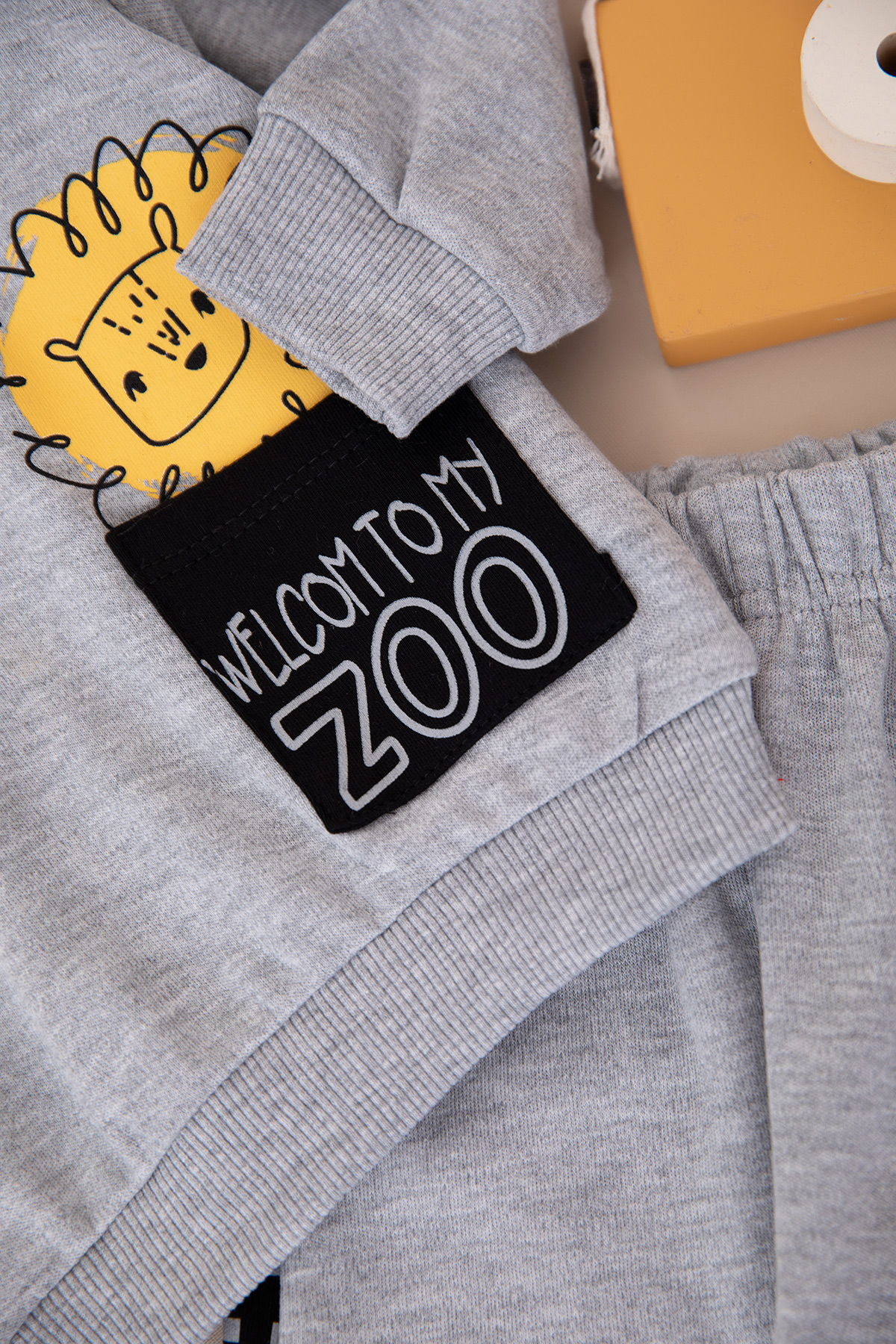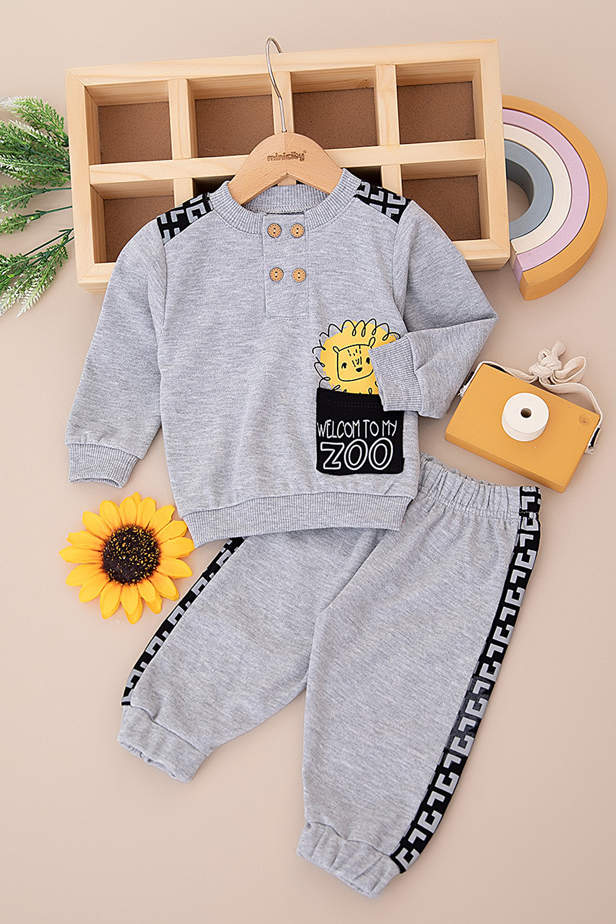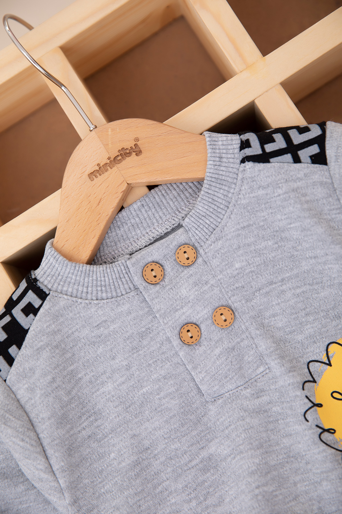 Erkek Bebek Düğmeli Aslan Baskılı Takım - 24076 (9-24 Ay)