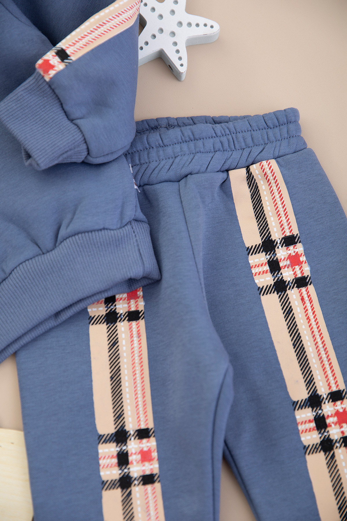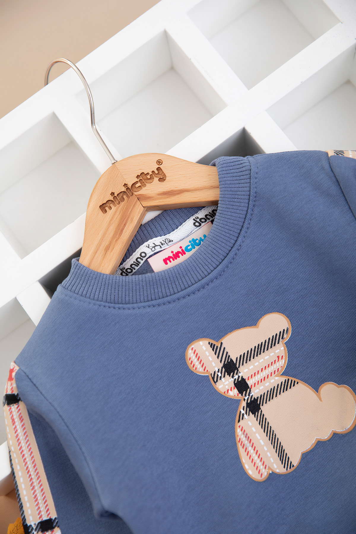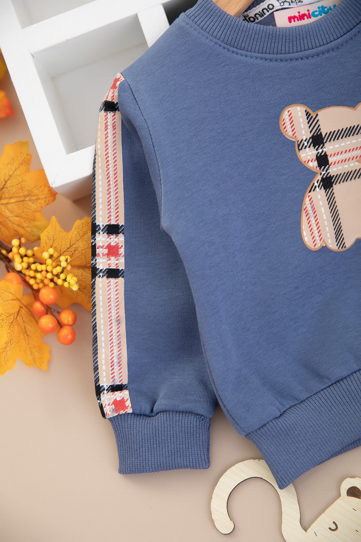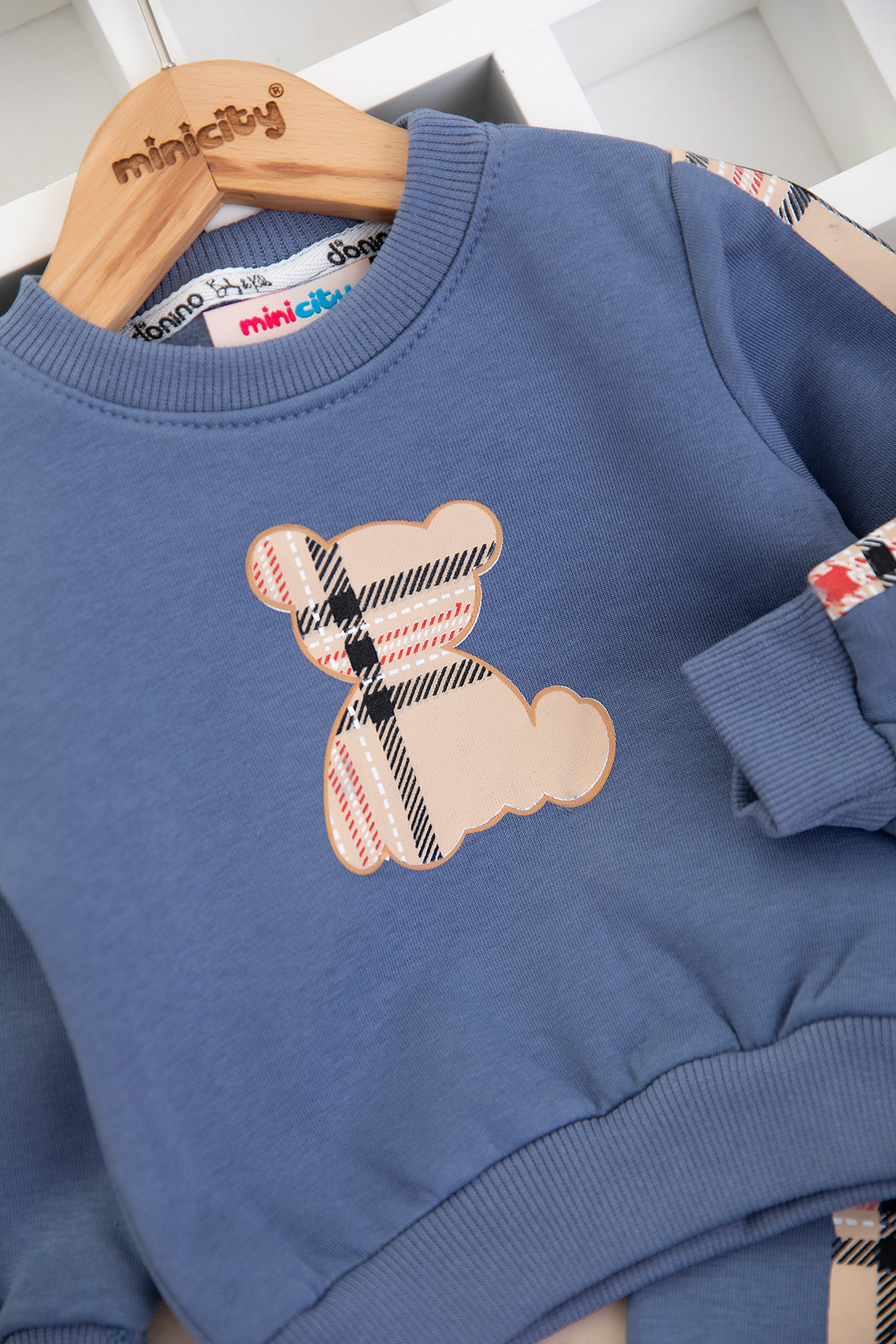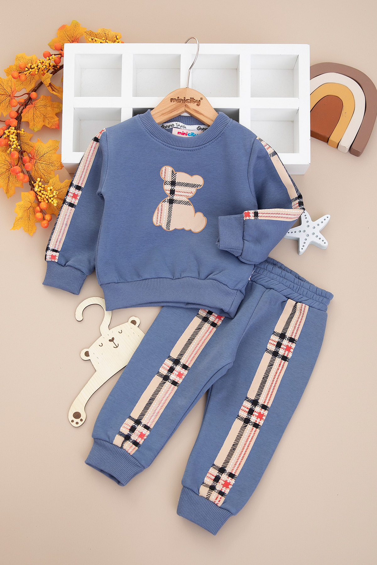 Erkek Bebek Ekose Ayı Baskılı Üçip Takım - 60311 (6-24 Ay)