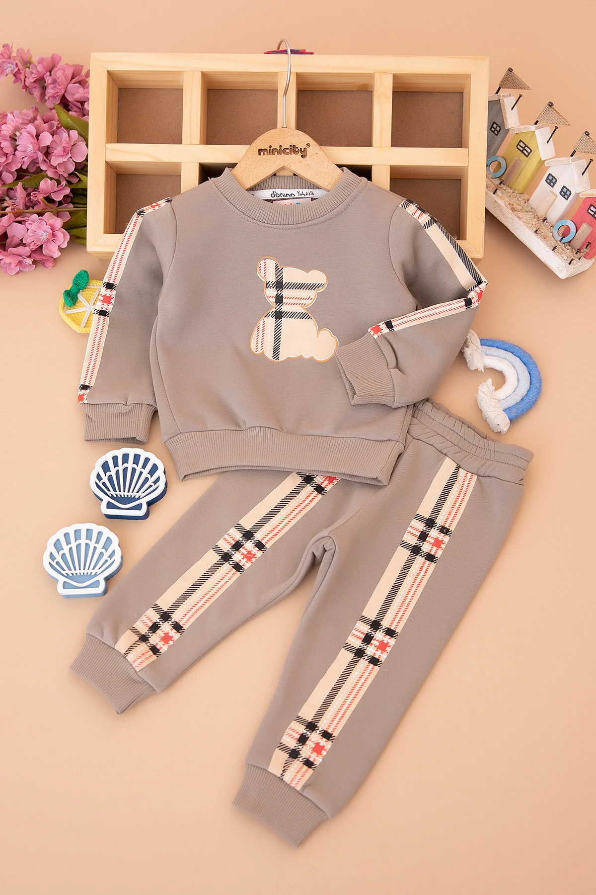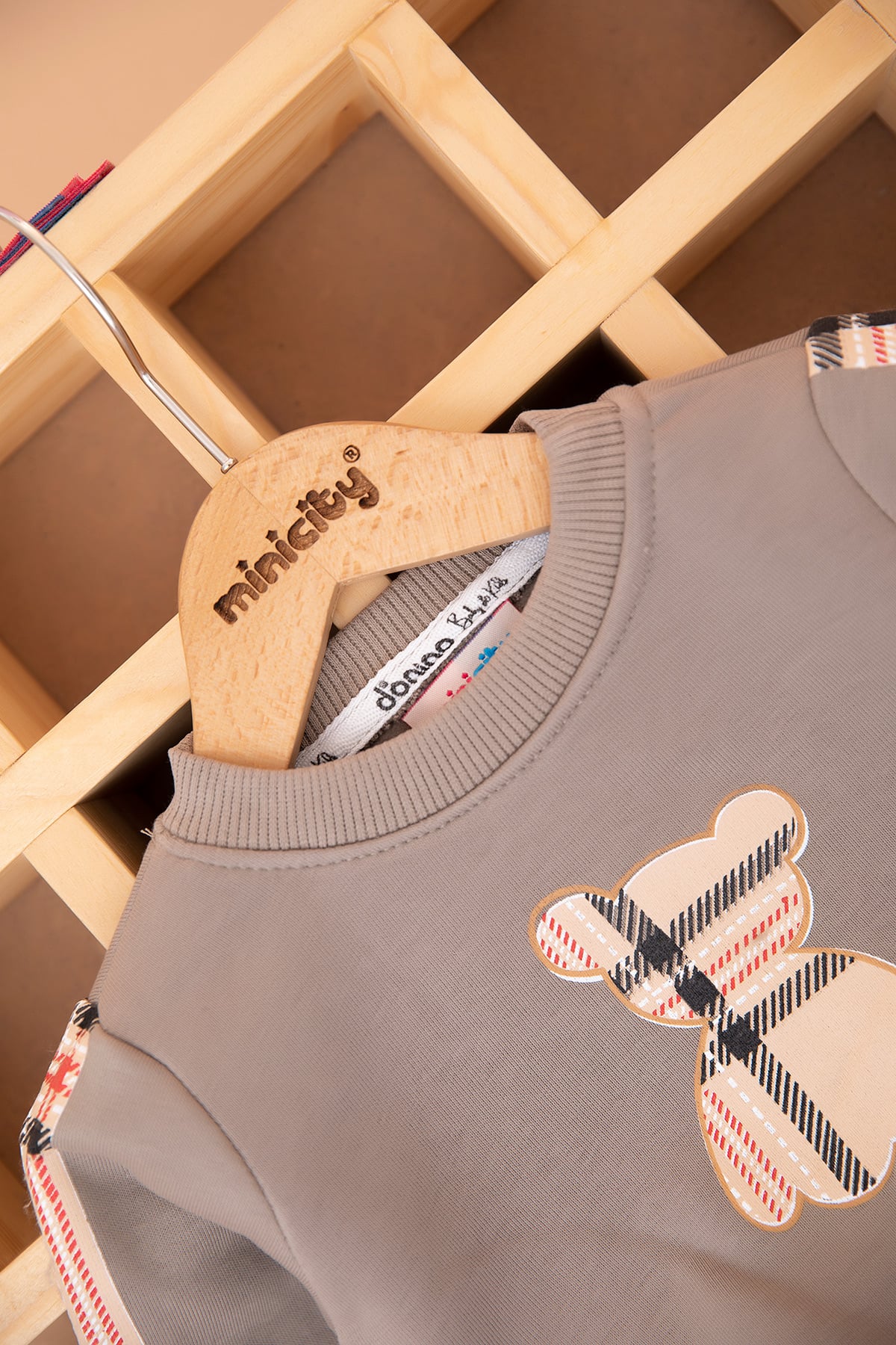 Erkek Bebek Ekose Ayı Baskılı Üçip Takım - 60311 (6-24 Ay)
