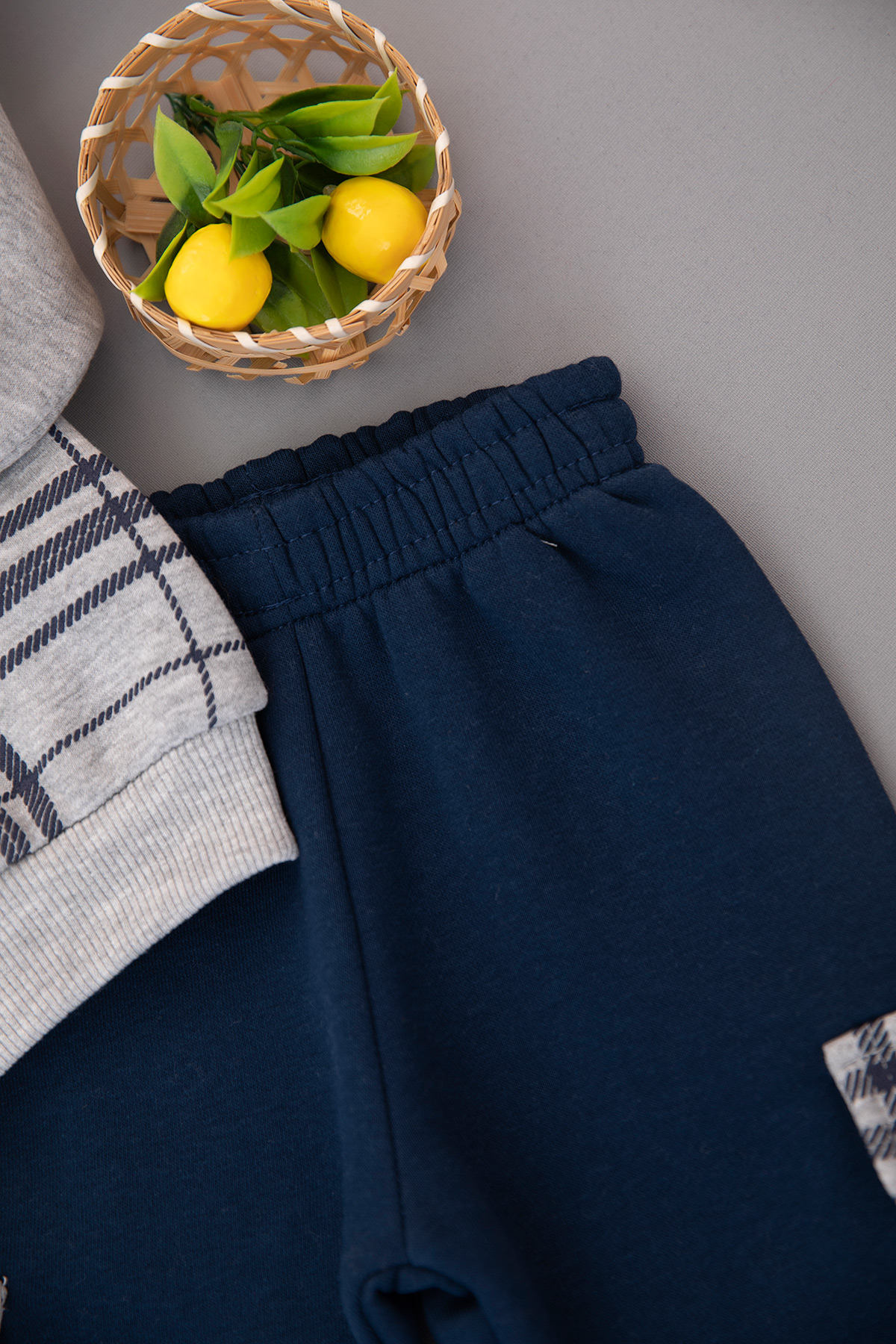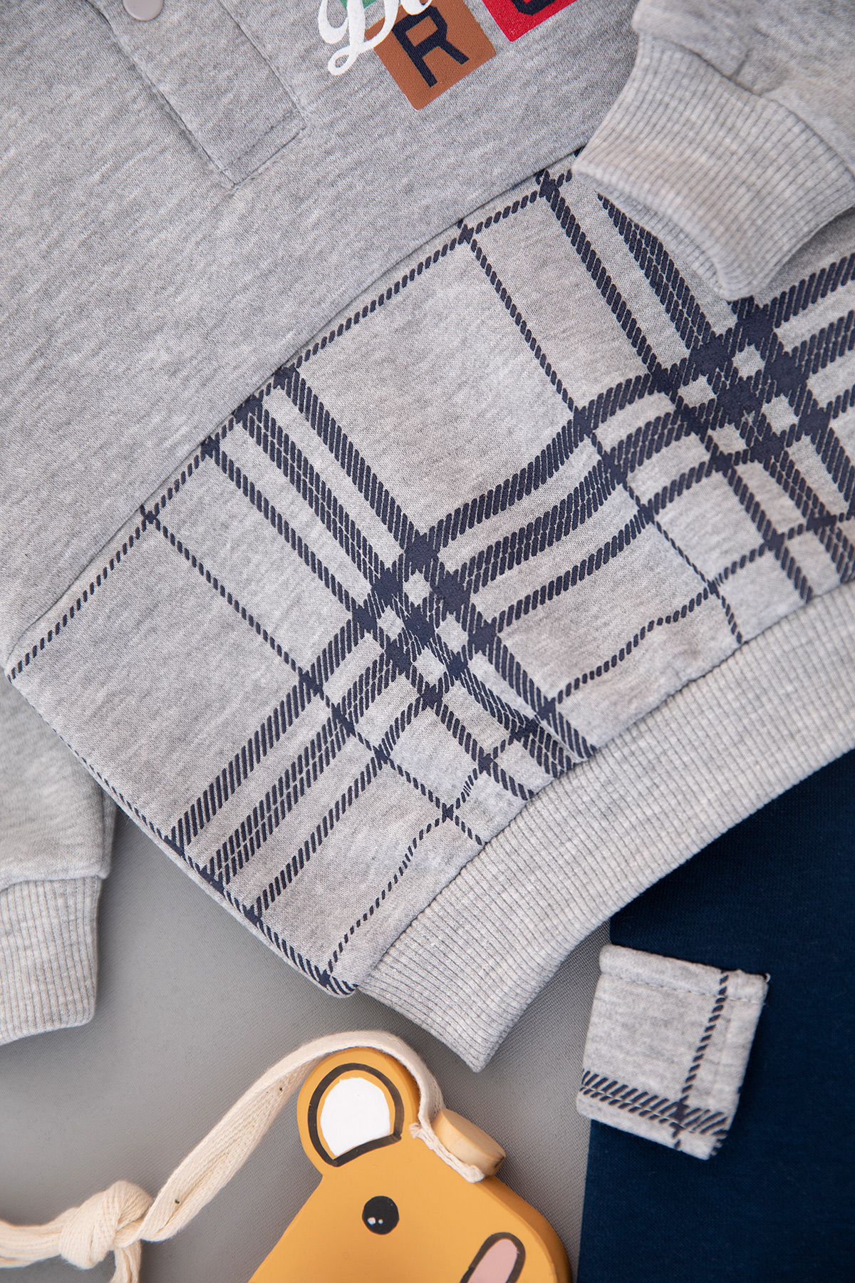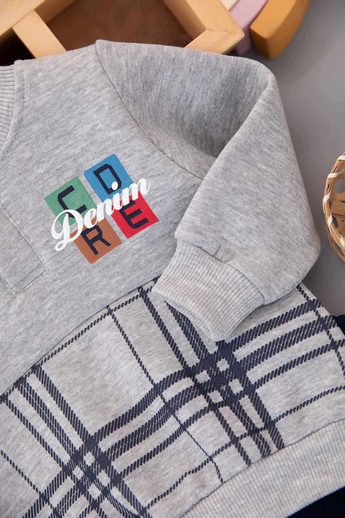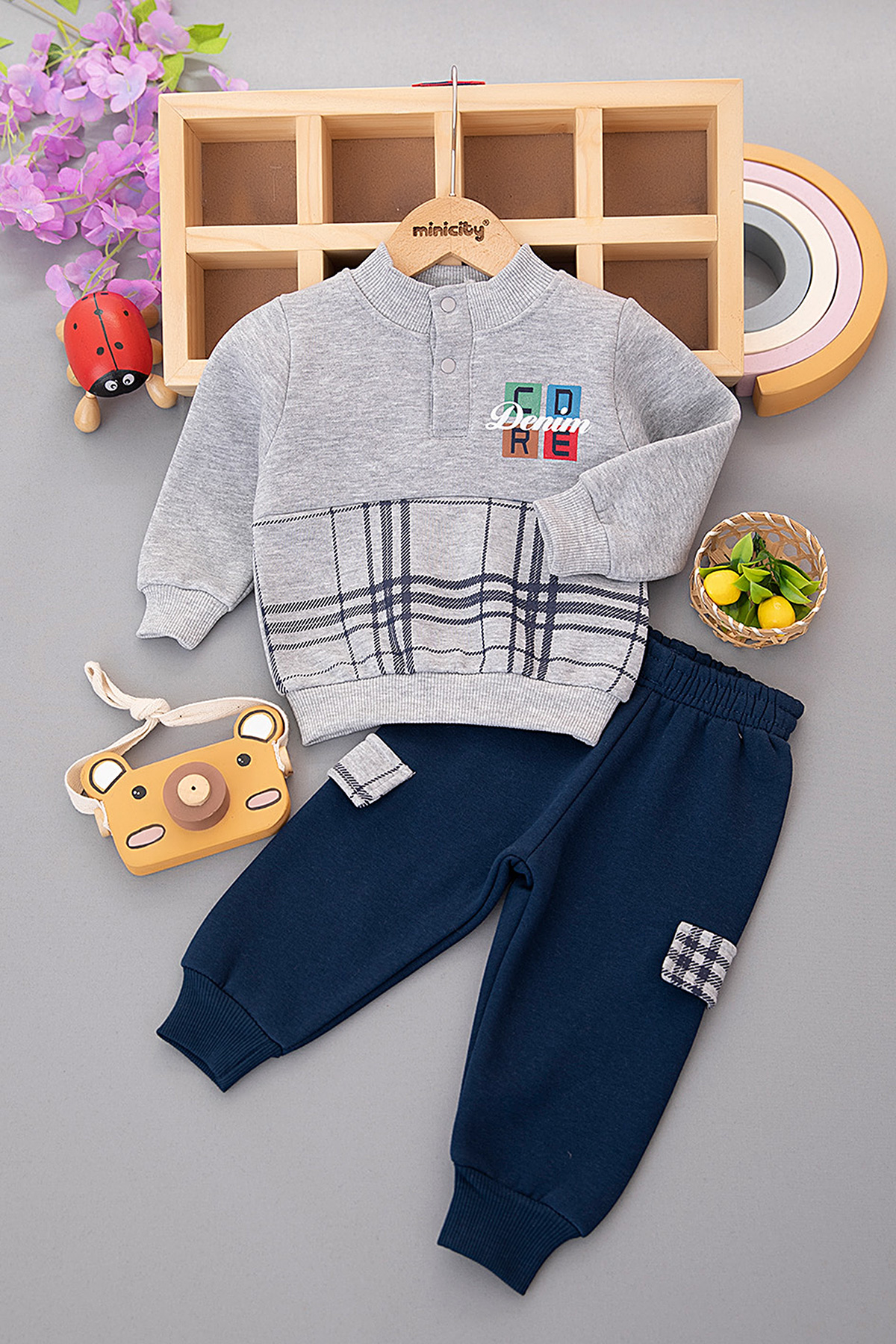 Erkek Bebek Ekose Baskılı Üçip Takım - 24777 (9-24 Ay)