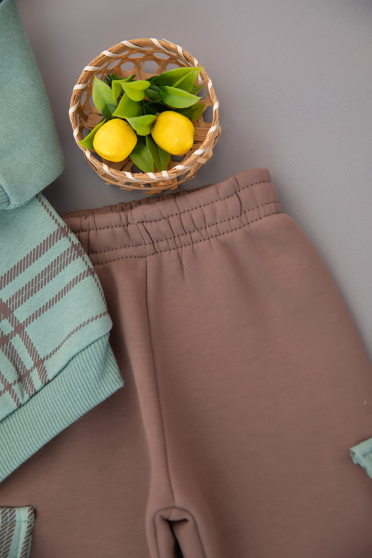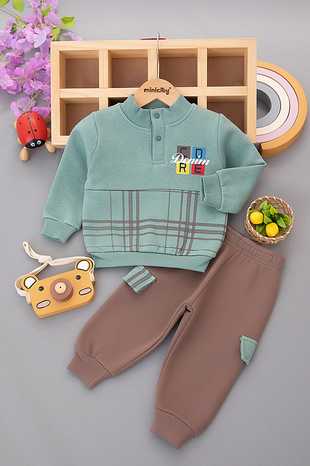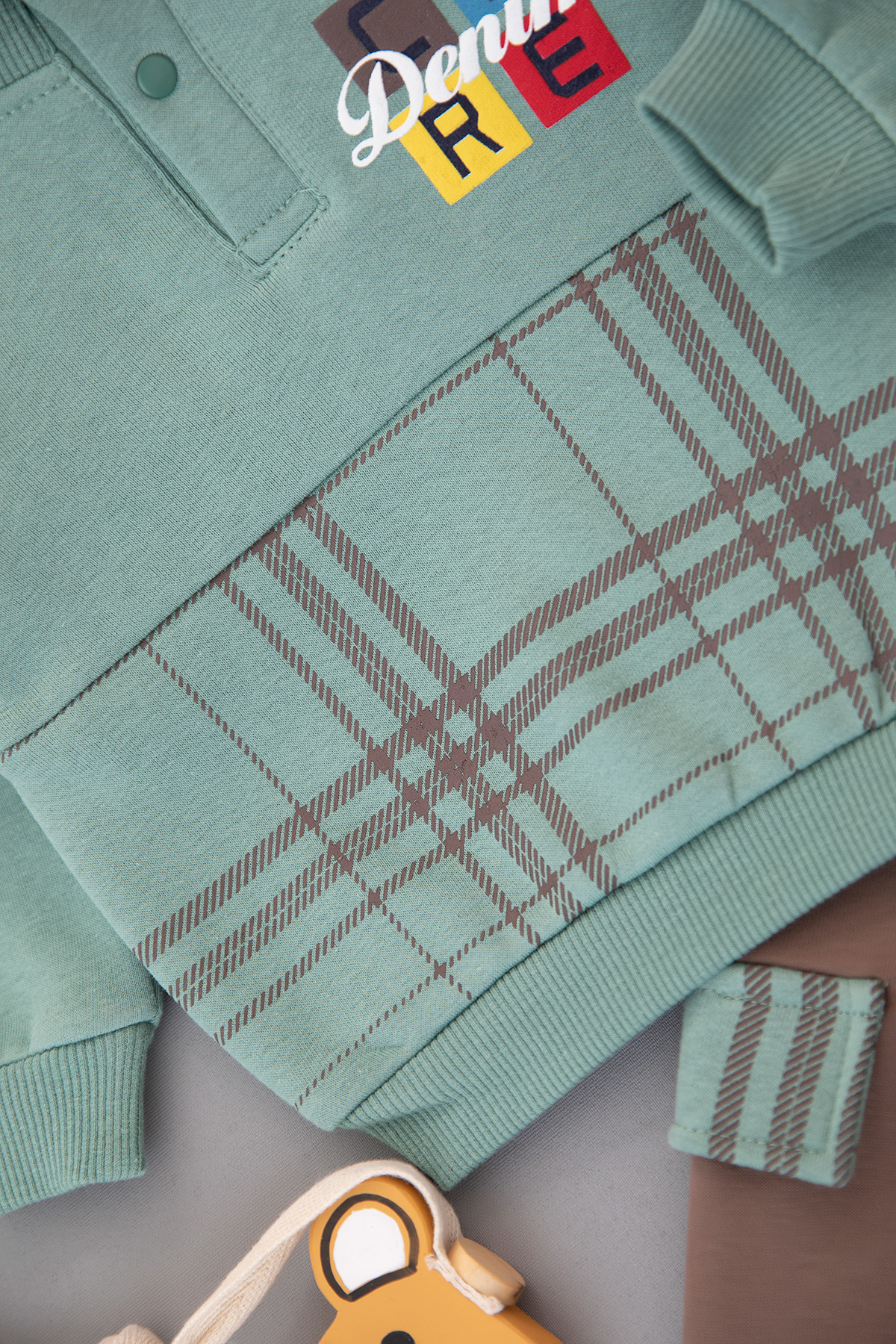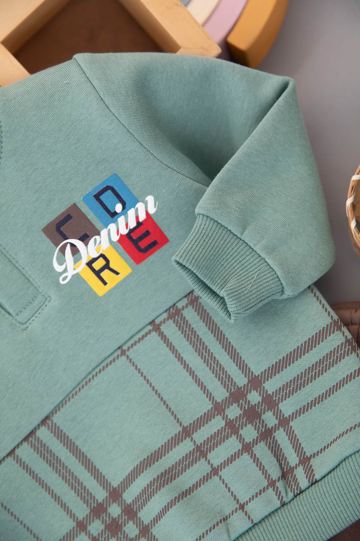 Erkek Bebek Ekose Baskılı Üçip Takım - 24777 (9-24 Ay)