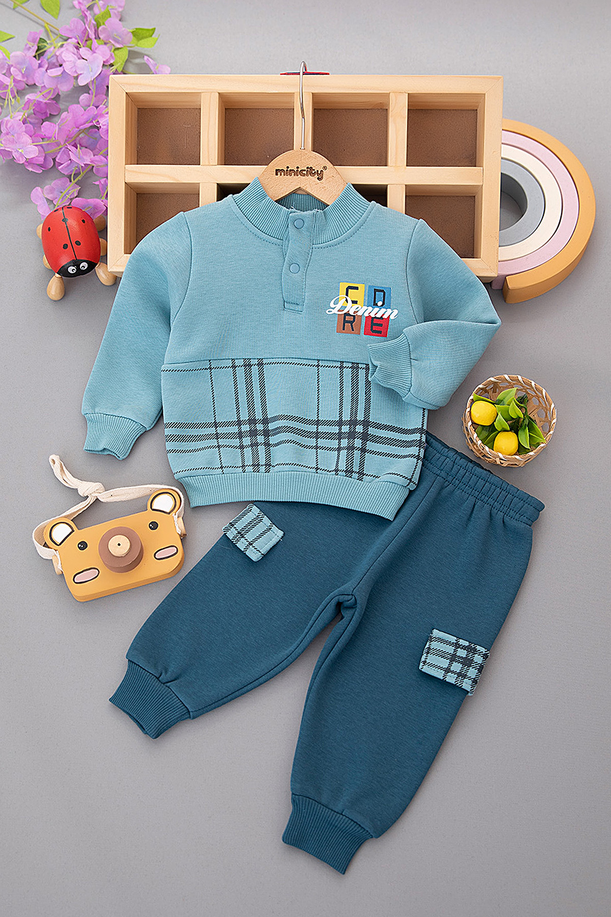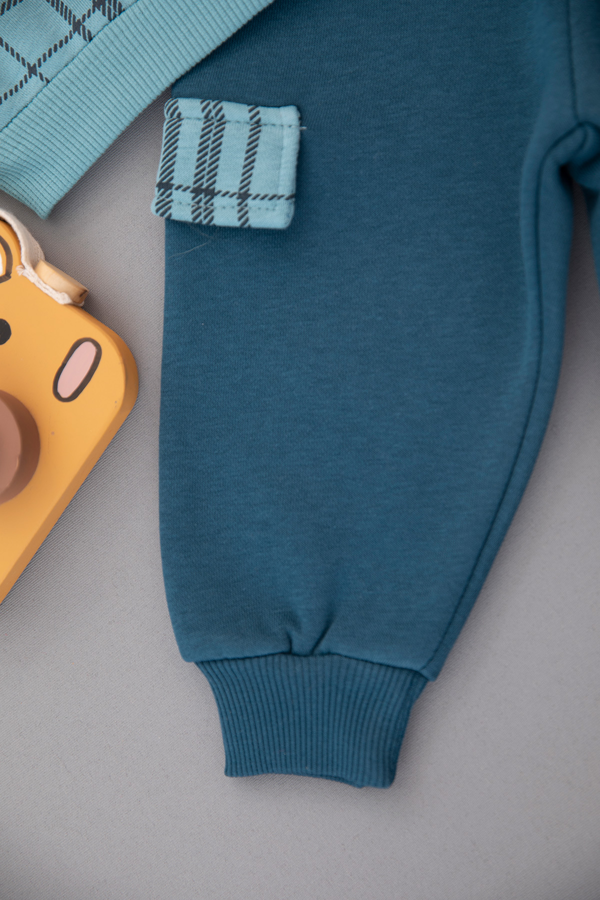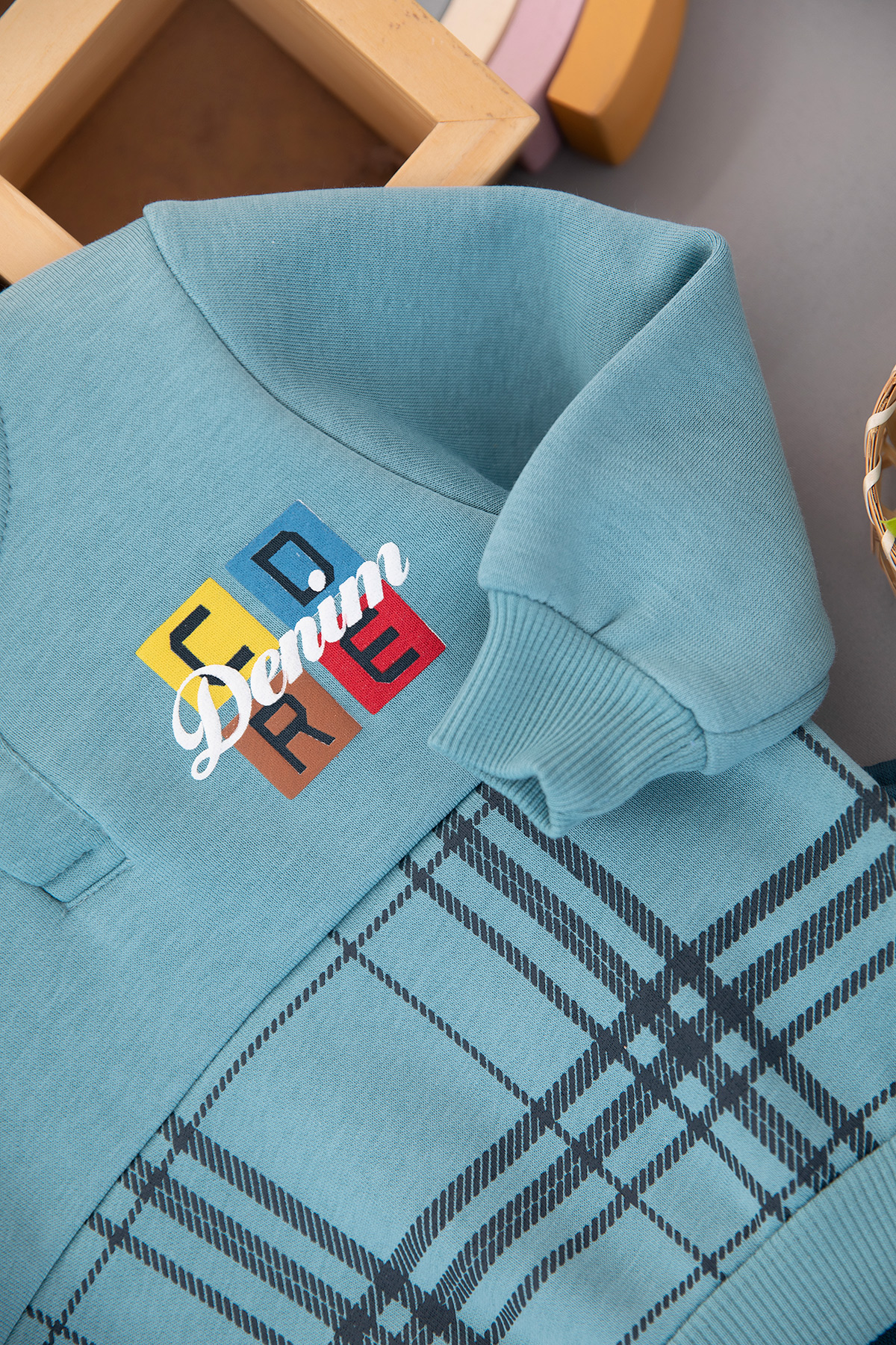 Erkek Bebek Ekose Baskılı Üçip Takım - 24777 (9-24 Ay)