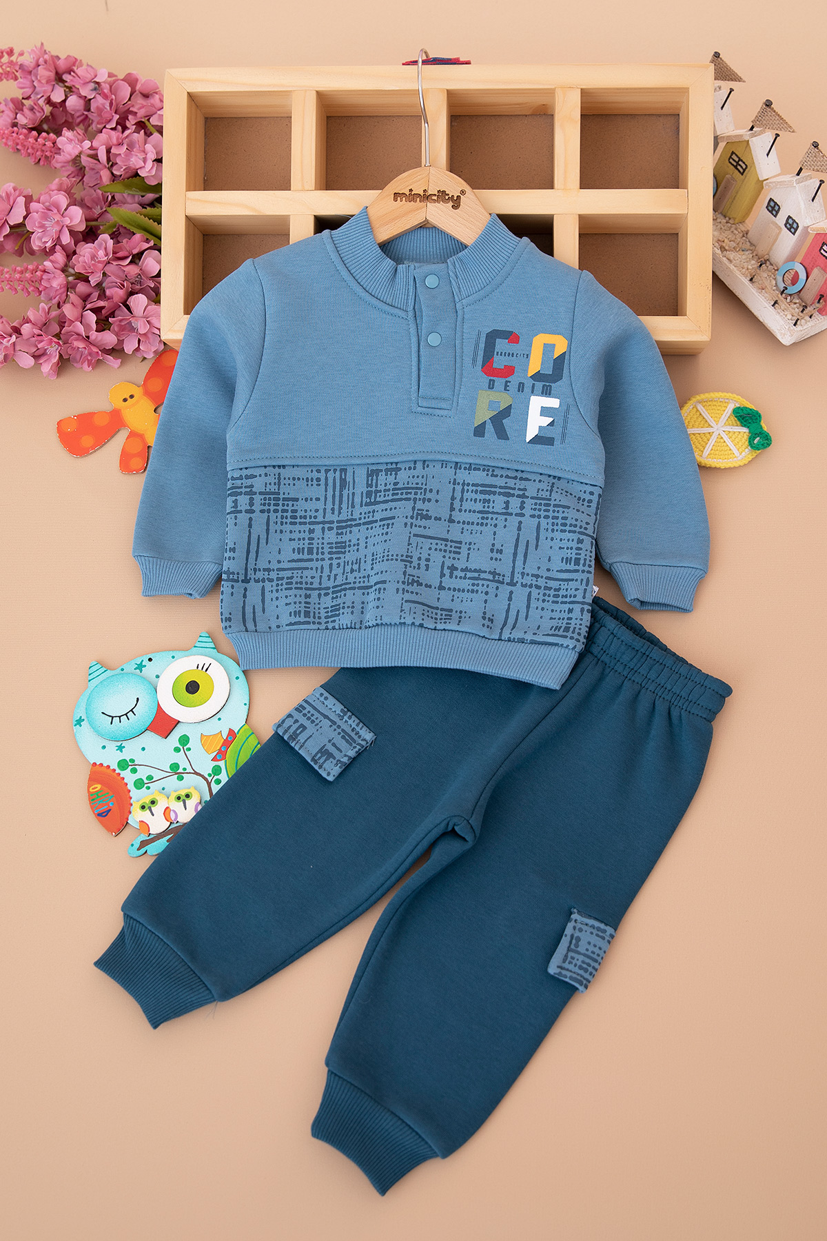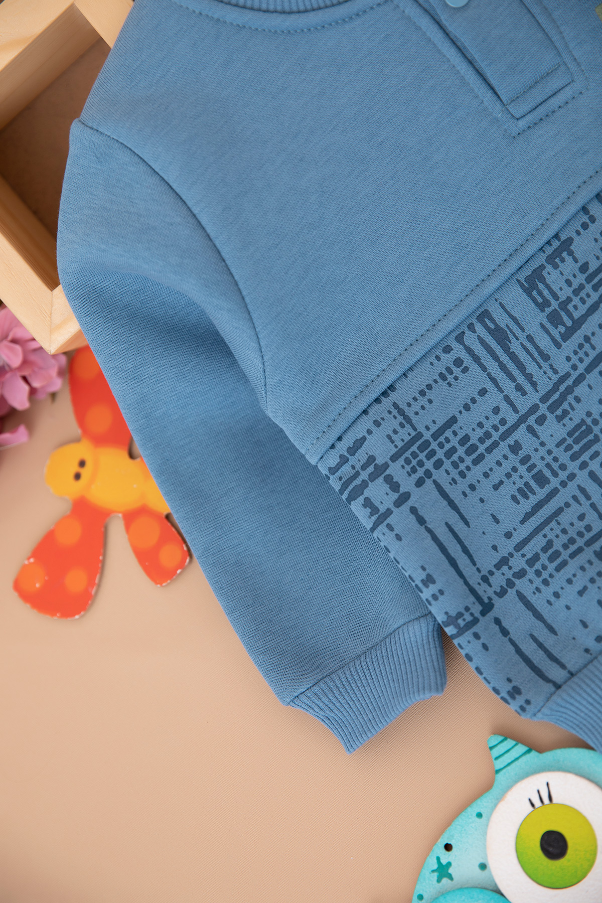 Erkek Bebek Ekose Baskılı Üçip Takım - 25987 (9-24 Ay)
