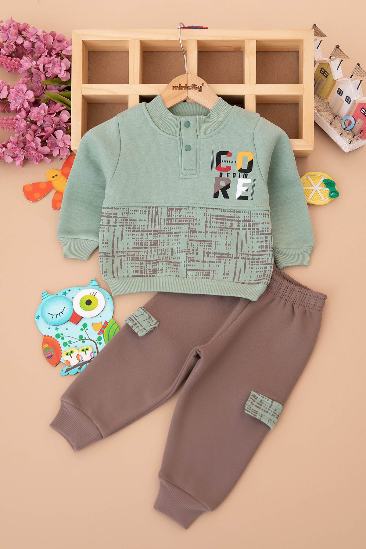 Erkek Bebek Ekose Baskılı Üçip Takım - 25987 (9-24 Ay)