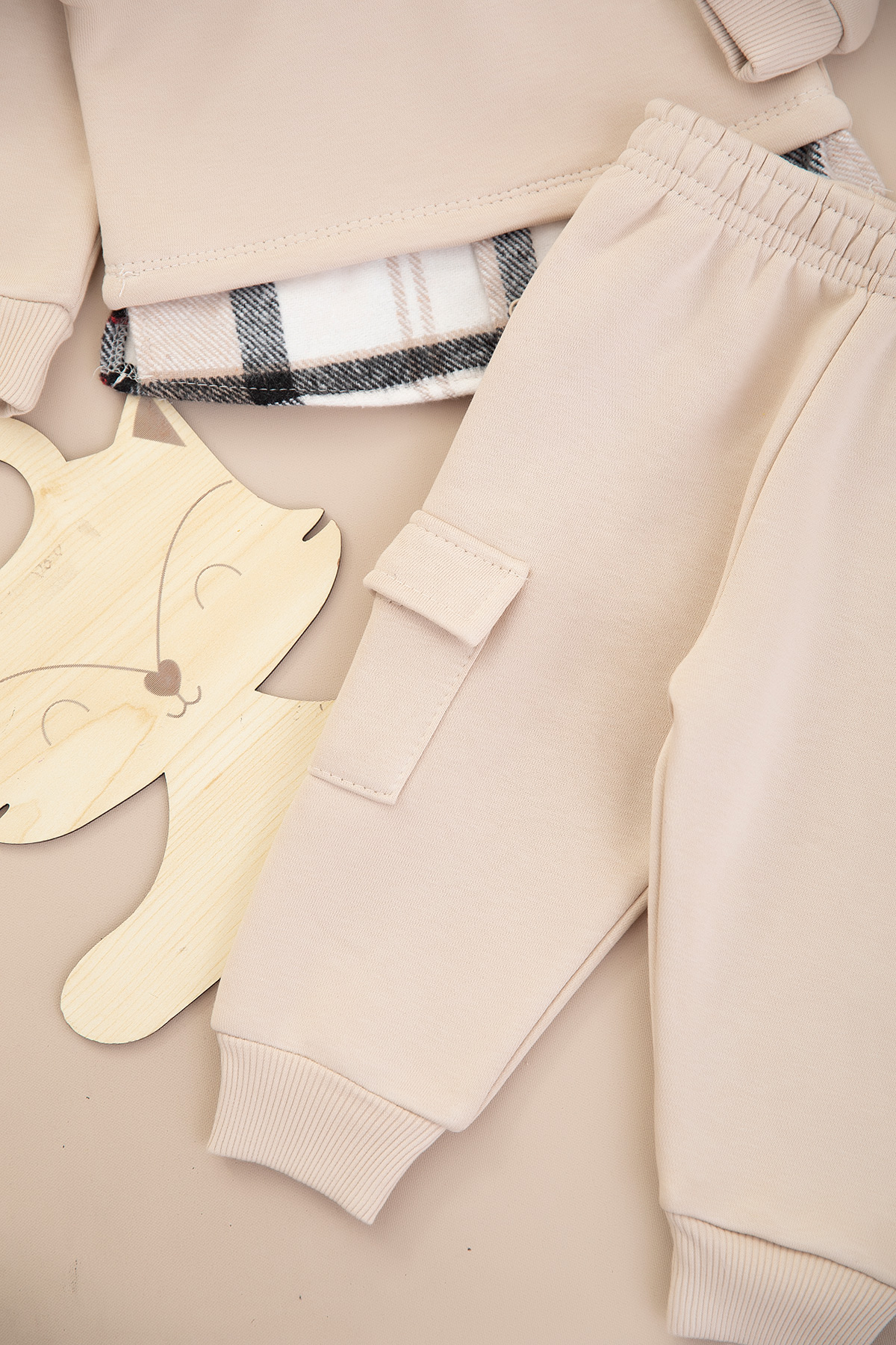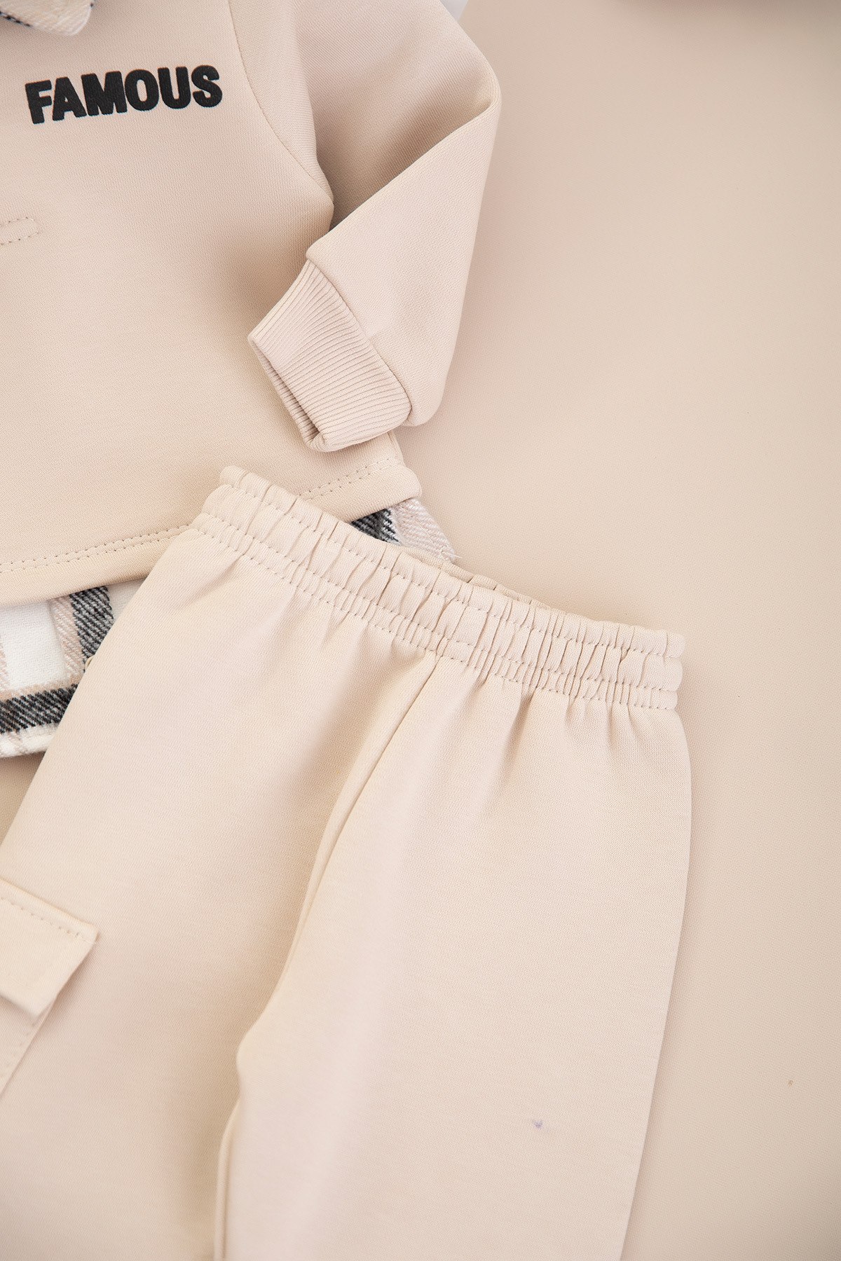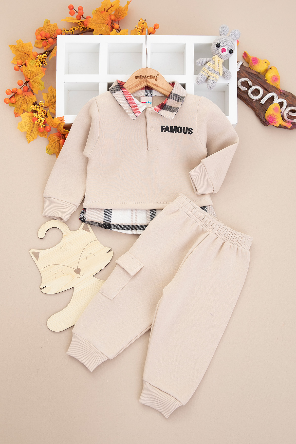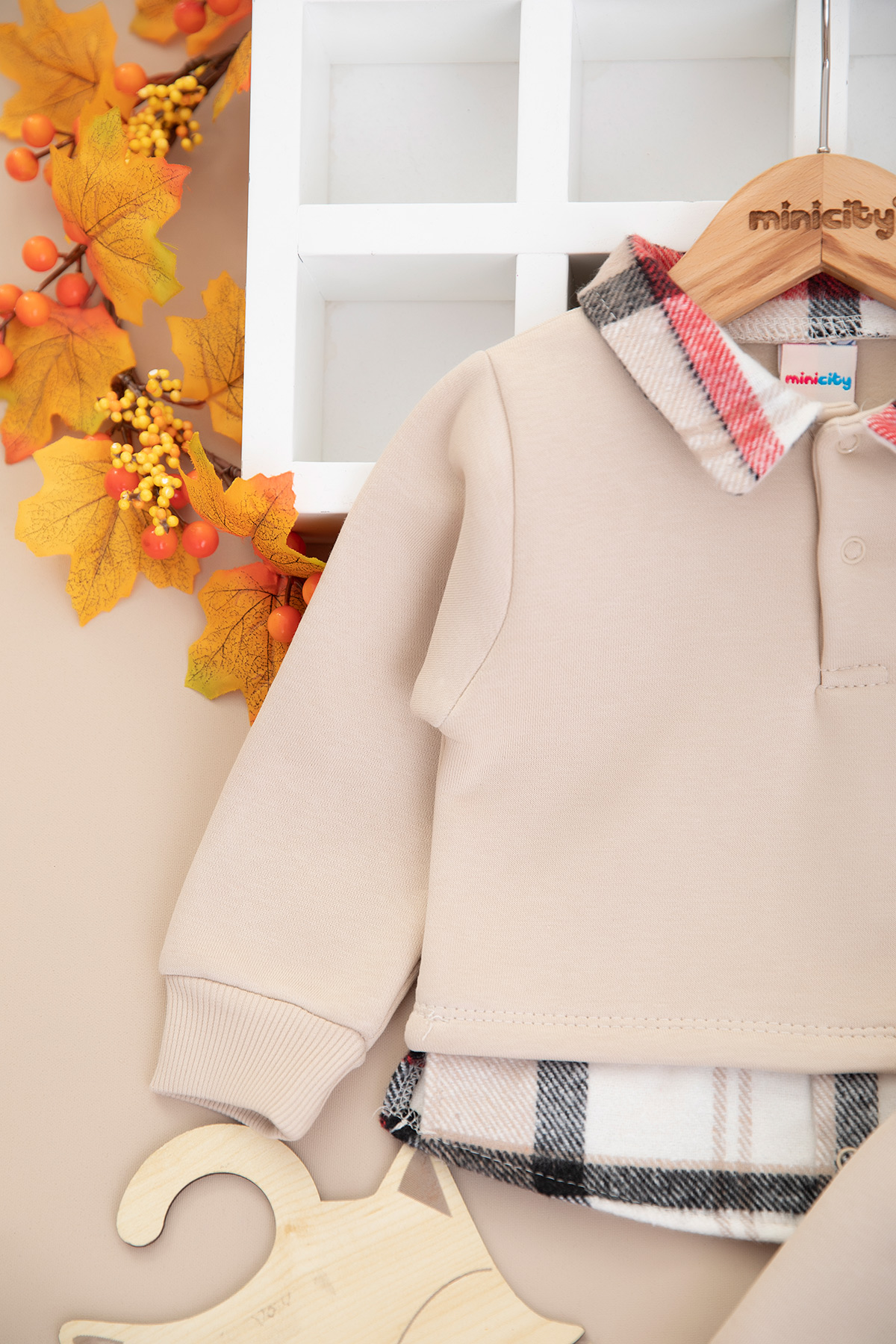 Erkek Bebek Ekose Yakalı Üçip Takım - 25851 (9-24 Ay)
