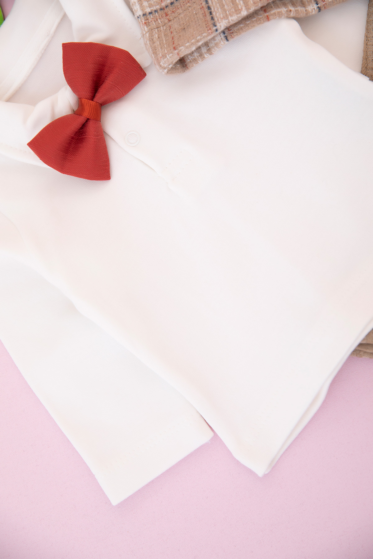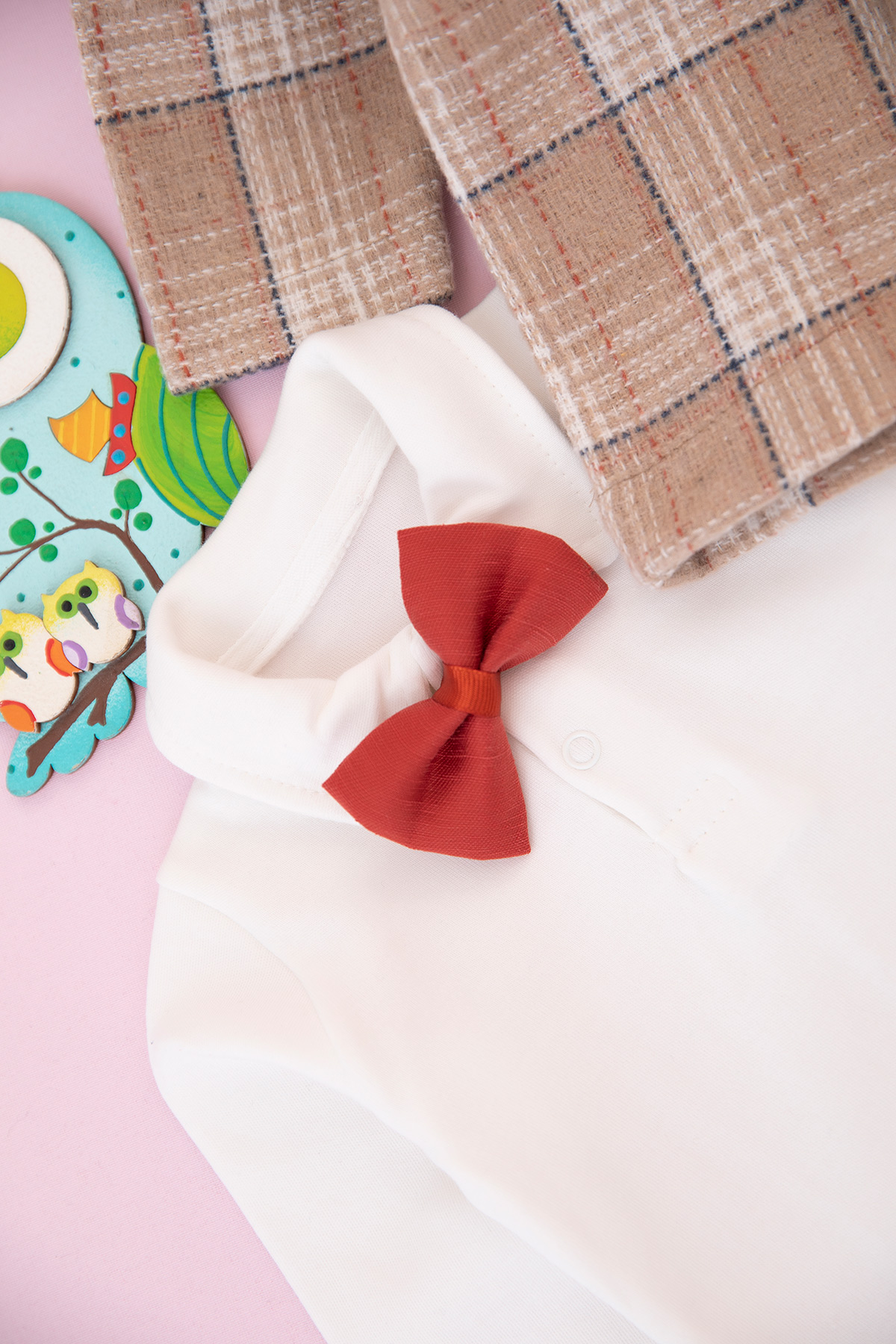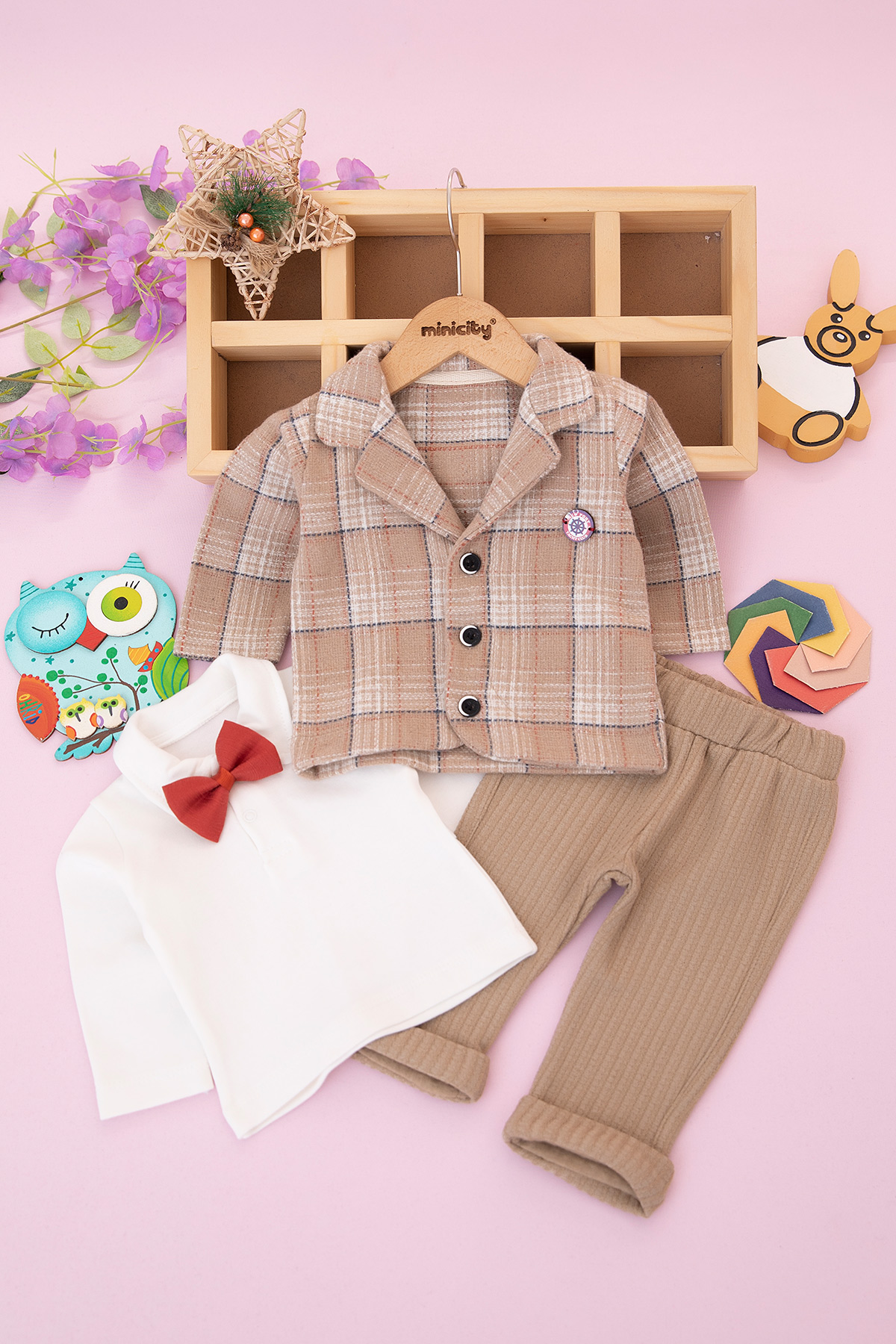 Erkek Bebek Ekoseli Papyonlu 3`Lü Takım - 7120 (3-12 Ay)
