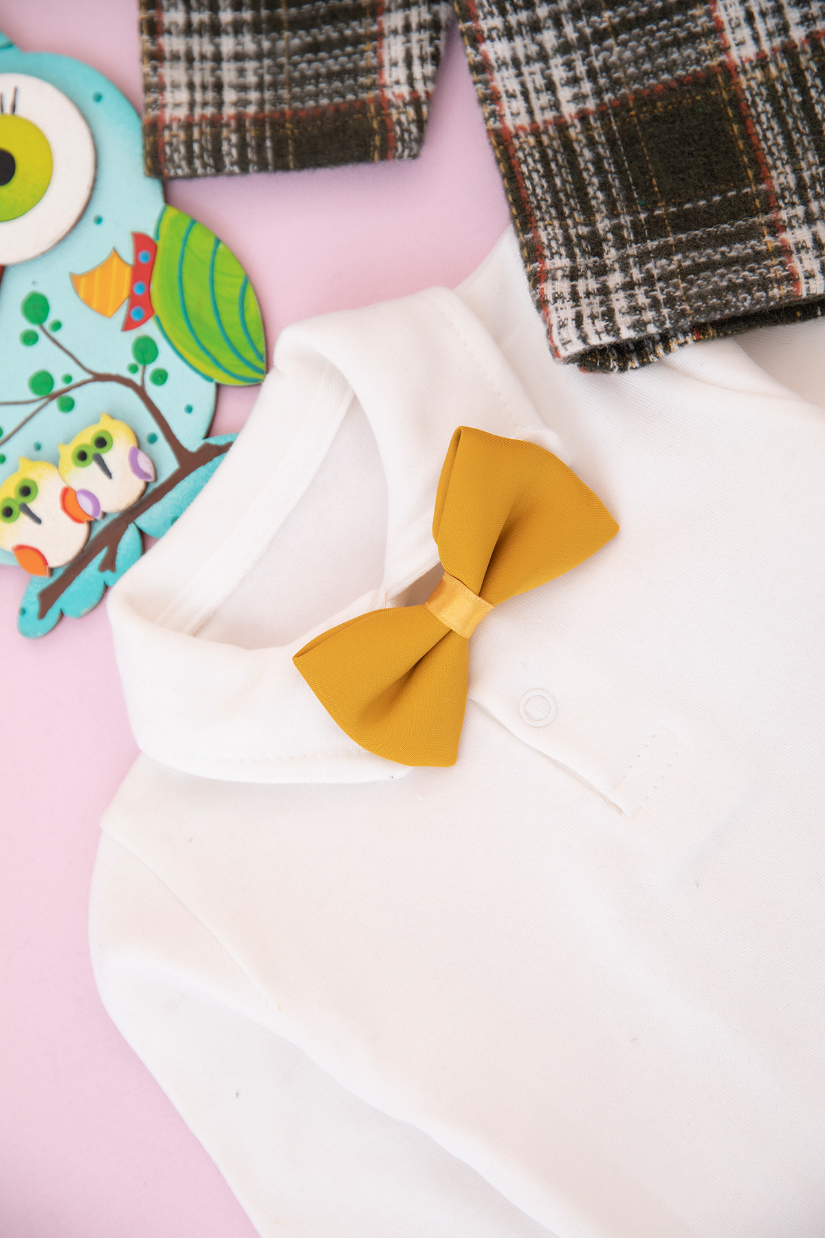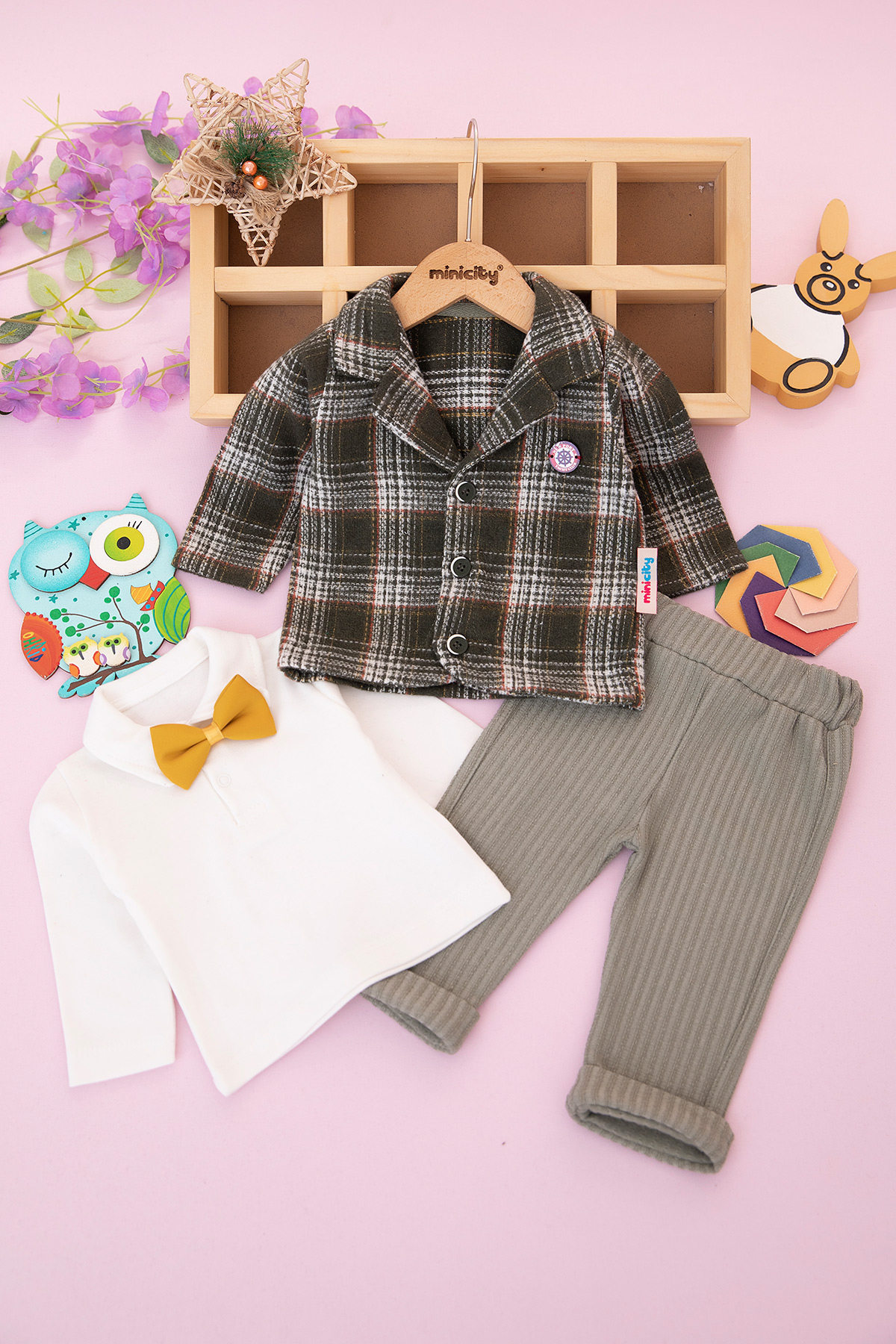 Erkek Bebek Ekoseli Papyonlu 3`Lü Takım - 7120 (3-12 Ay)