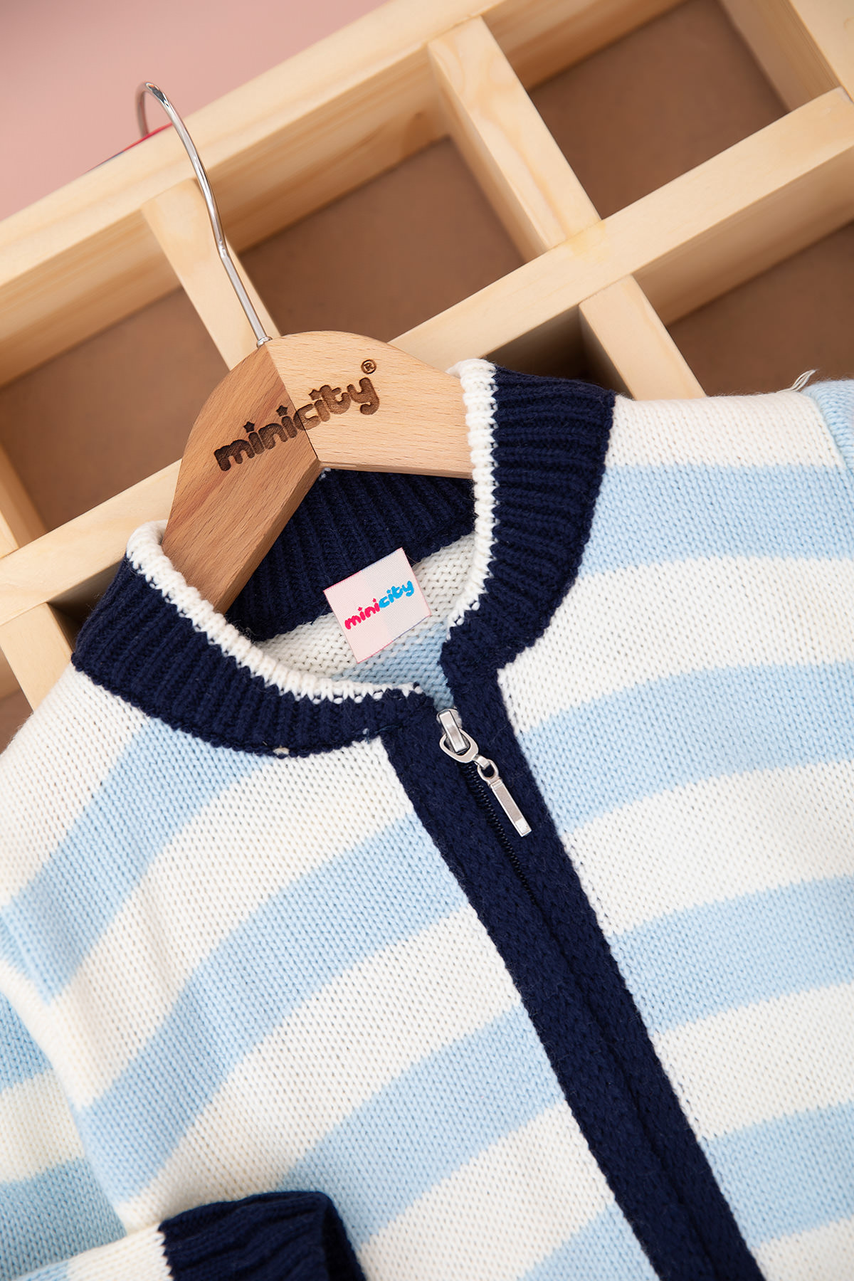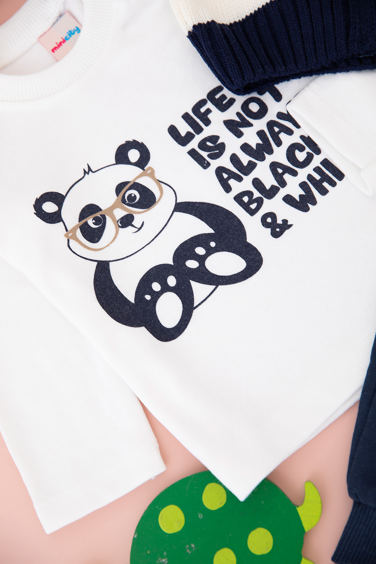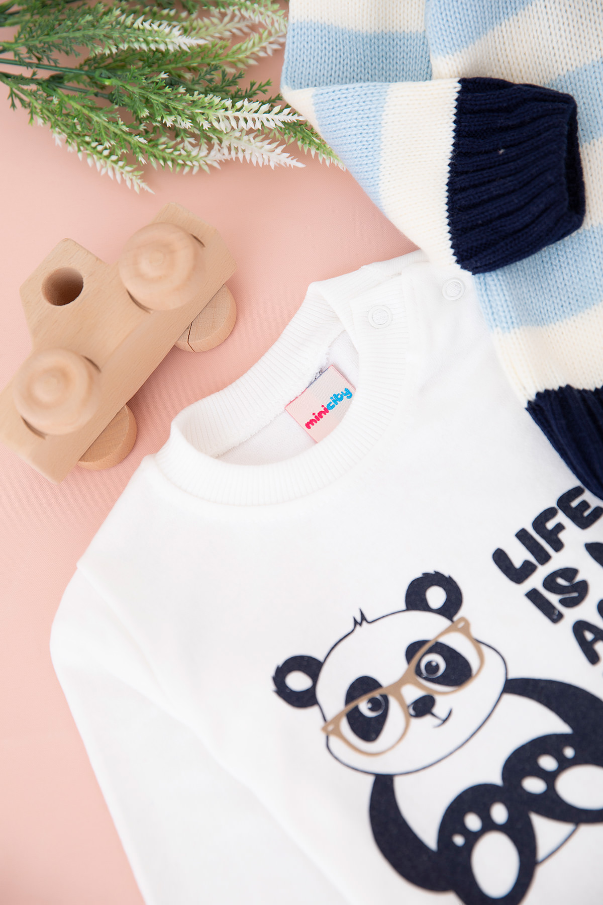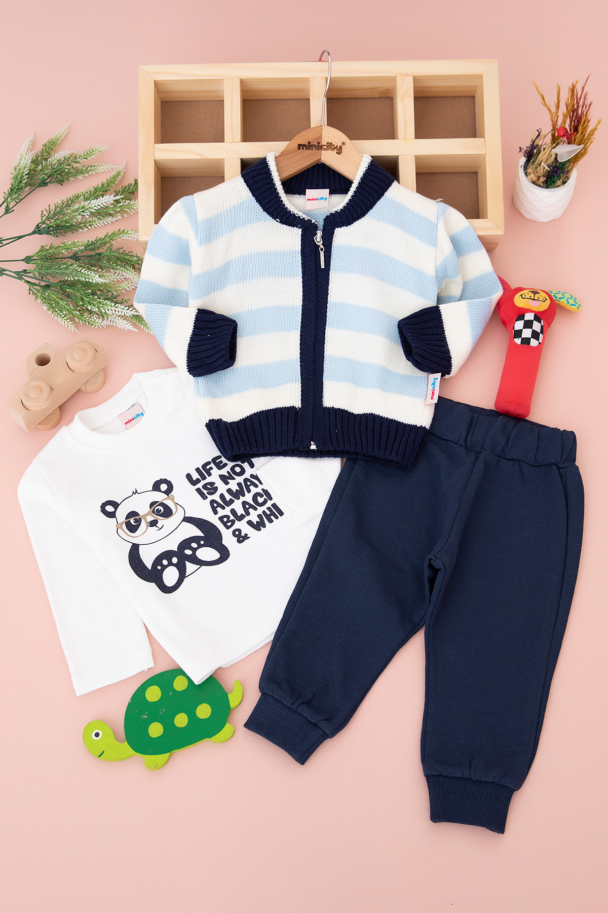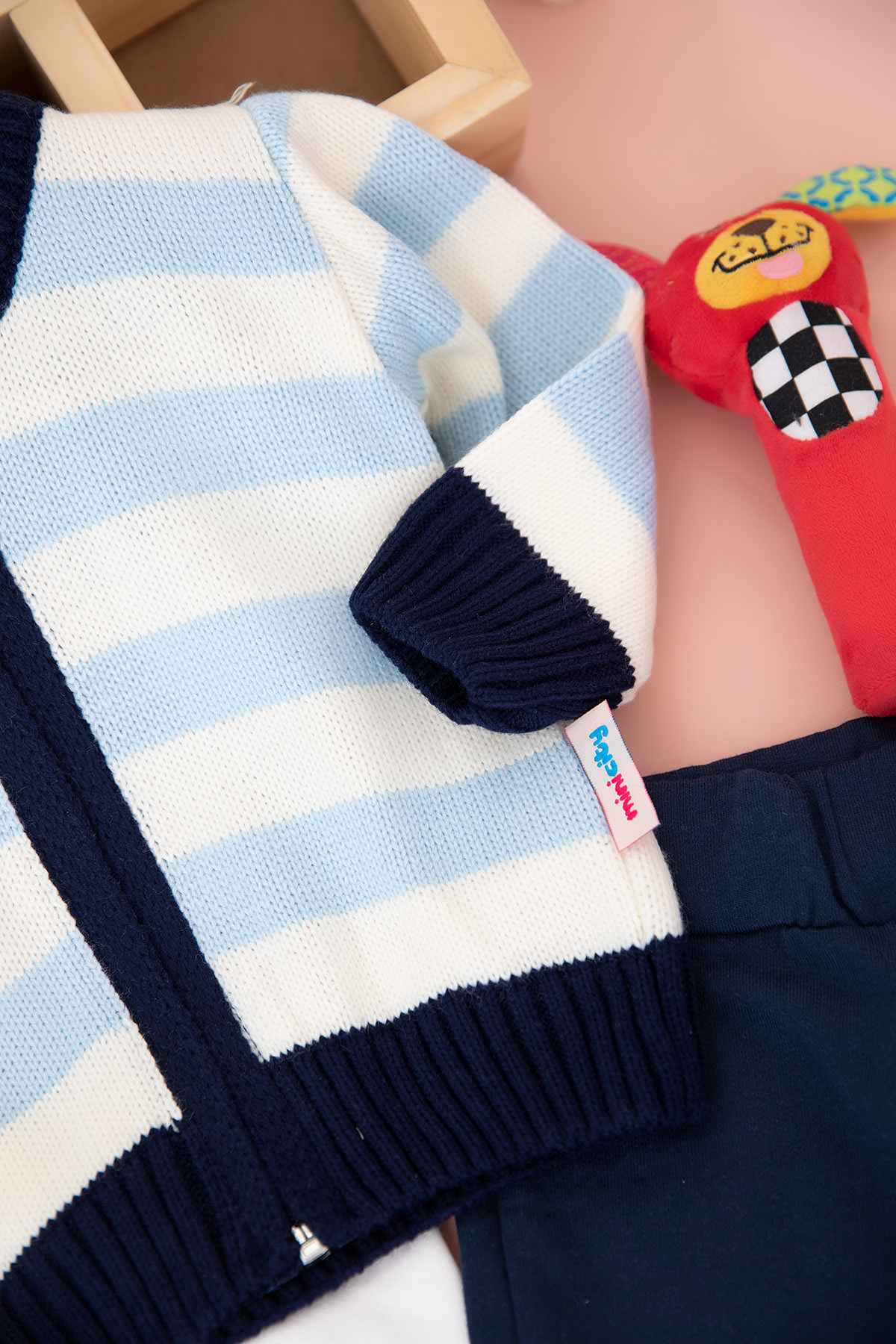 Erkek Bebek Ekru Şeritli Triko Üçlü Takım - 13781 (6-24 Ay)