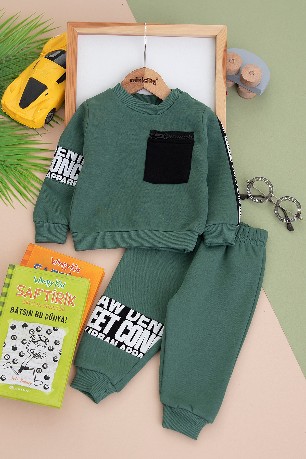 Erkek Bebek Fermuar Cepli Üçip Takım - 23718 (9-24 Ay)