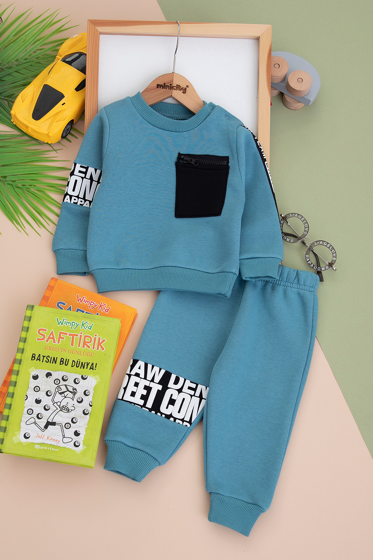 Erkek Bebek Fermuar Cepli Üçip Takım - 23718 (9-24 Ay)