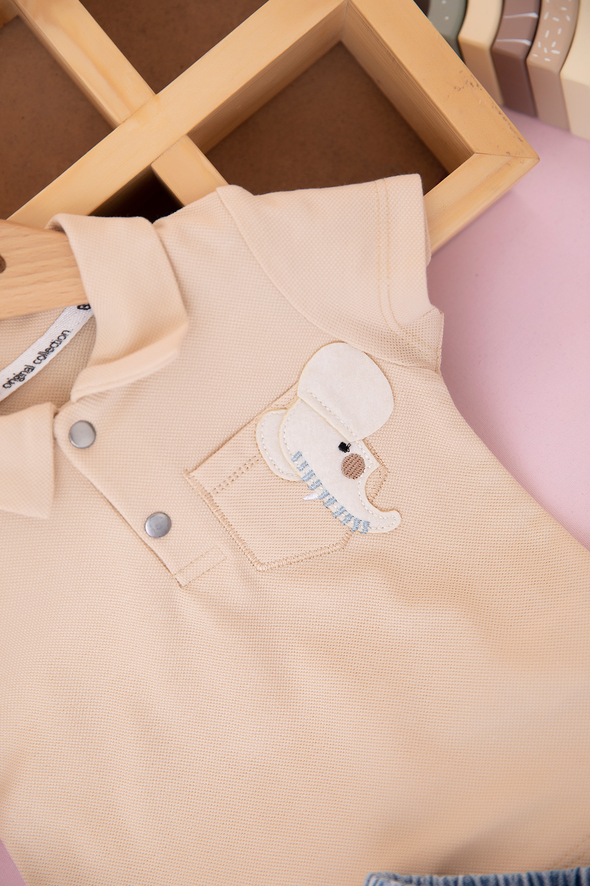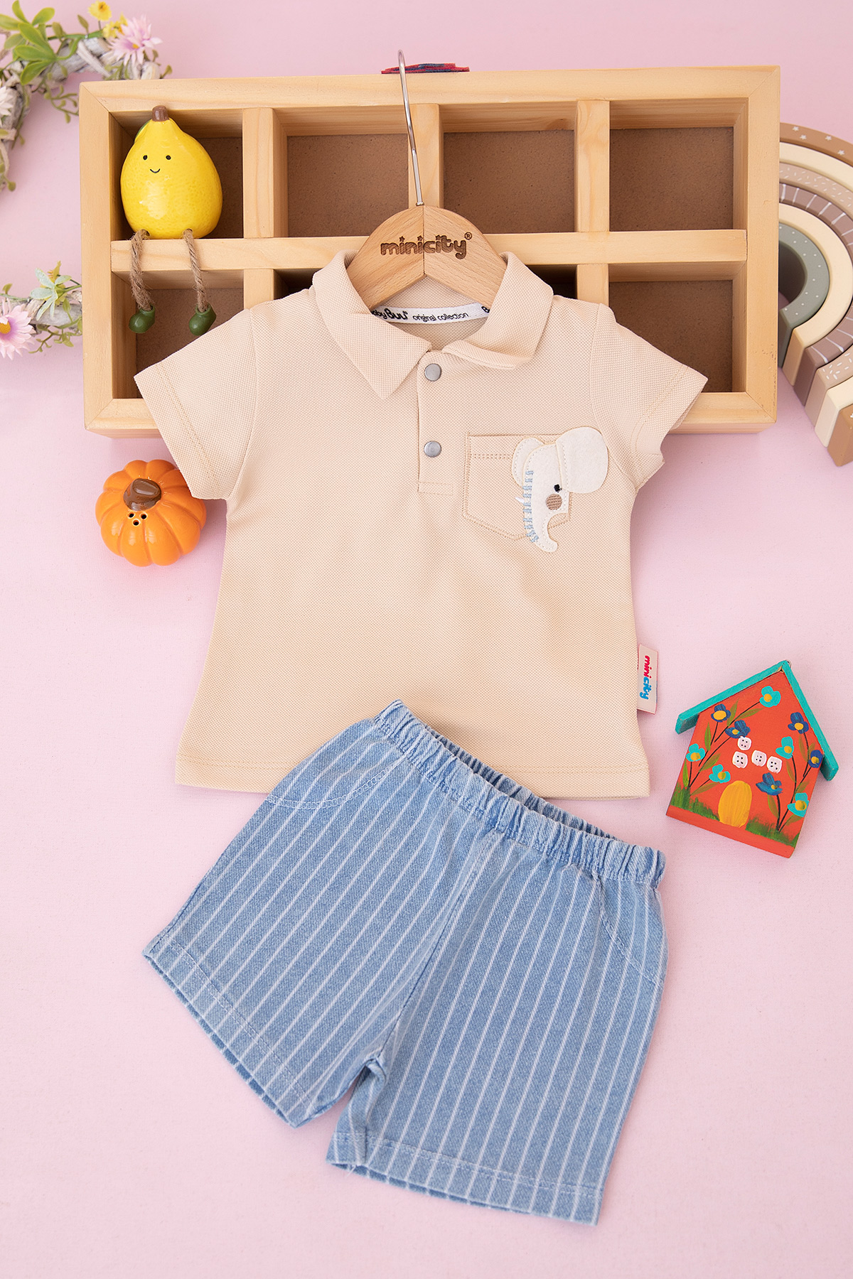 Erkek Bebek Fil Cepli Lacoste Şortlu Takım - 0361 (9-24 Ay)
