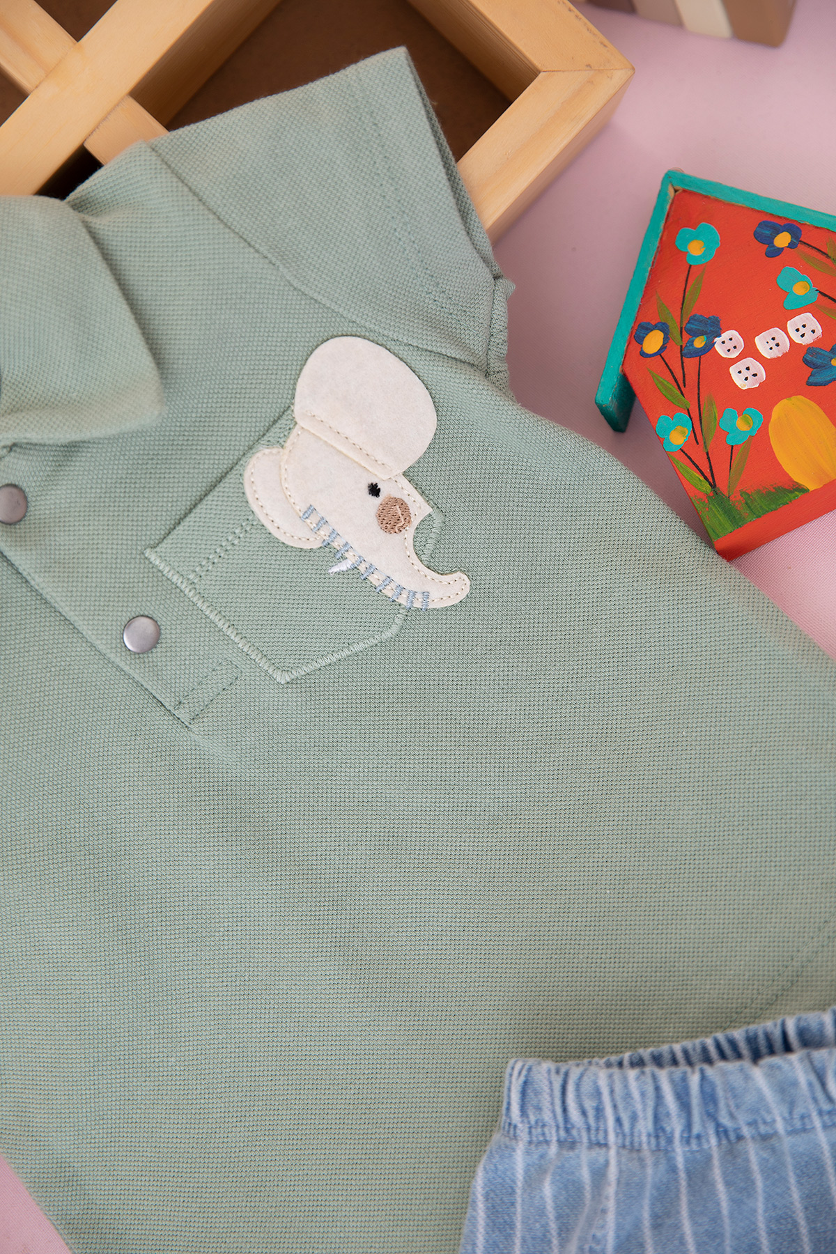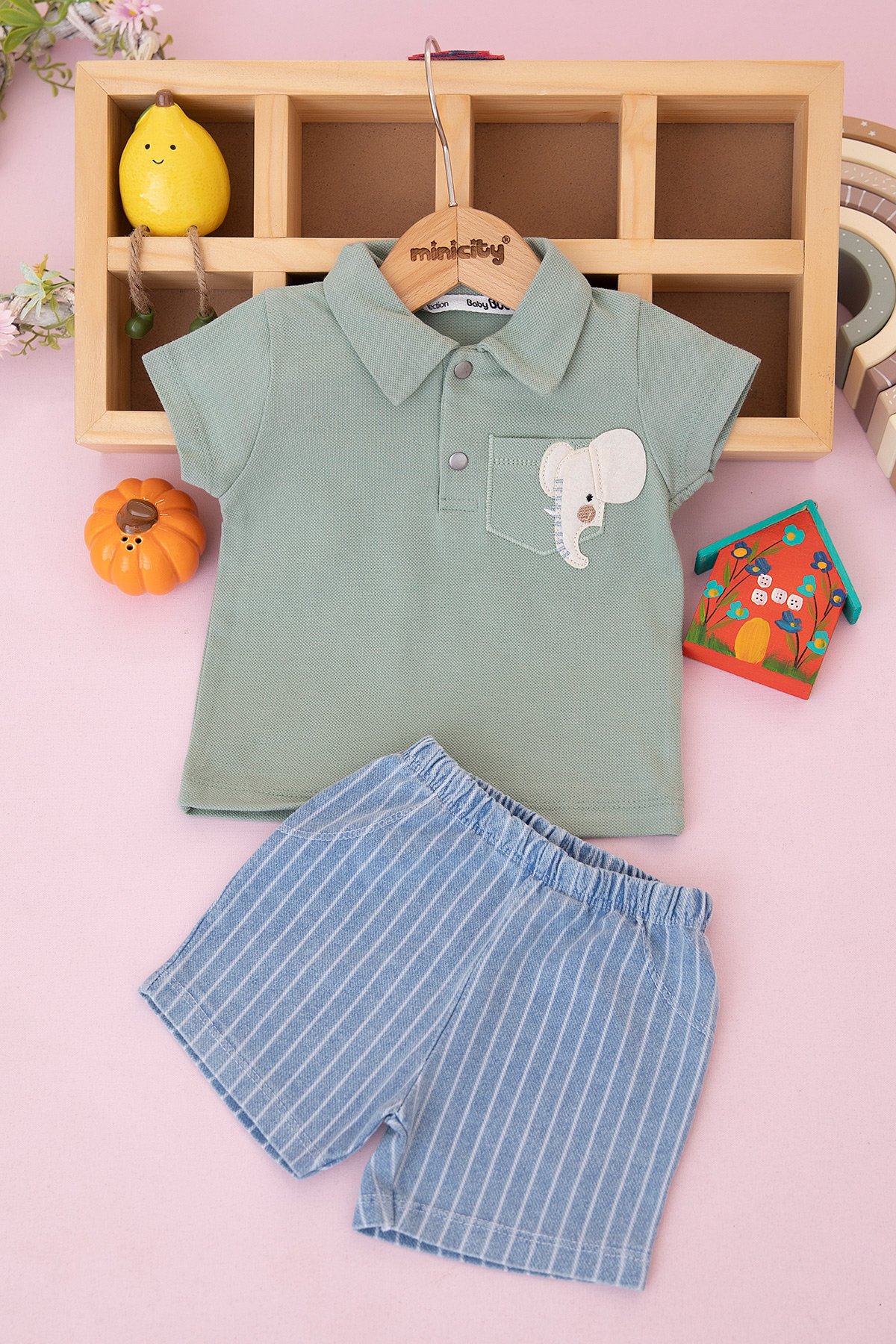 Erkek Bebek Fil Cepli Lacoste Şortlu Takım - 0361 (9-24 Ay)