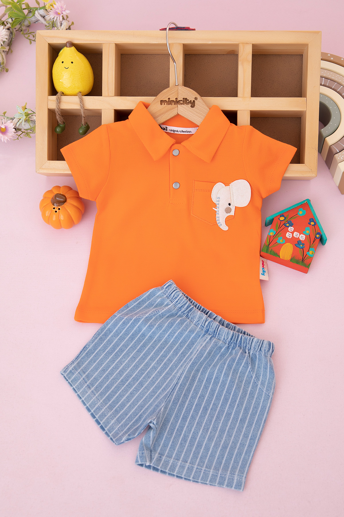 Erkek Bebek Fil Cepli Lacoste Şortlu Takım - 0361 (9-24 Ay)
