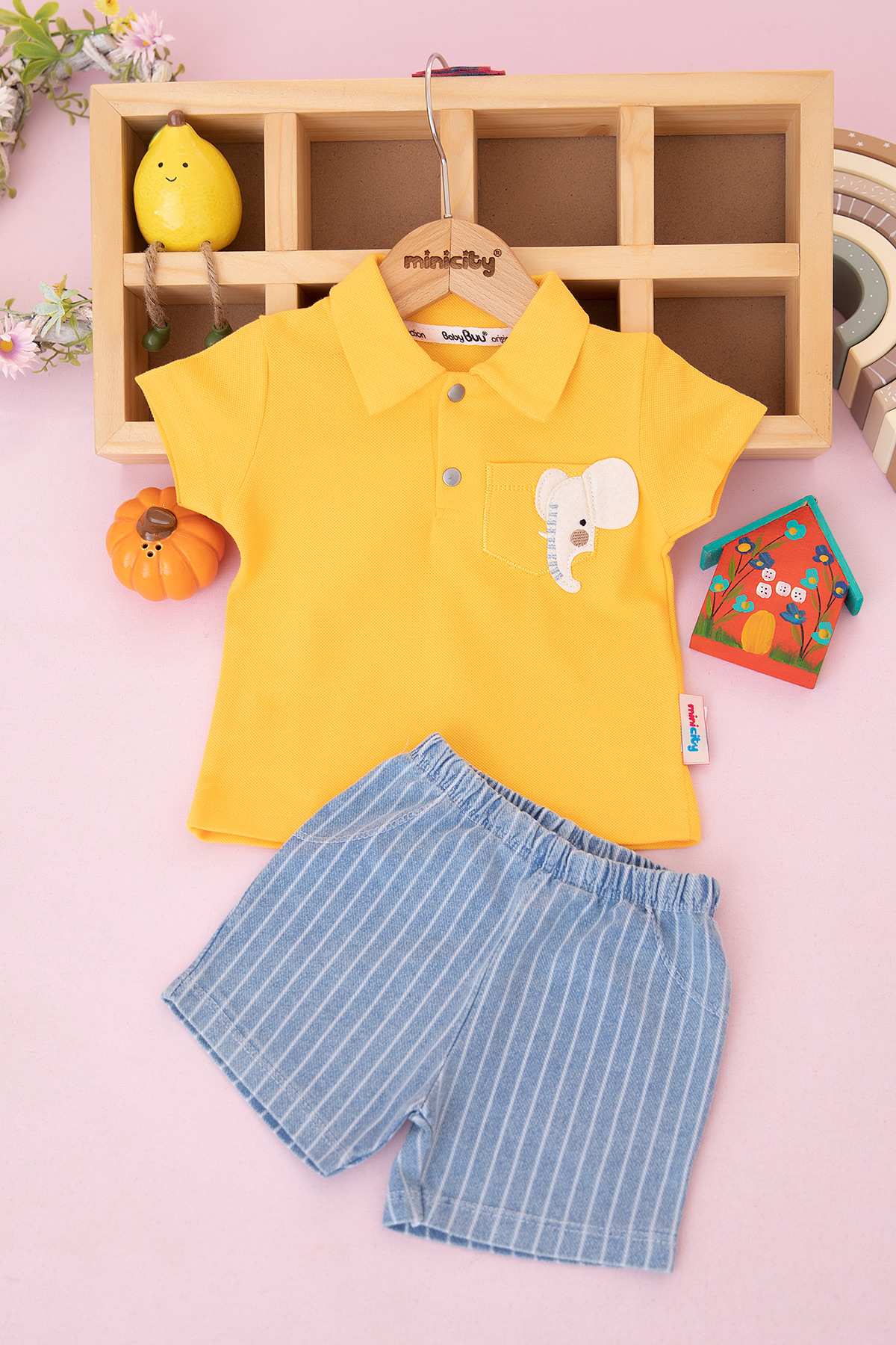Erkek Bebek Fil Cepli Lacoste Şortlu Takım - 0361 (9-24 Ay)