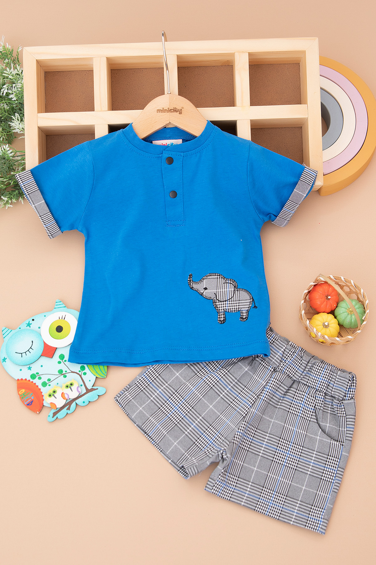 Erkek Bebek Fil Nakışlı Şortlu Takım - 23120 (9-24 Ay)