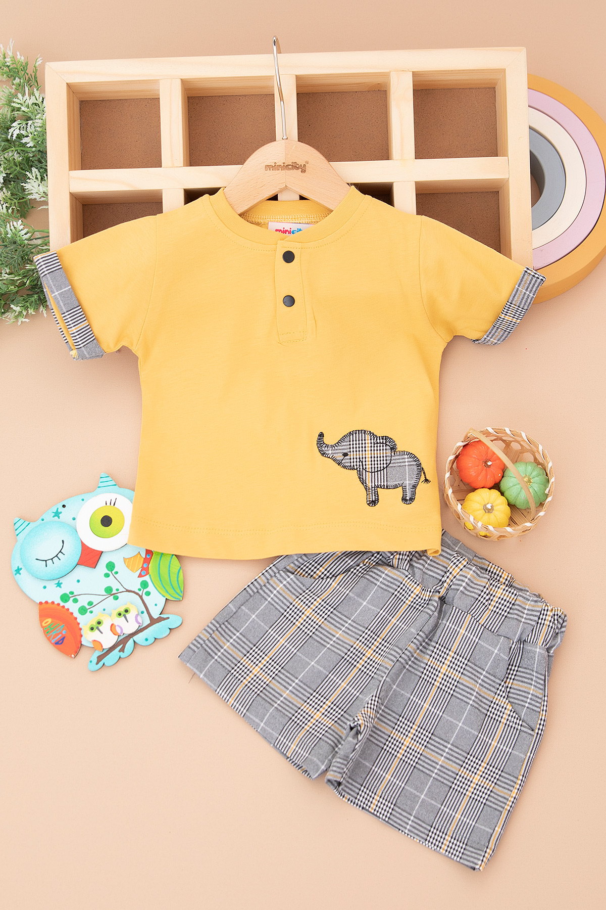 Erkek Bebek Fil Nakışlı Şortlu Takım - 23120 (9-24 Ay)