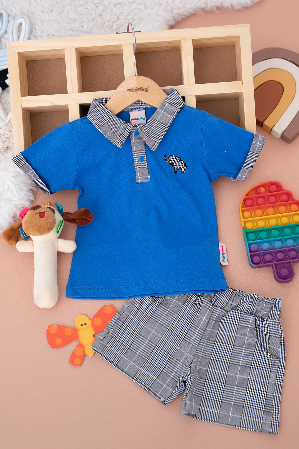 Erkek Bebek Fil Nakışlı Şortlu Takım - 23277 (9-24 Ay)