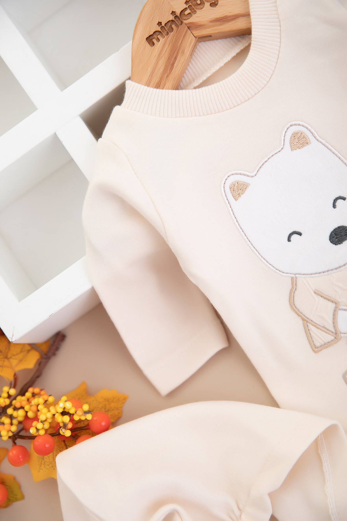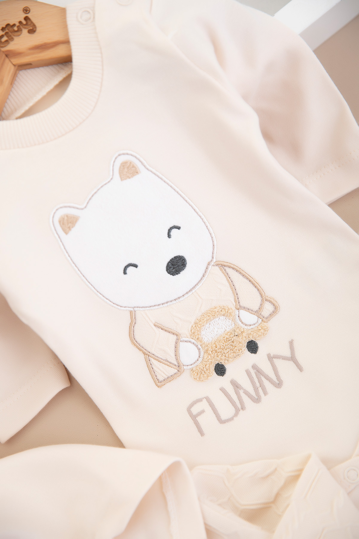 Erkek Bebek Funny Nakışlı Kapşonlu Üçlü Takım - 2173 (3-9 Ay)