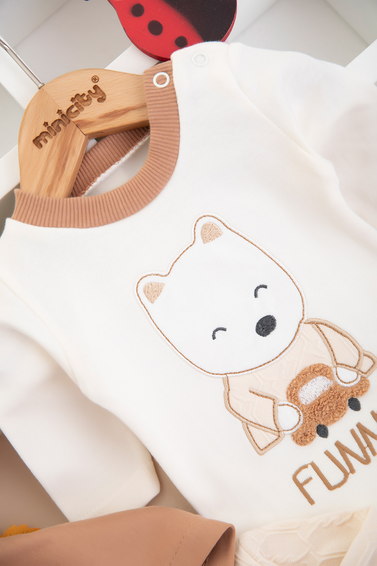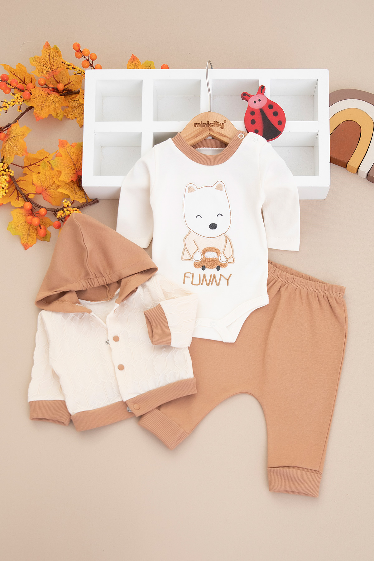 Erkek Bebek Funny Nakışlı Kapşonlu Üçlü Takım - 2173 (3-9 Ay)