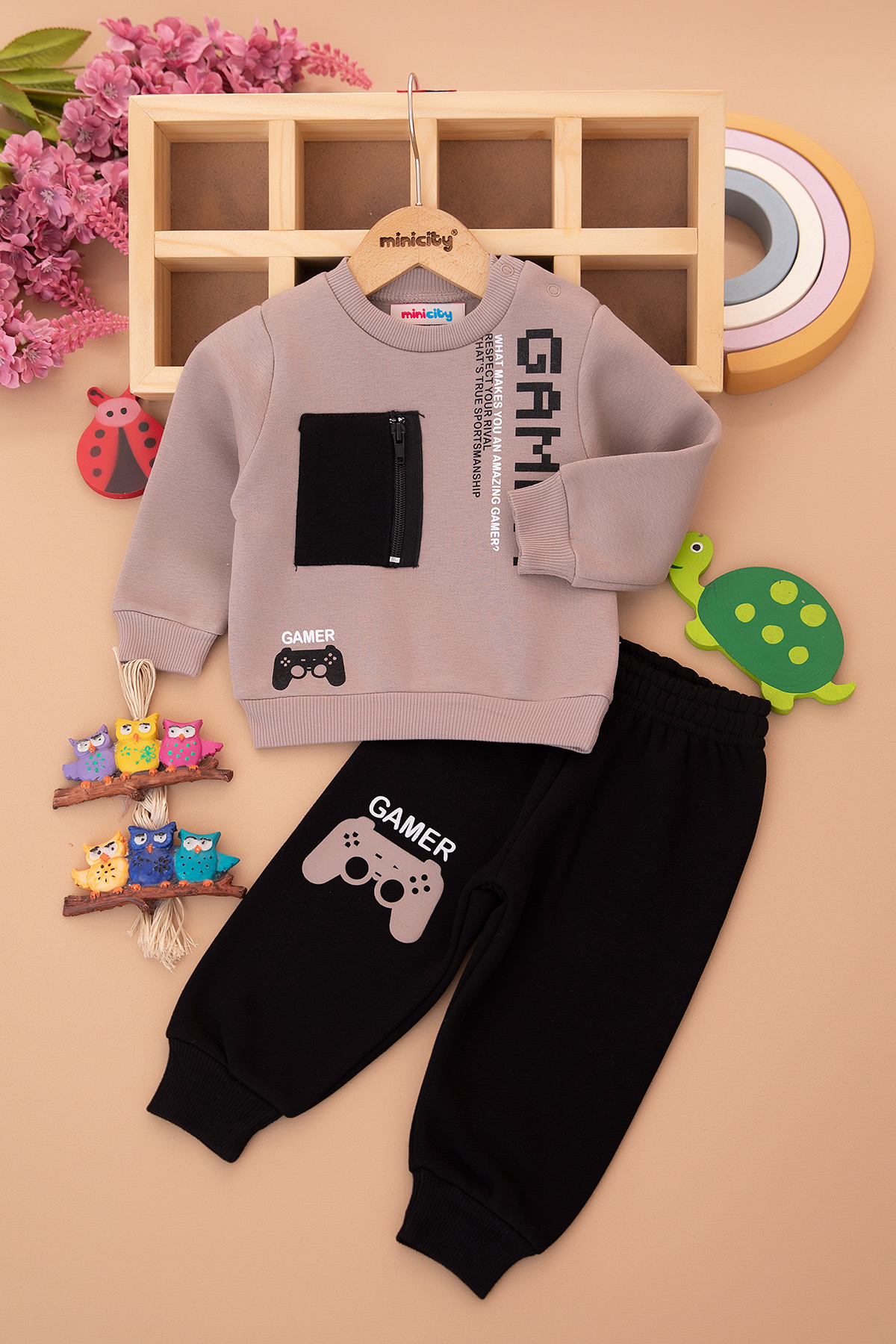 Erkek Bebek Gamer Baskılı Üç İp Takım - 24719 (9-24 Ay)