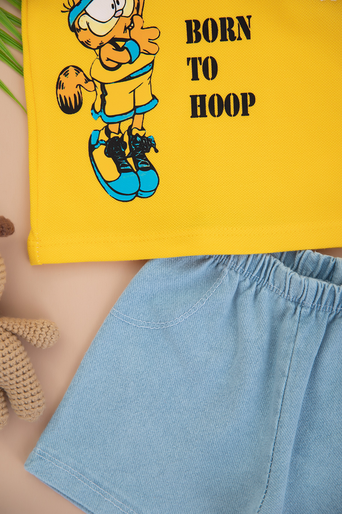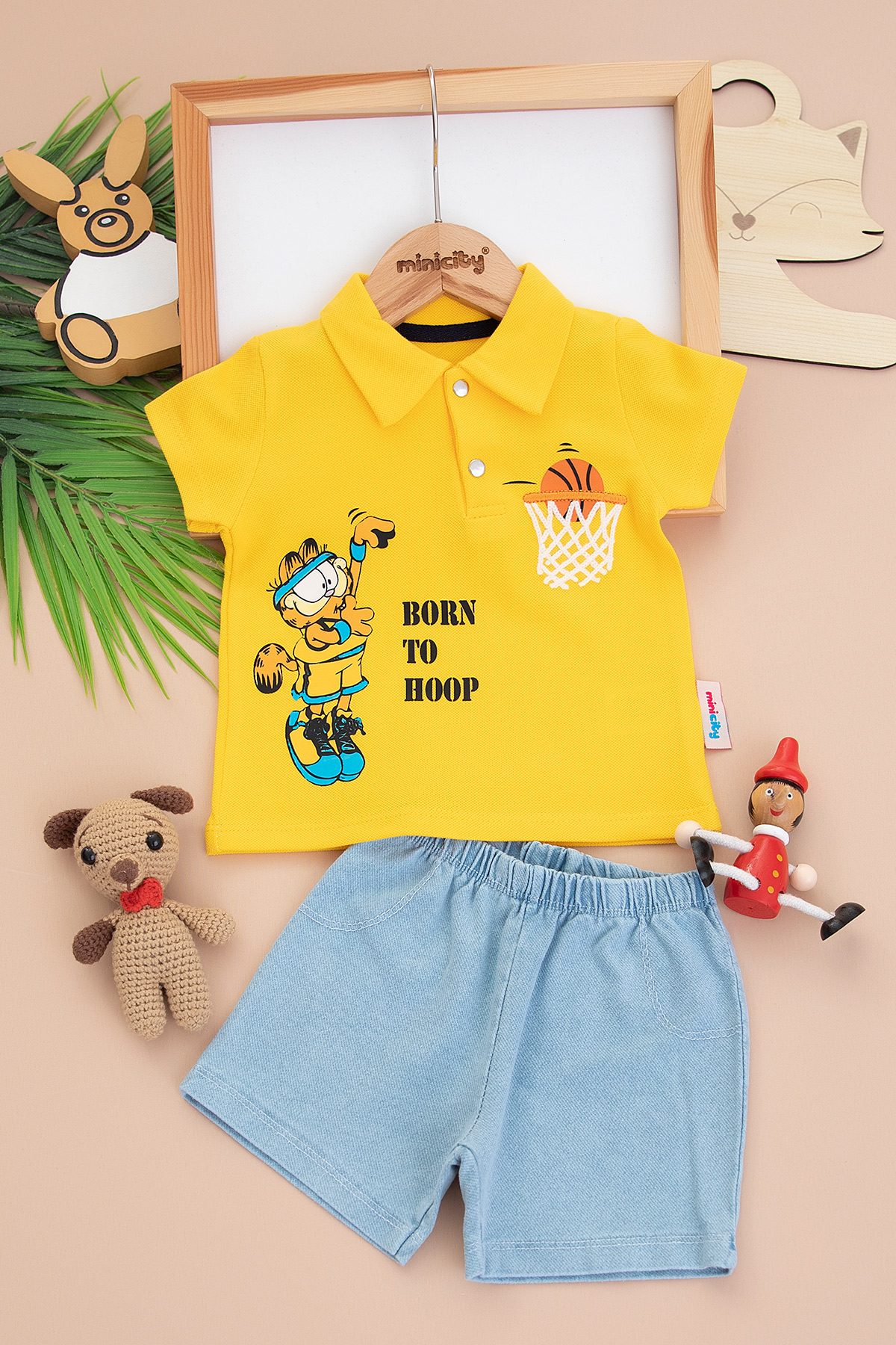 Erkek Bebek Garfield Kot Şortlu Takım - 0216 (6-18 Ay)