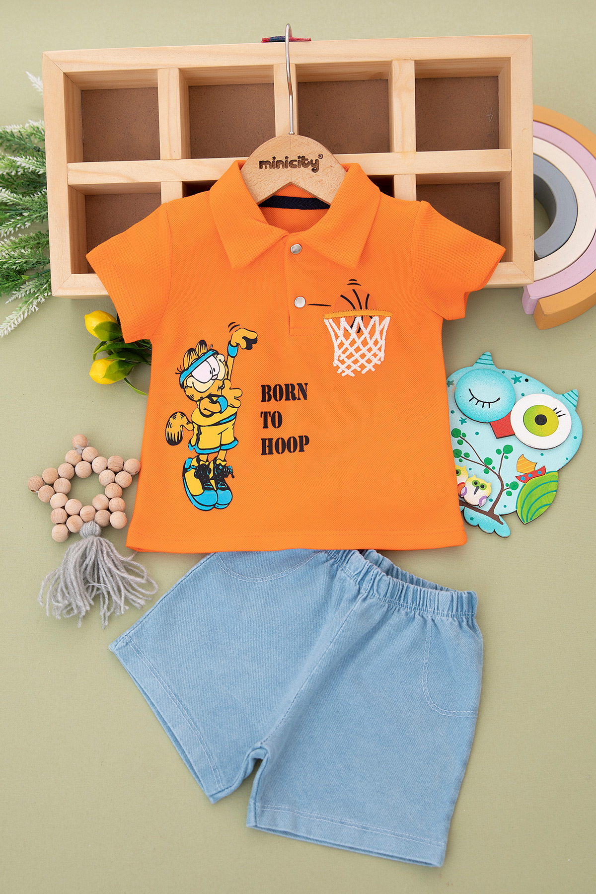 Erkek Bebek Garfield Kot Şortlu Takım - 0216 (6-18 Ay)