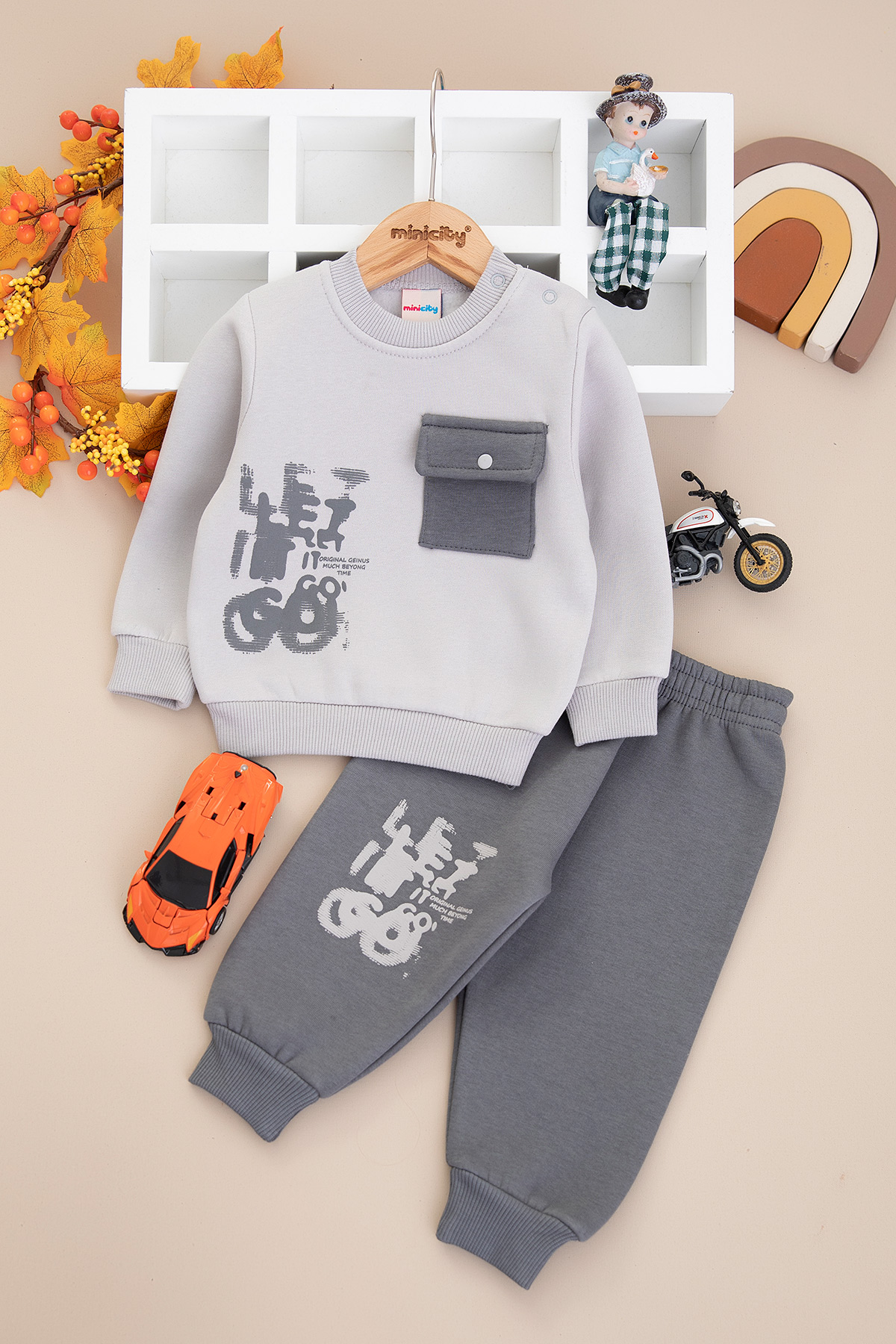 Erkek Bebek Go Baskılı Üçip Takım - 25819 (9-24 Ay)