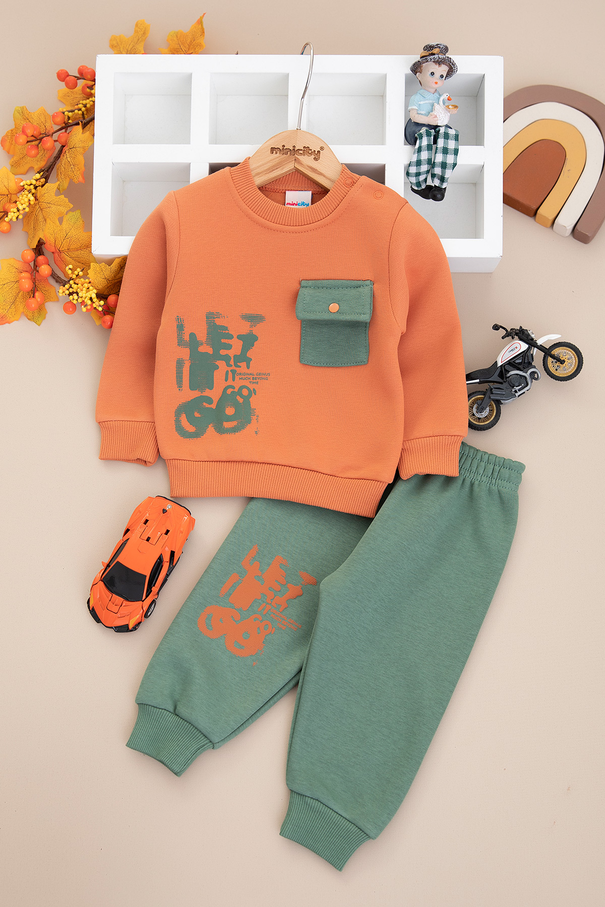 Erkek Bebek Go Baskılı Üçip Takım - 25819 (9-24 Ay)