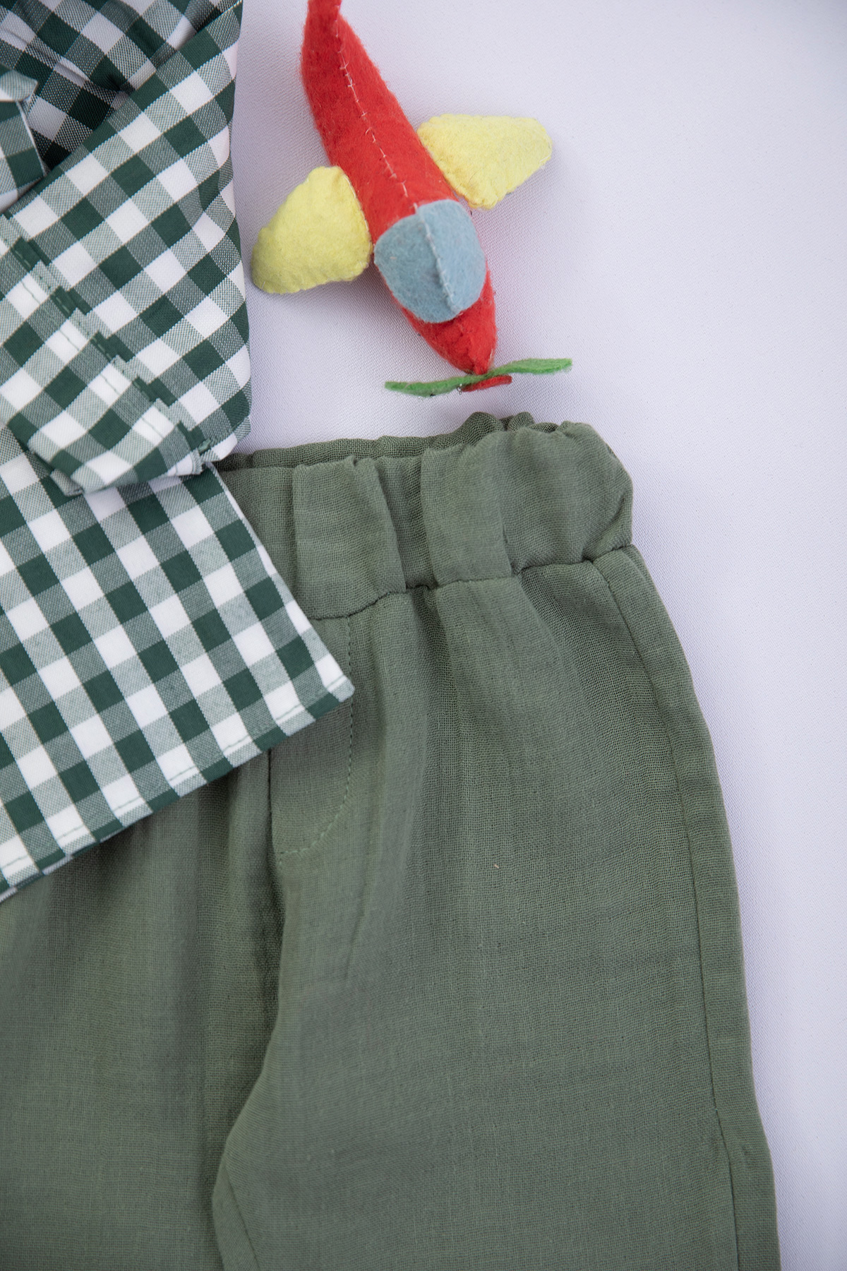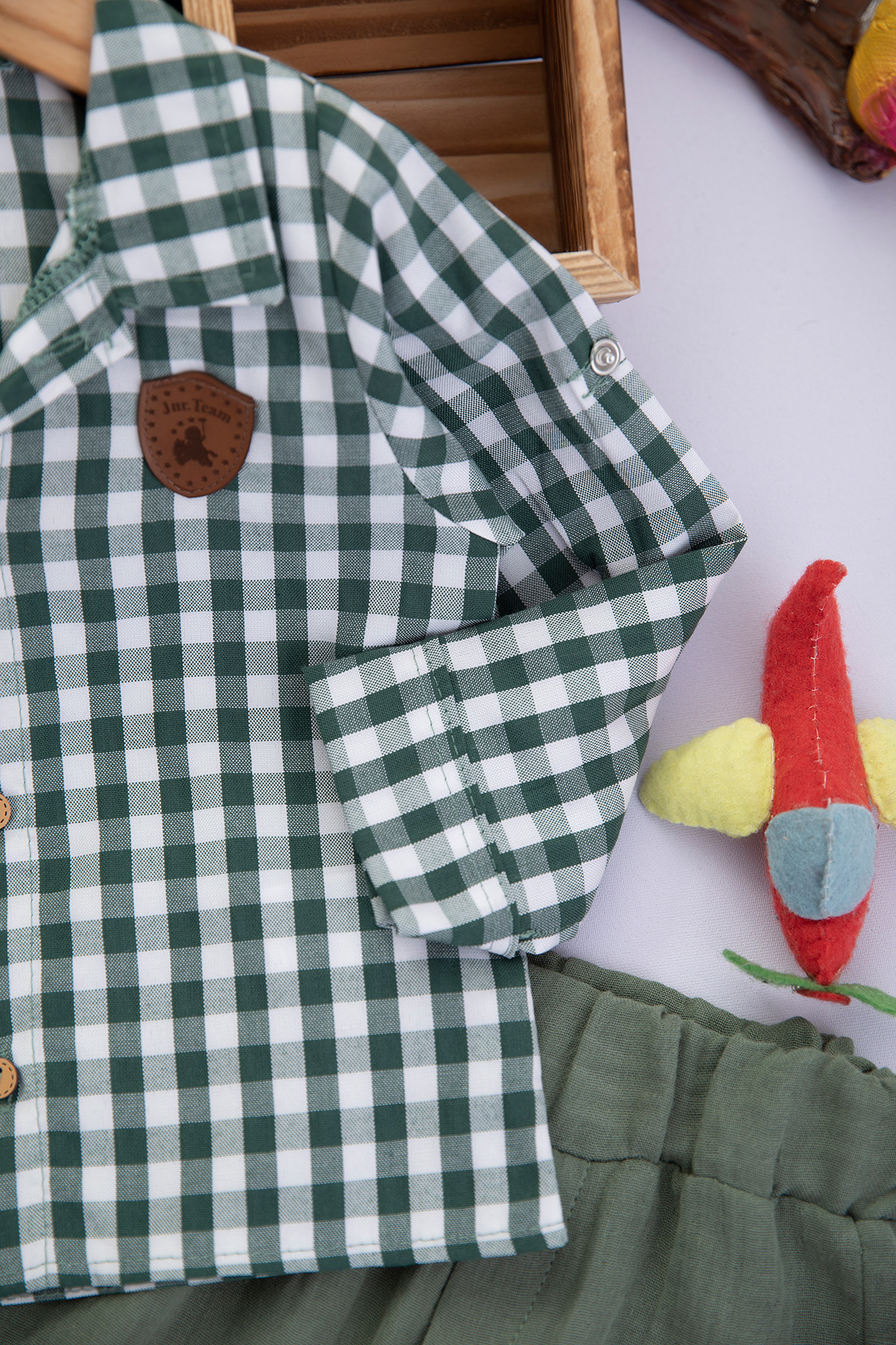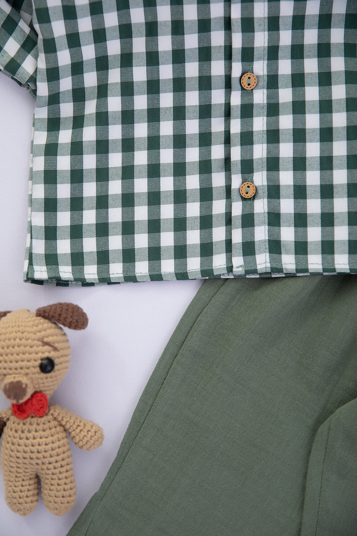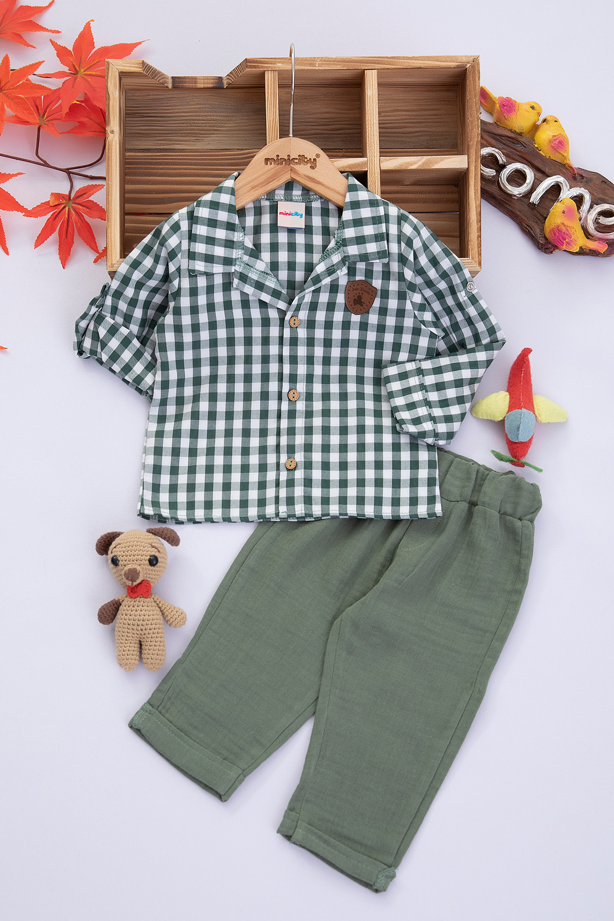 Erkek Bebek Gömlek Ekose Kumaş Takım - 25014 (9-24 Ay)