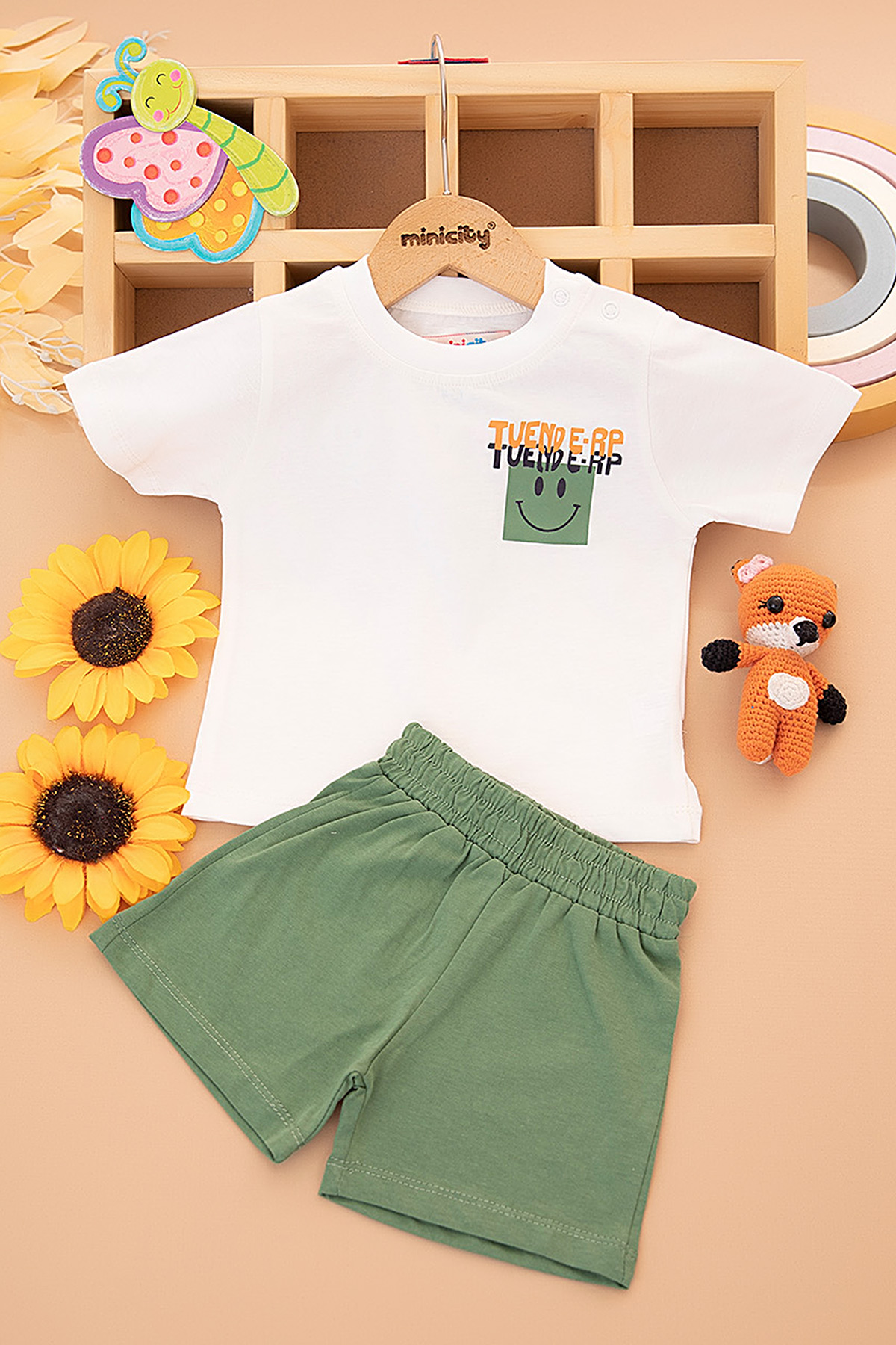 Erkek Bebek Gülen Yüz Şortlu Takım - 25199 (9-24 Ay)