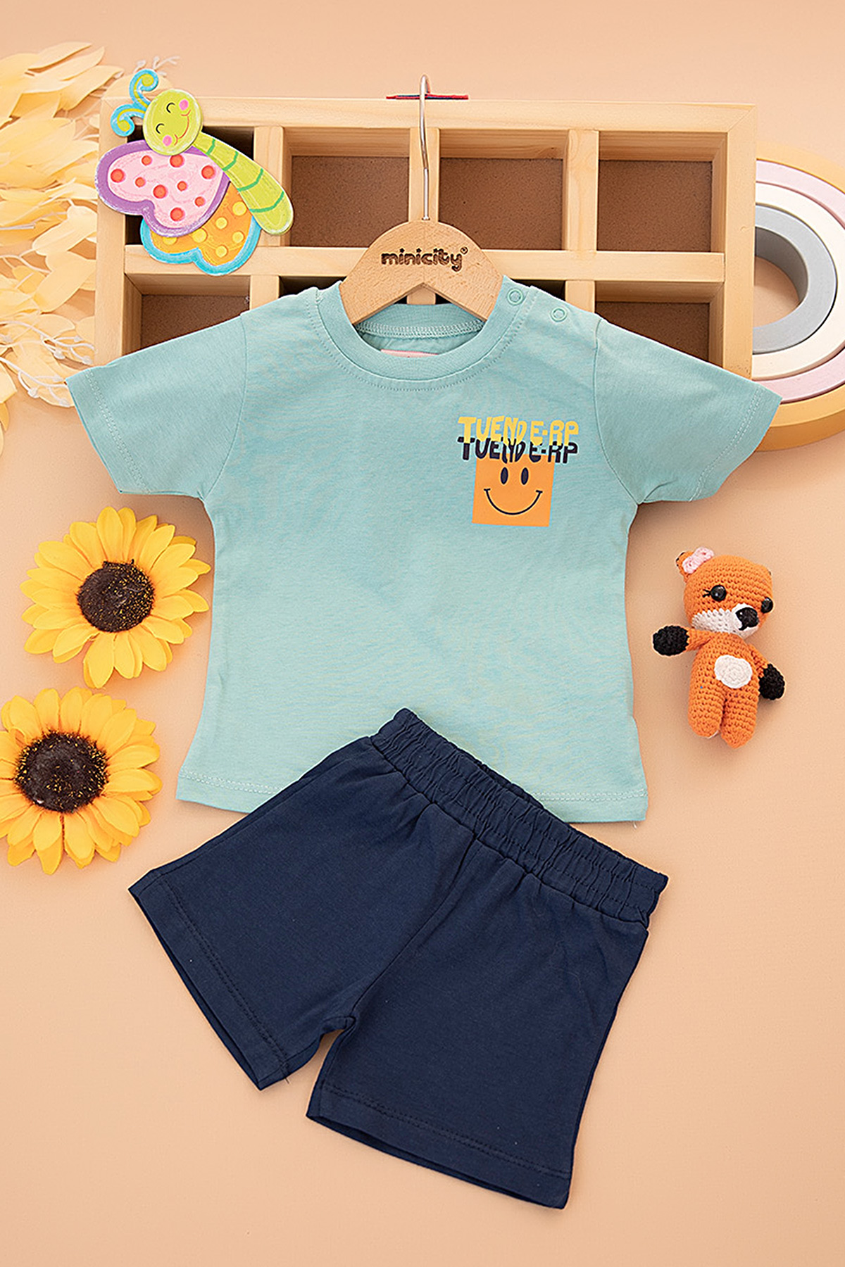 Erkek Bebek Gülen Yüz Şortlu Takım - 25199 (9-24 Ay)