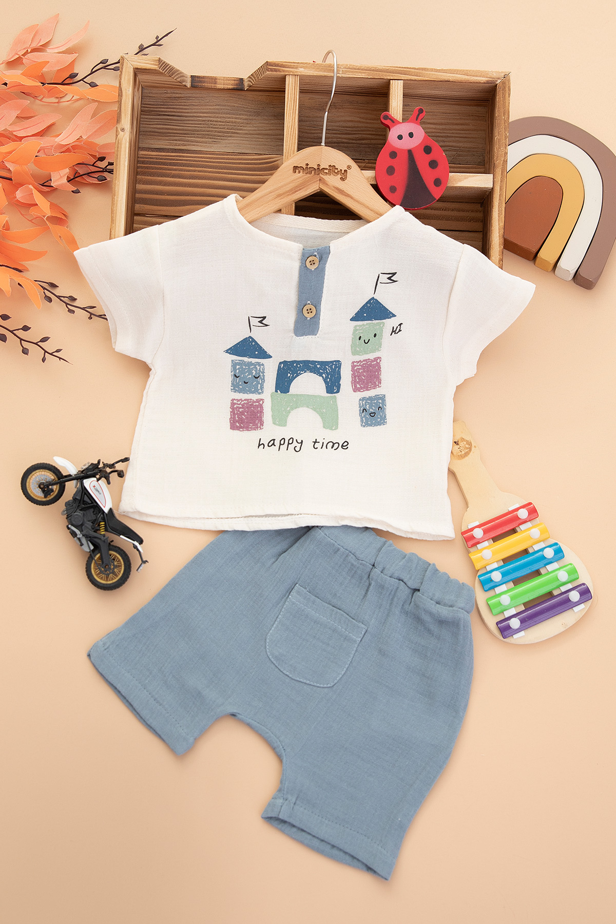 Erkek Bebek Happy Time Şortlu Takım - 2502 (9-18 Ay)