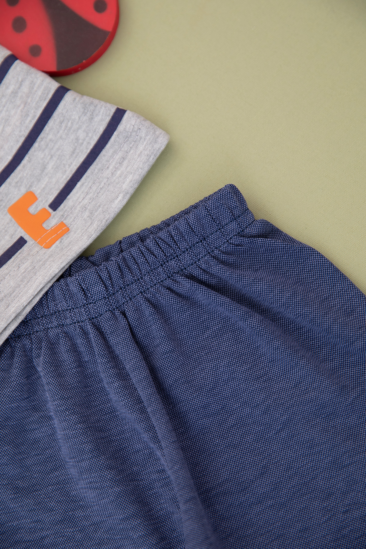 Erkek Bebek Harf Baskılı Oxfort Şortlu Takım - 24359 (9-24 Ay)