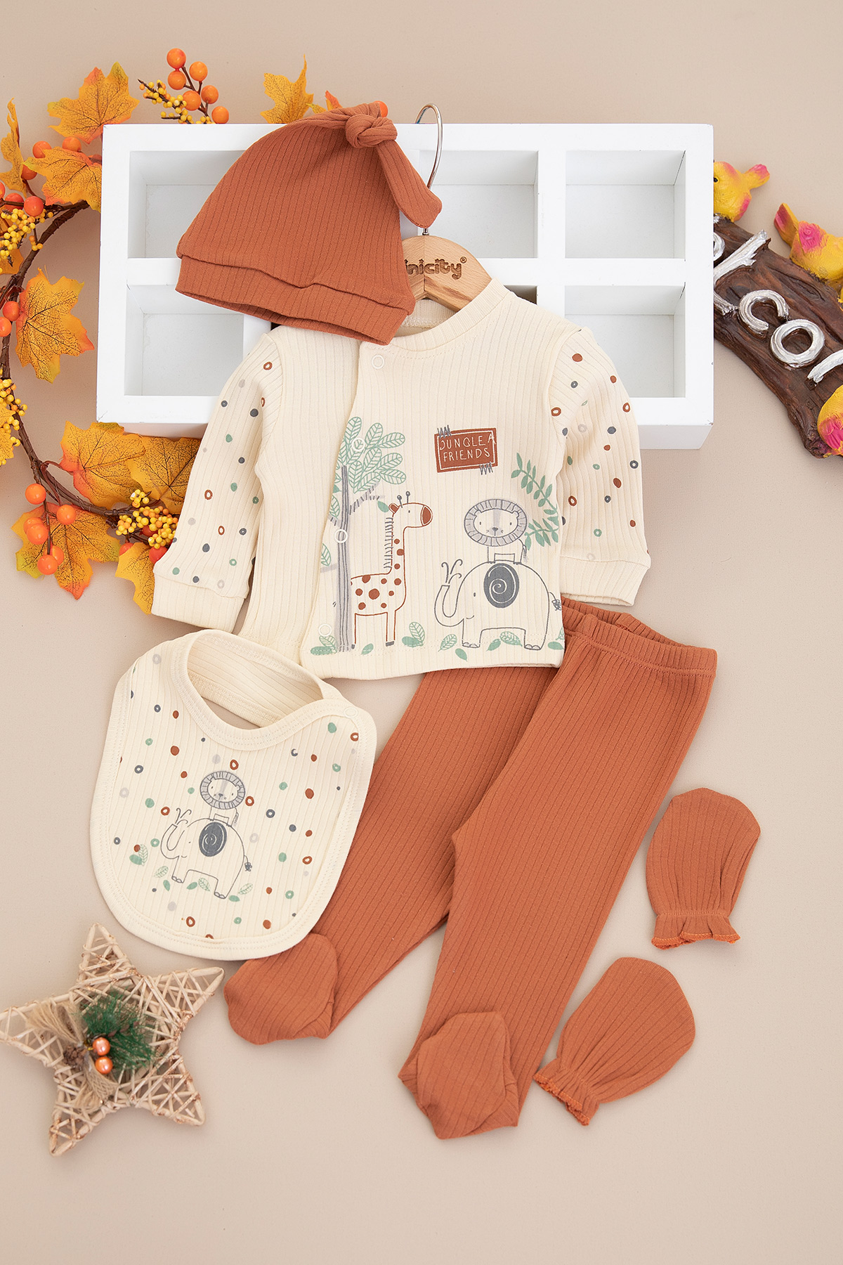 Erkek Bebek Hayvanlar Baskılı 5 Li Zıbın Seti - 0679 (0-3 Ay)