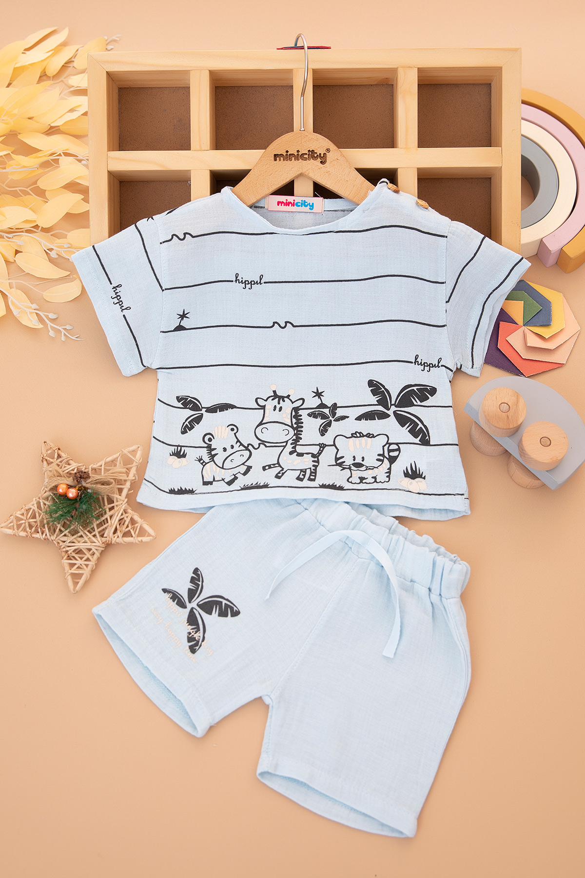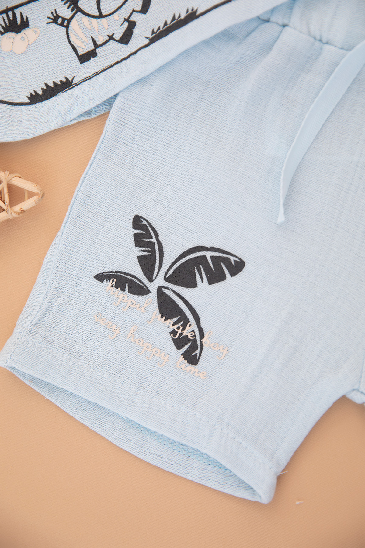 Erkek Bebek Hayvanlar Baskılı Şortlu Takım - 0522 (6-18 Ay)