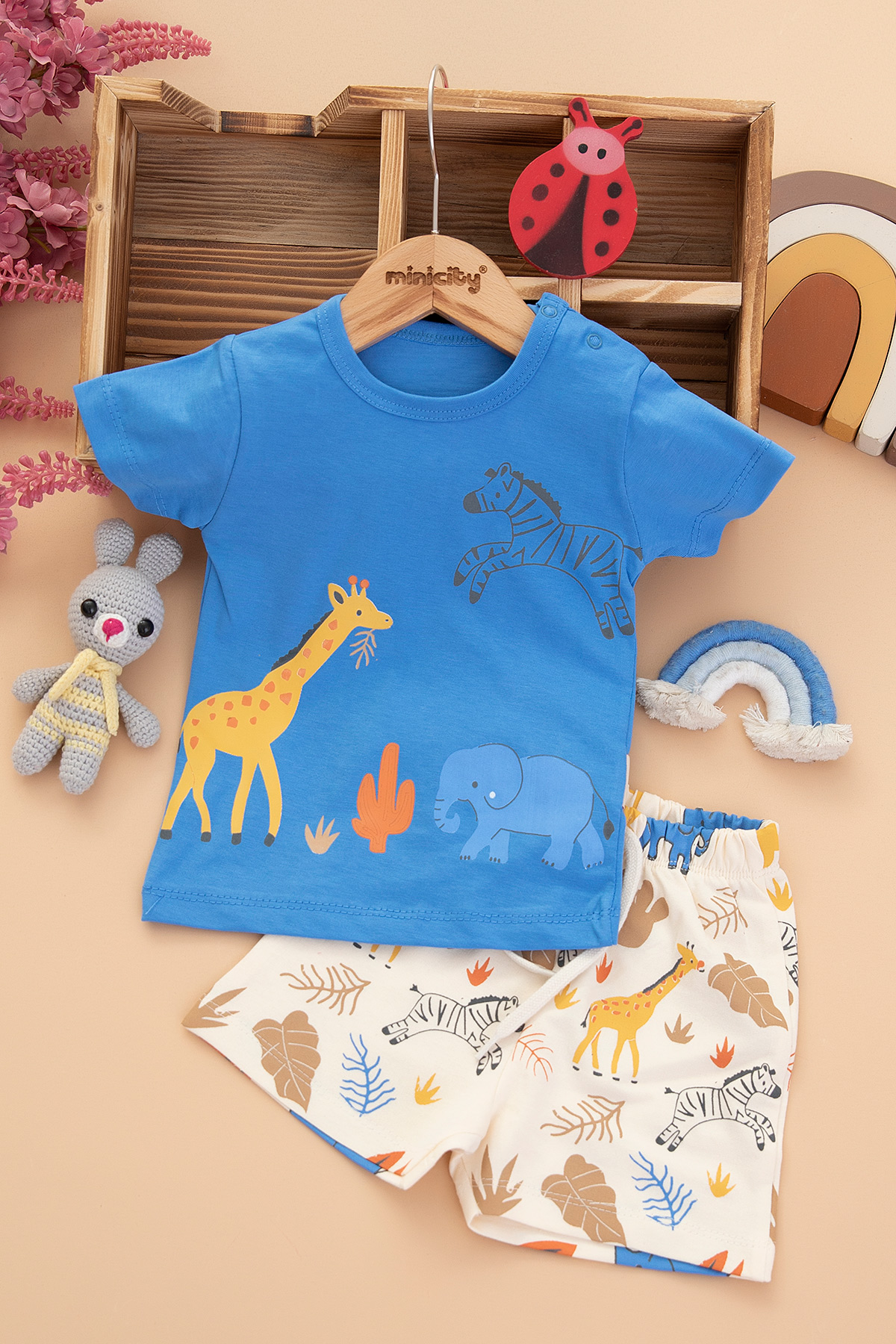 Erkek Bebek Hayvanlar Baskılı Şortlu Takım - 2511 (6-24 Ay)