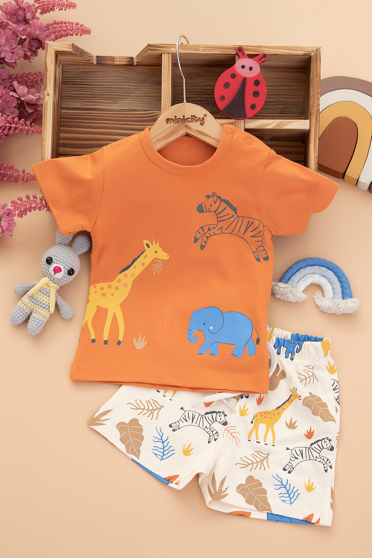Erkek Bebek Hayvanlar Baskılı Şortlu Takım - 2511 (6-24 Ay)